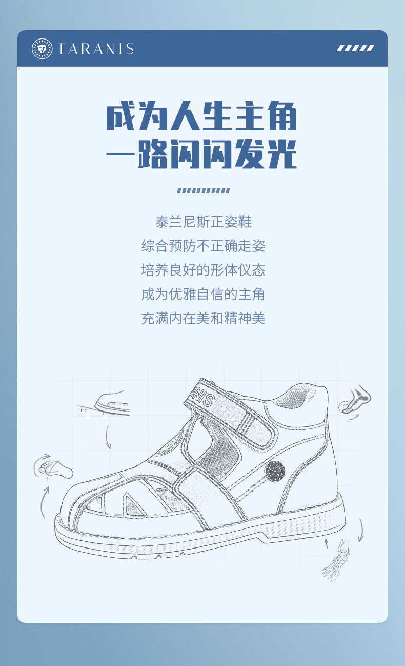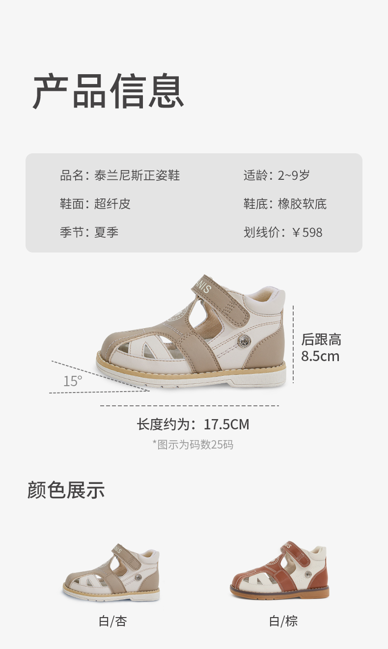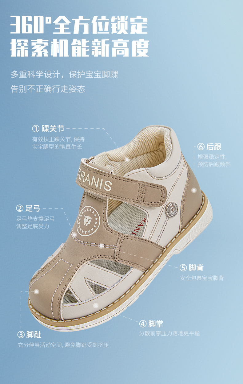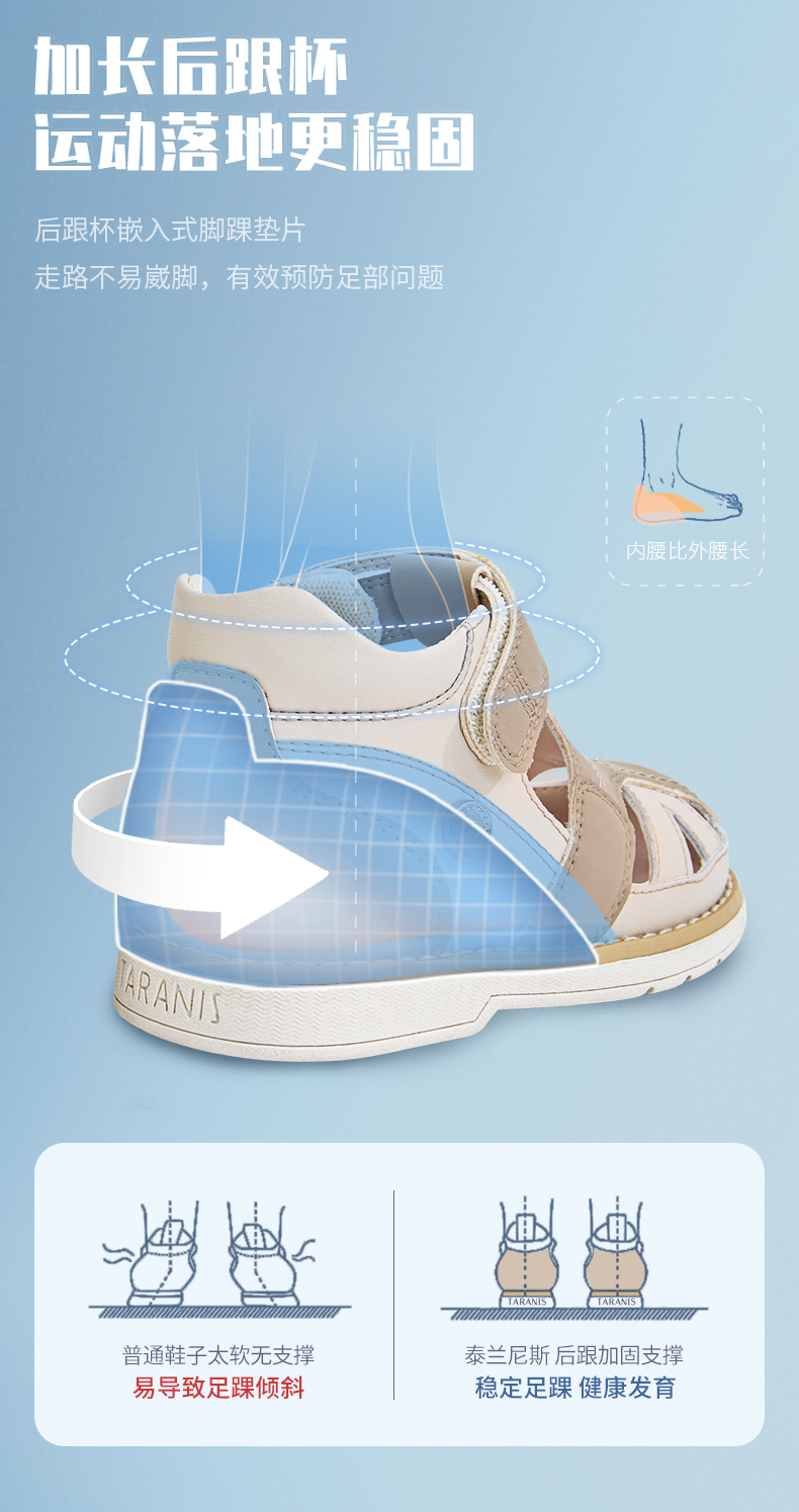 泰兰尼斯儿童凉鞋男女童内八字专用正姿足外翻矫形足弓支撑机能鞋 T18X3B3498