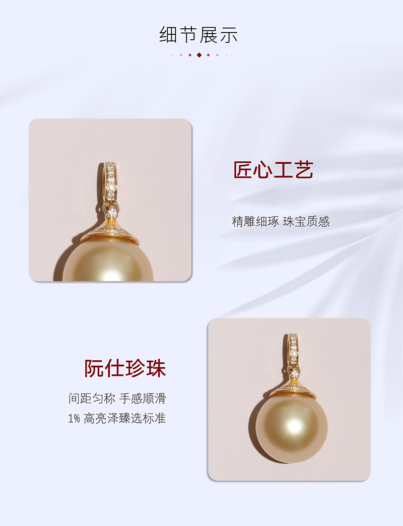 阮仕曳月系列 G18K金南洋金珠吊坠 11-12mm 正圆 极微瑕 极强光(赠银链)