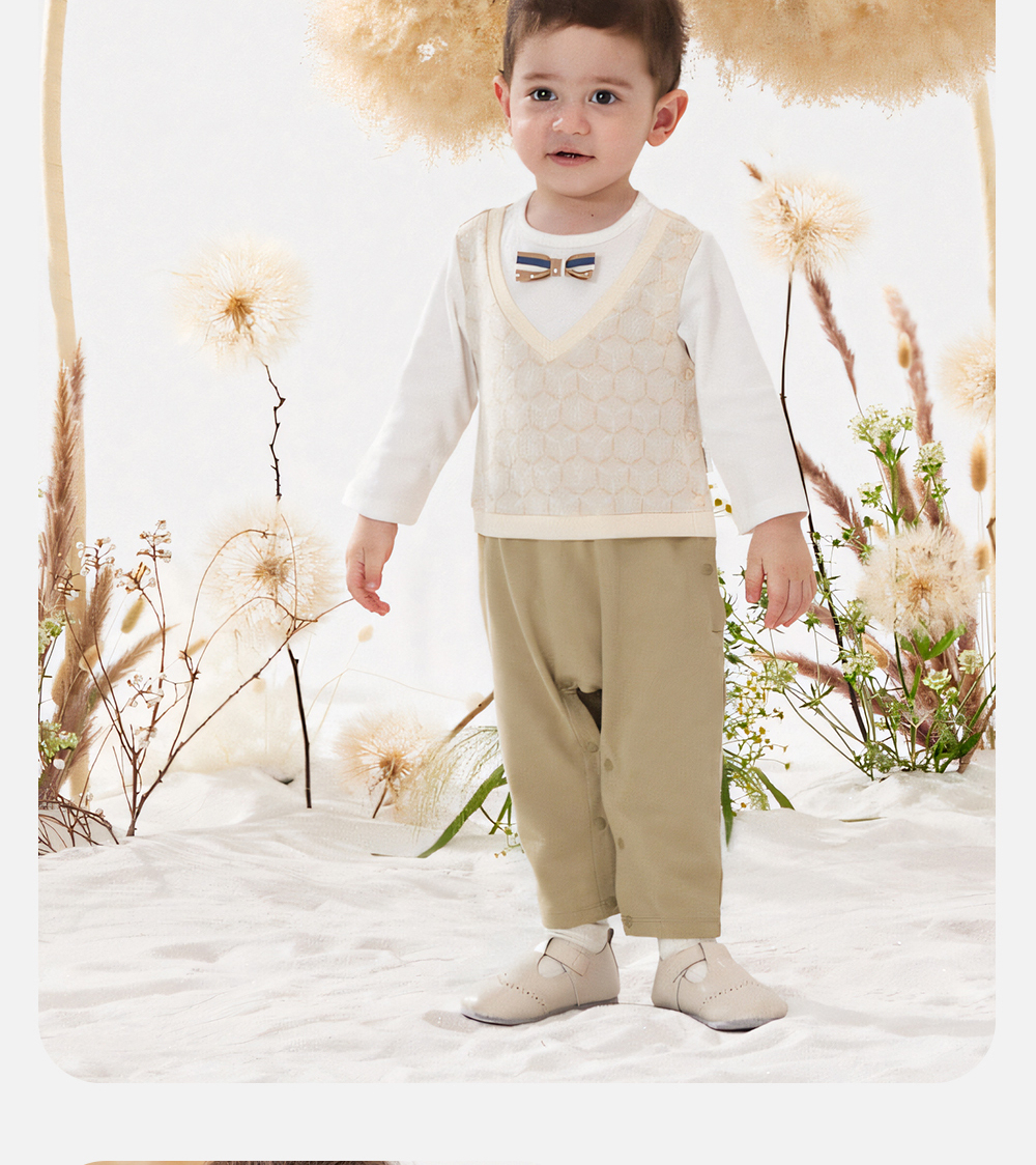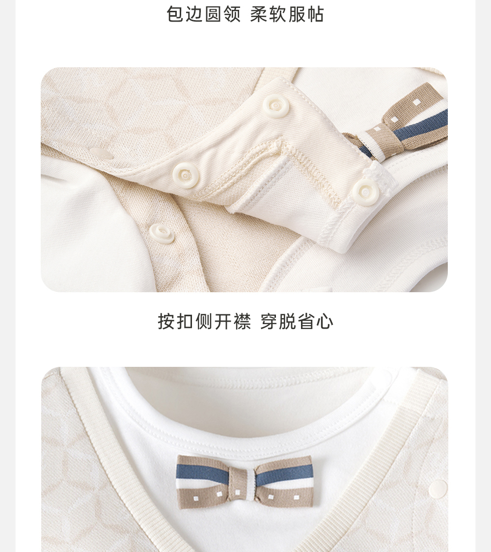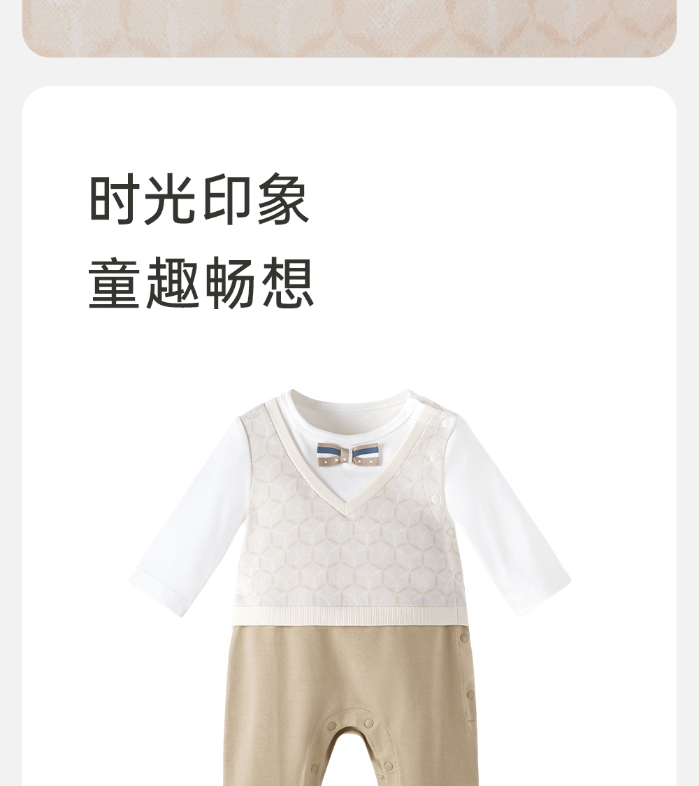 英氏经典复古连体衣男宝宝小绅士衣服吸湿速干爬服YRHAJ1Q152A