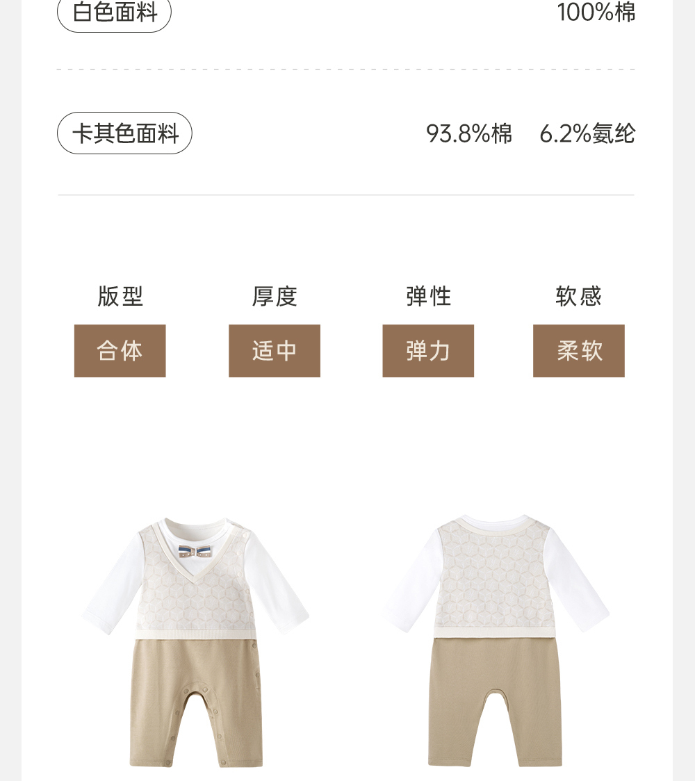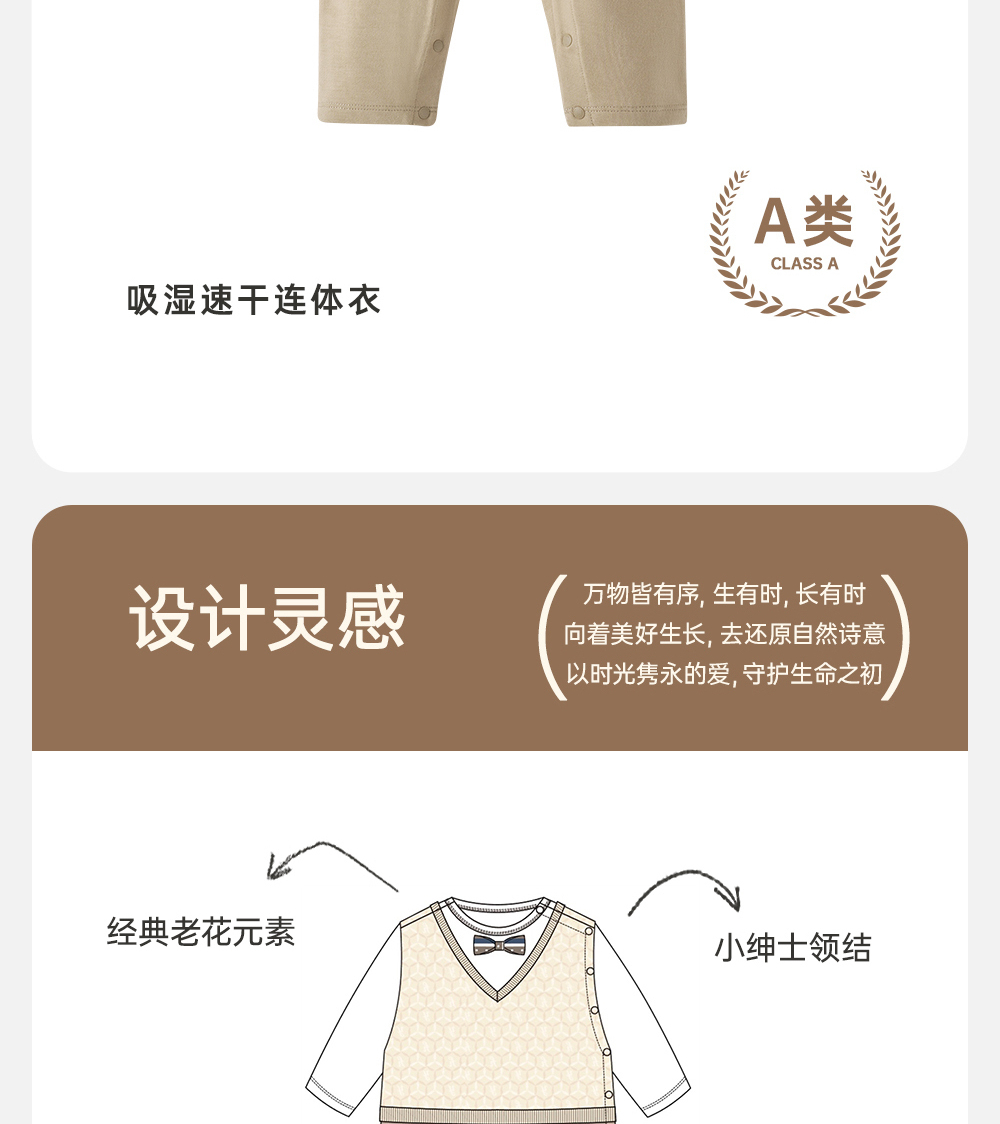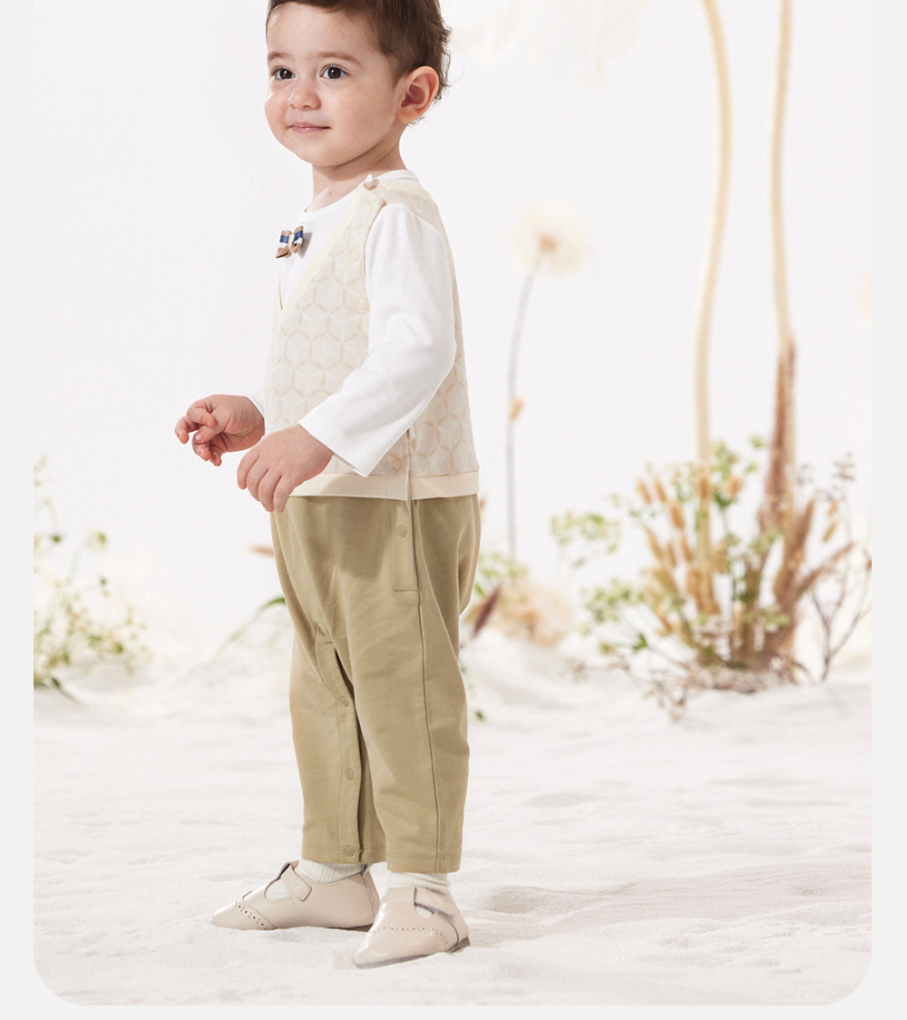 英氏经典复古连体衣男宝宝小绅士衣服吸湿速干爬服YRHAJ1Q152A
