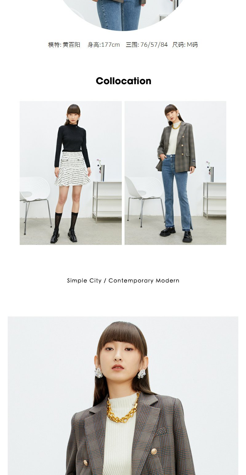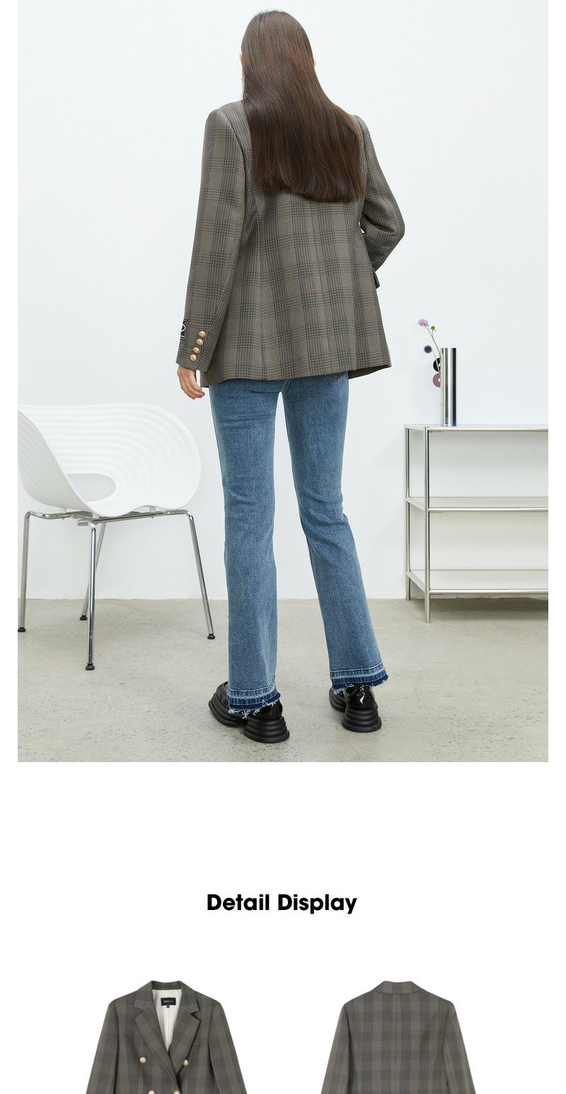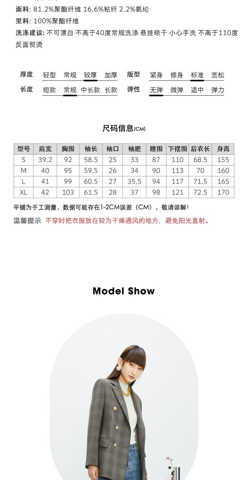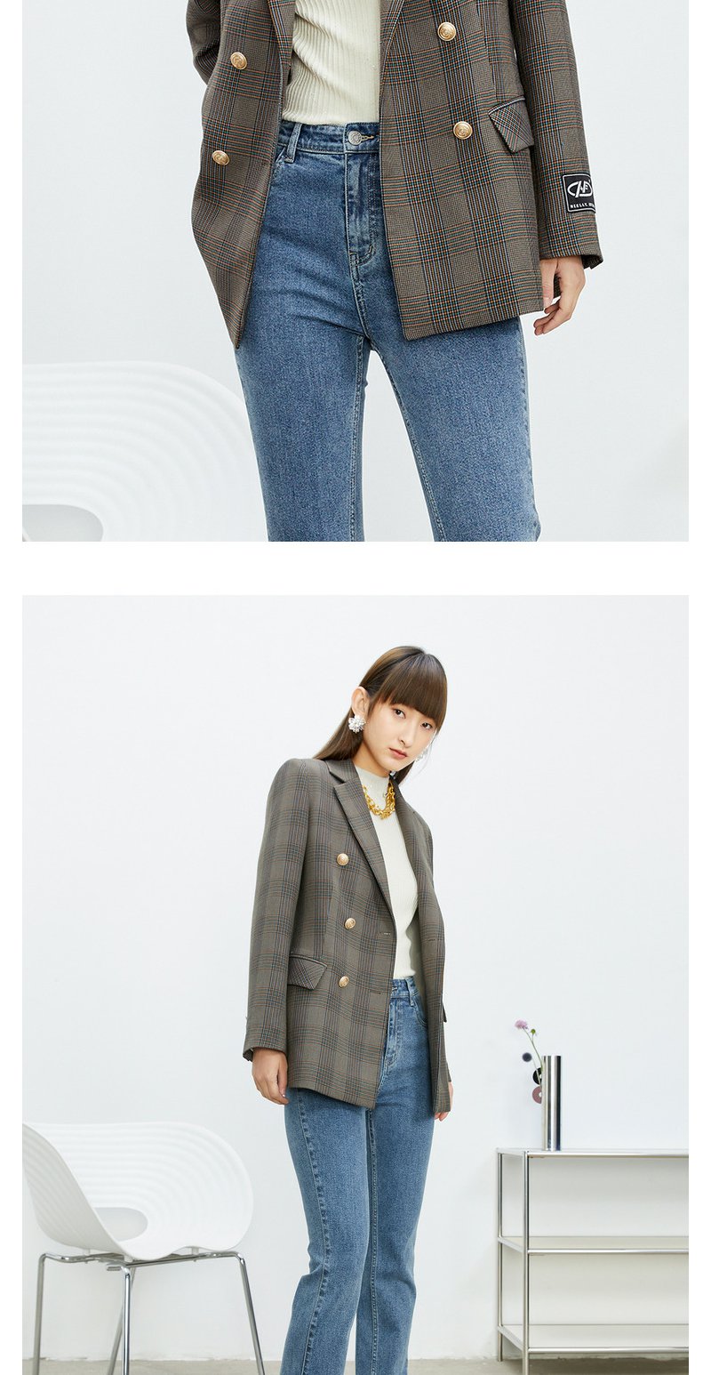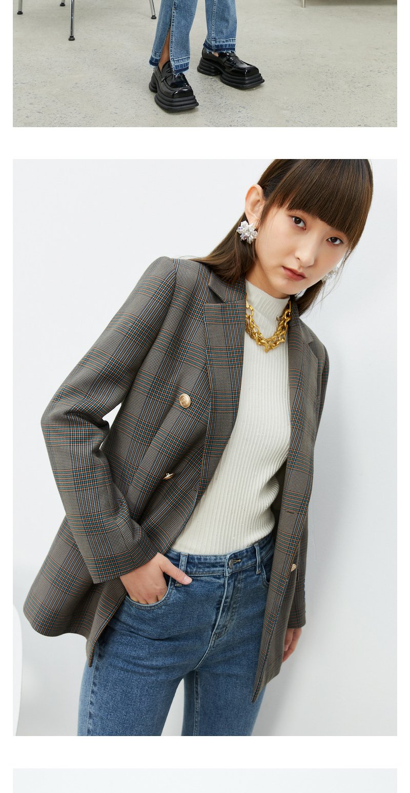 NEELLY纳俪商场同款休闲西装外套女双排扣格纹西服简约通勤外套春N22074W04422