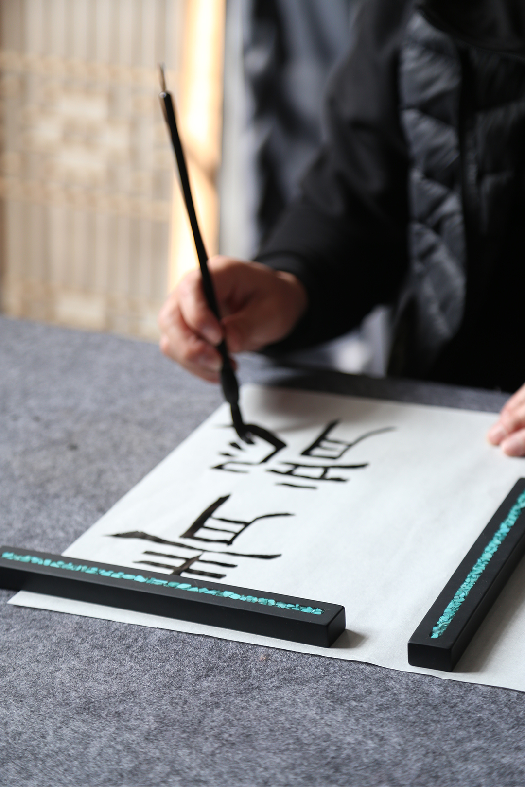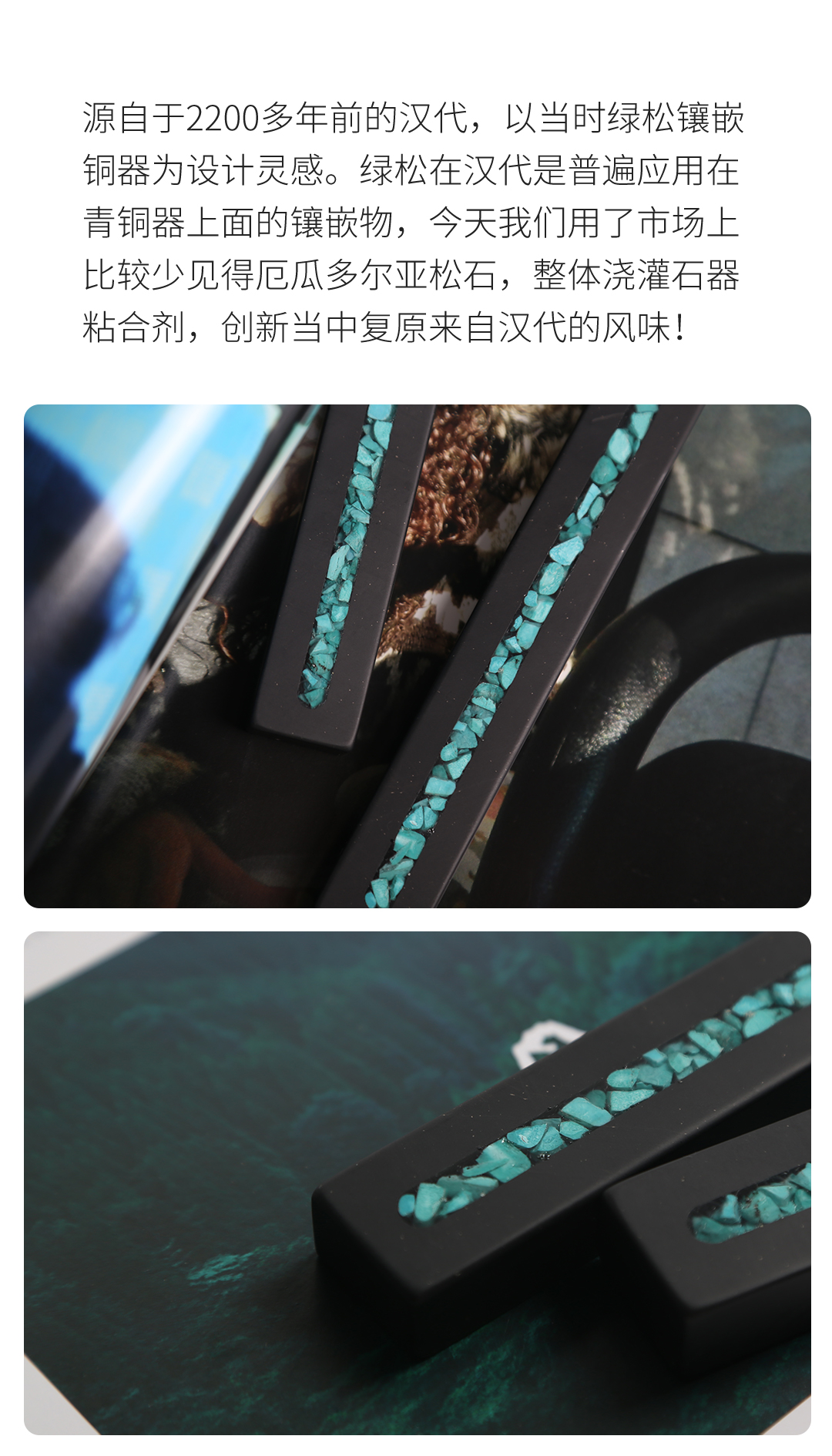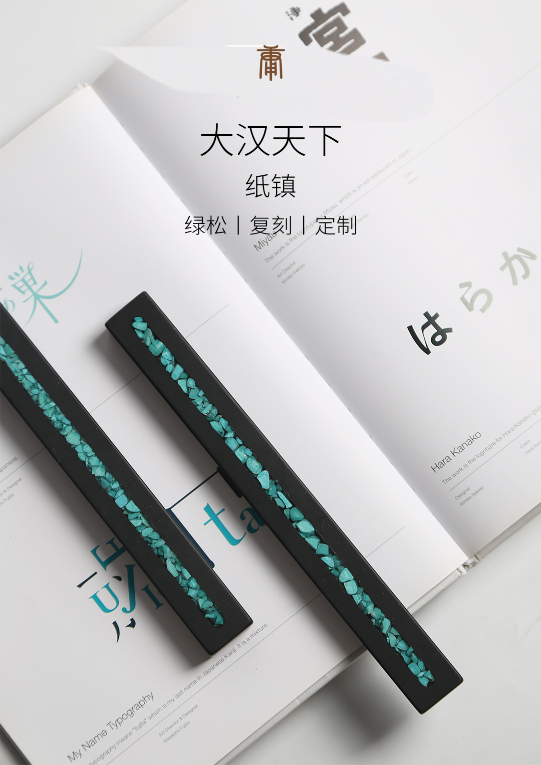 大汉镇纸 宣砚石镶嵌绿松石 226*25*15mm