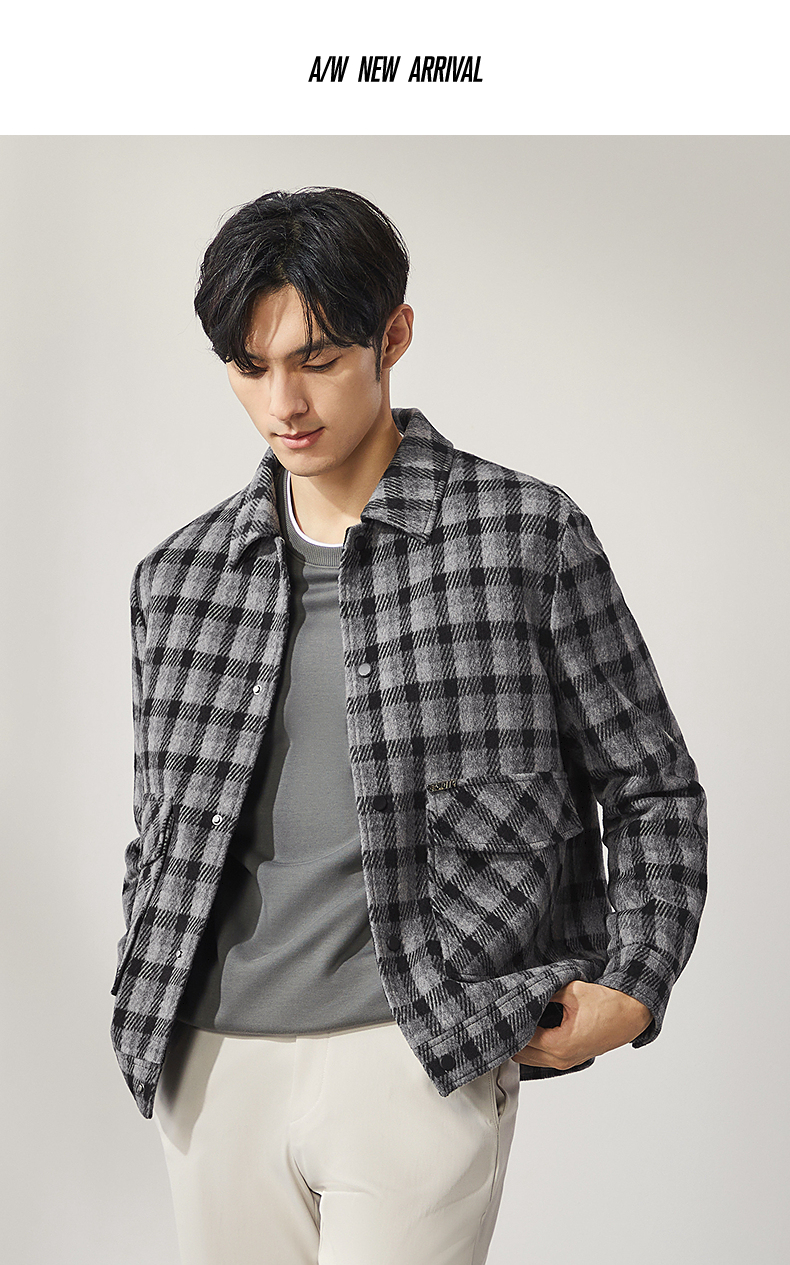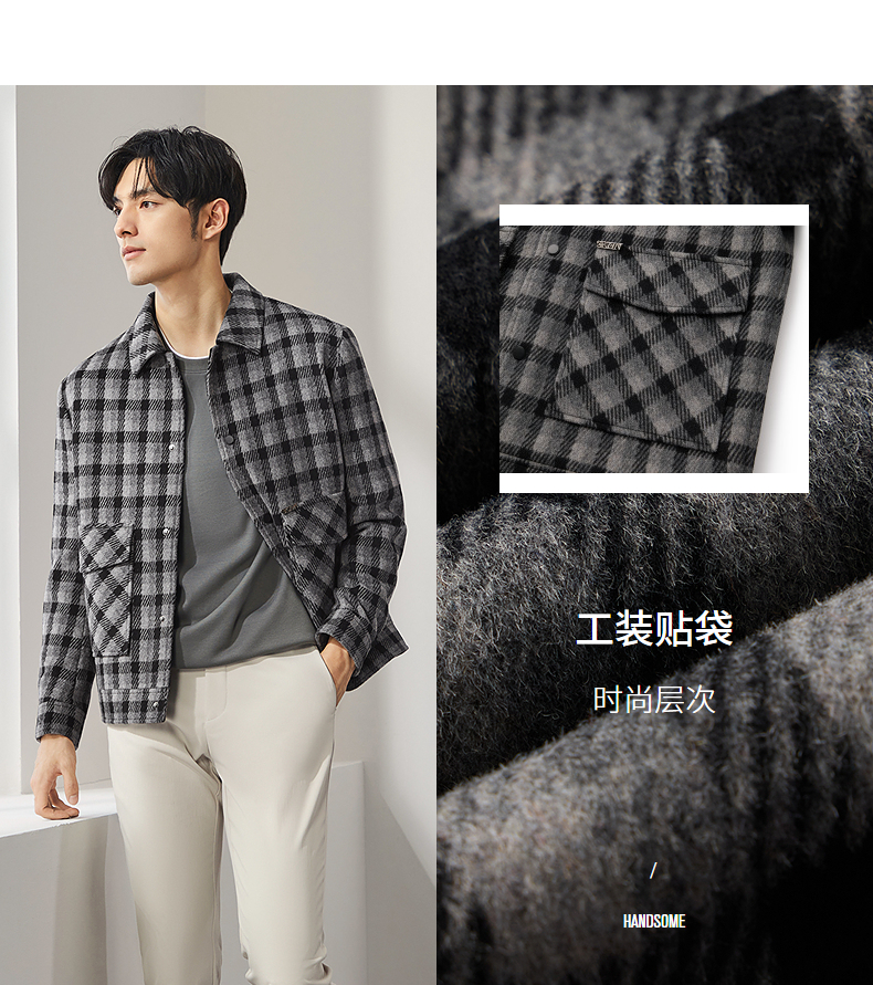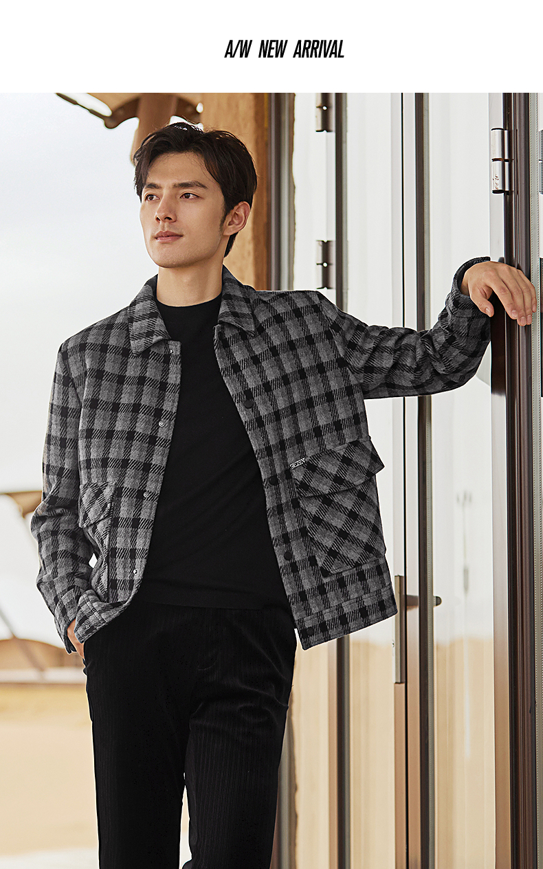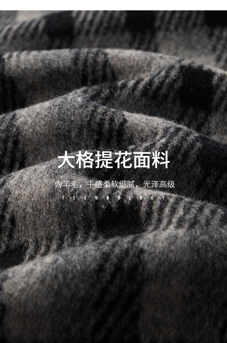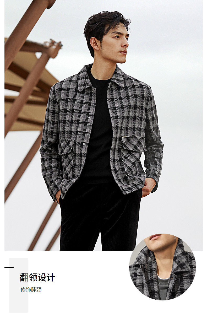 【含羊毛】柒牌毛呢夹克翻领男2024秋冬新款格纹提花休闲工装外套 127D70290
