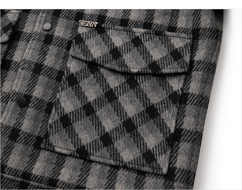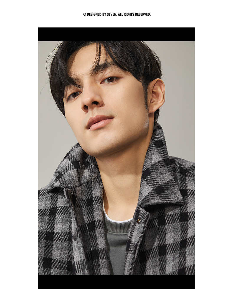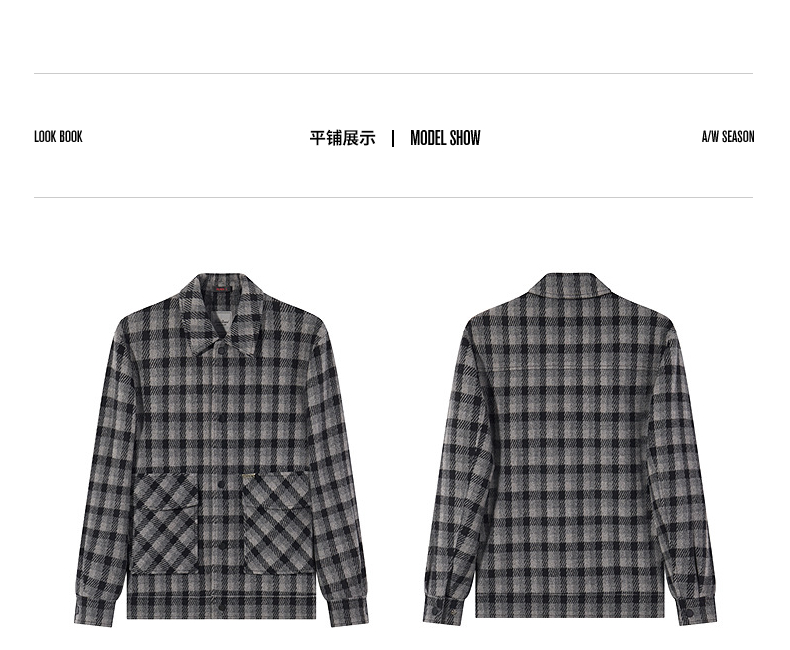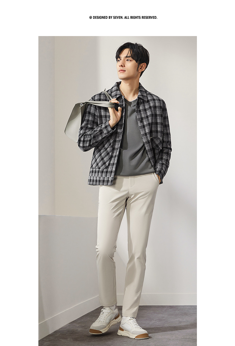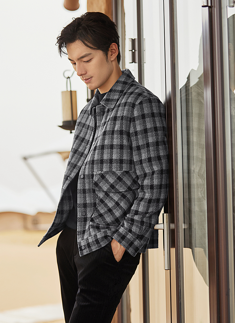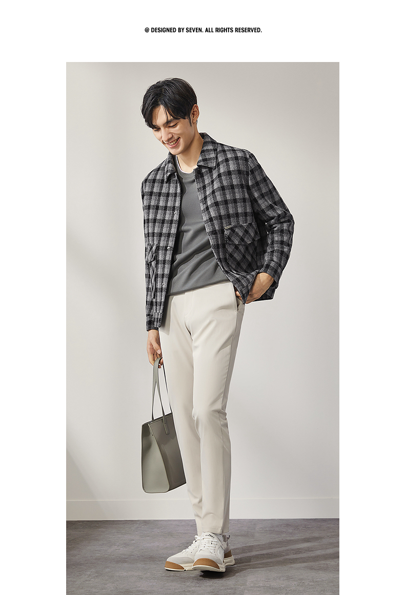 【含羊毛】柒牌毛呢夹克翻领男2024秋冬新款格纹提花休闲工装外套 127D70290