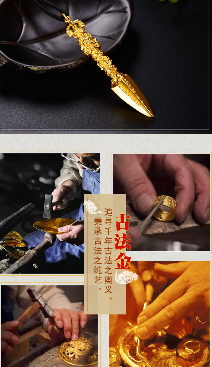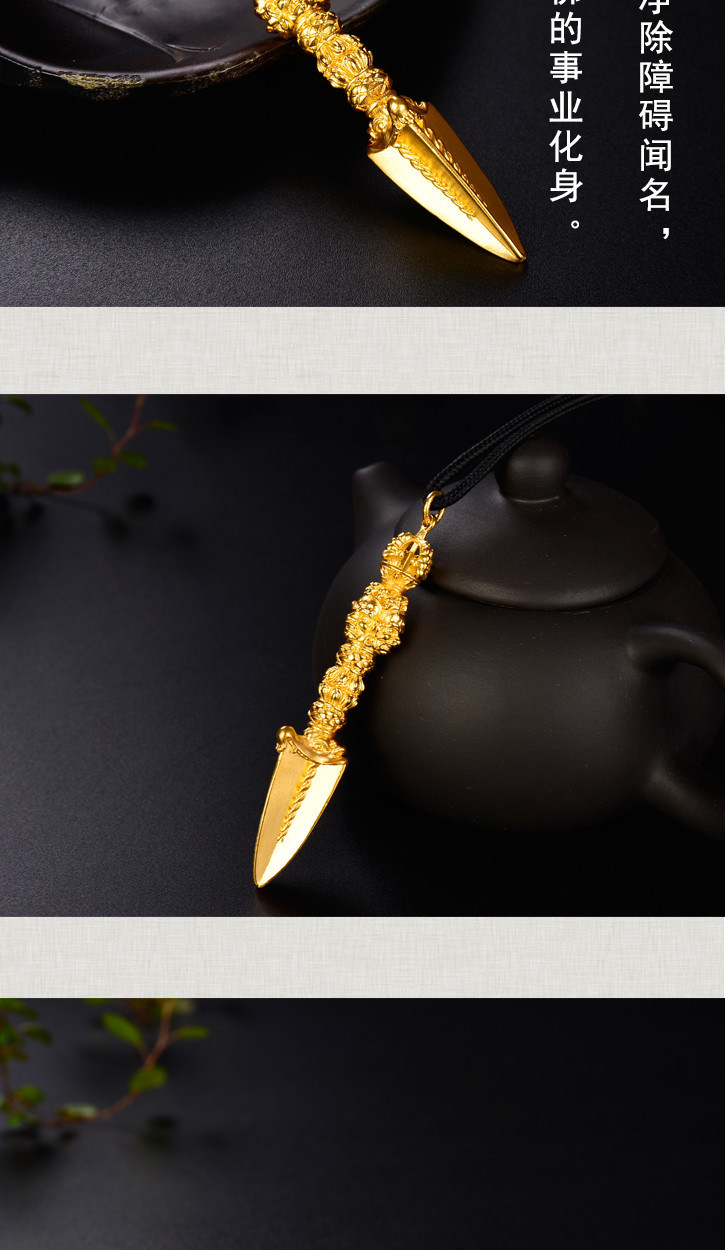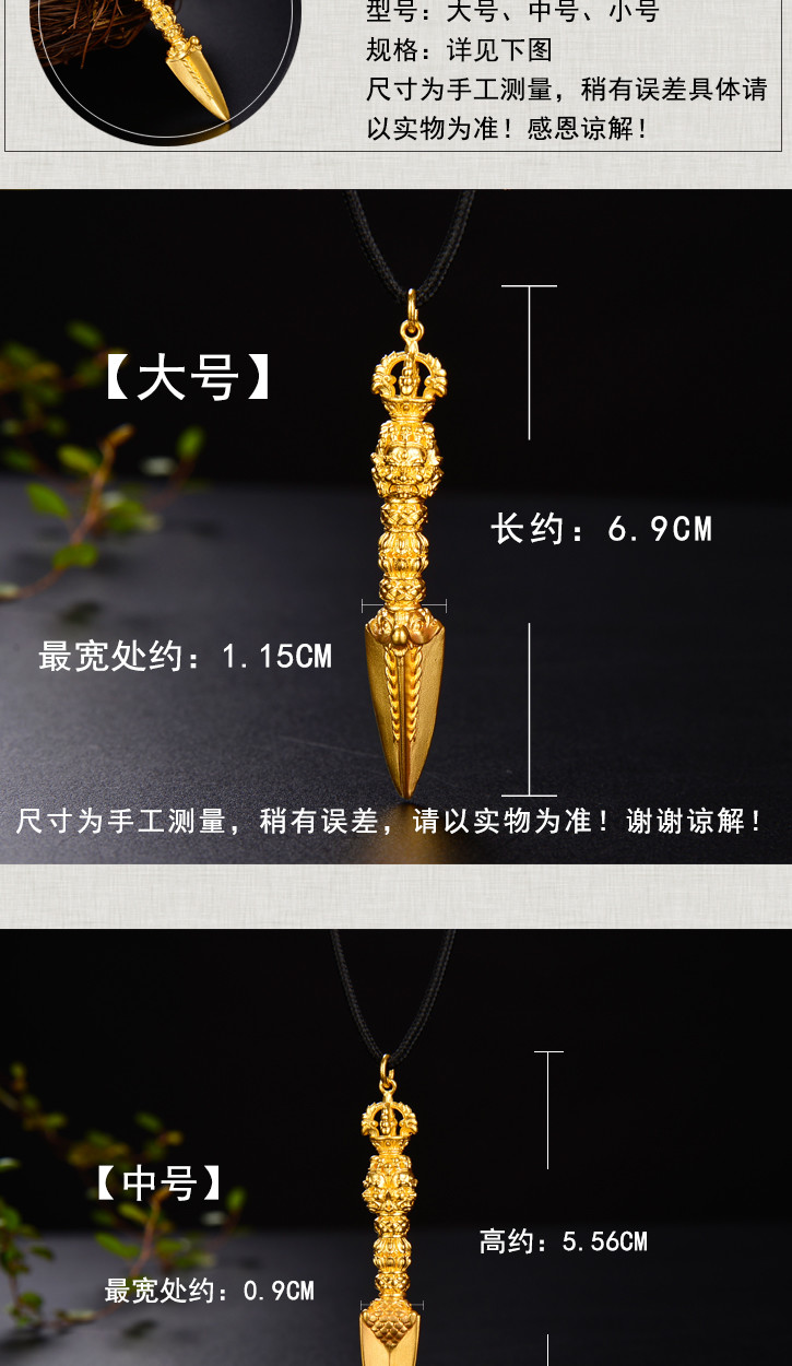 天语龙吟足金 古法黄金金刚橛金刚杵吊坠男女款密宗法器挂坠