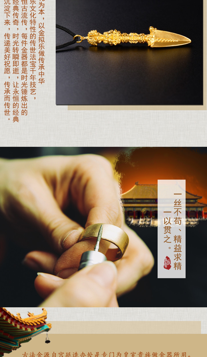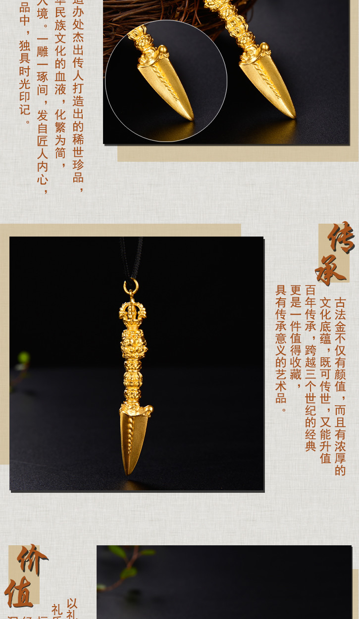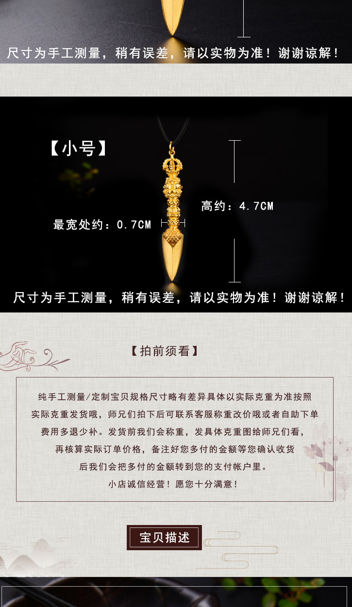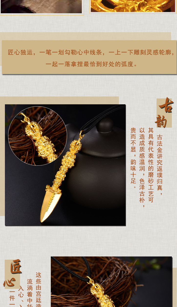 天语龙吟足金 古法黄金金刚橛金刚杵吊坠男女款密宗法器挂坠