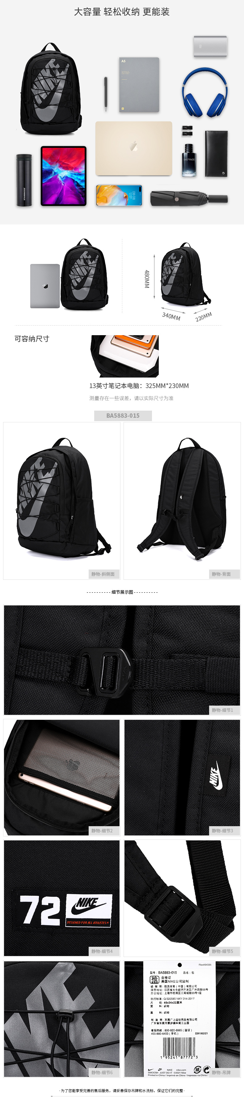 NIKE耐克官方舰店男包女包 2022春季新款运动包户外学生书包大logo背包便携双肩包 BA5883-015 MISC