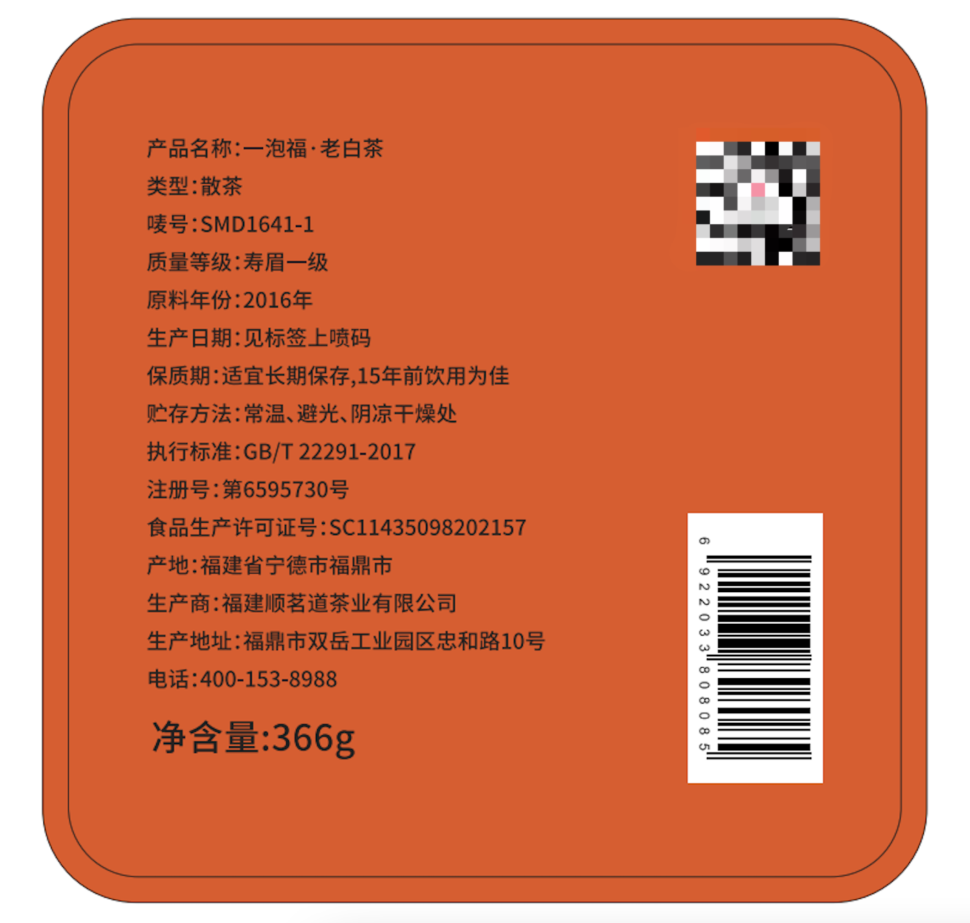 9.23丨顺茗道 壹泡福·2016寿眉铁罐366g