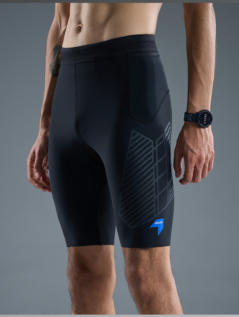 内道聚能力收纳五分紧身裤男透气弹力支撑越野跑步裤