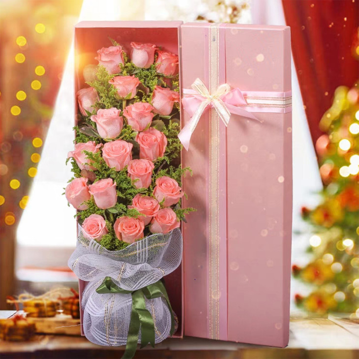 19支粉玫瑰,黄莺礼盒搭配!
