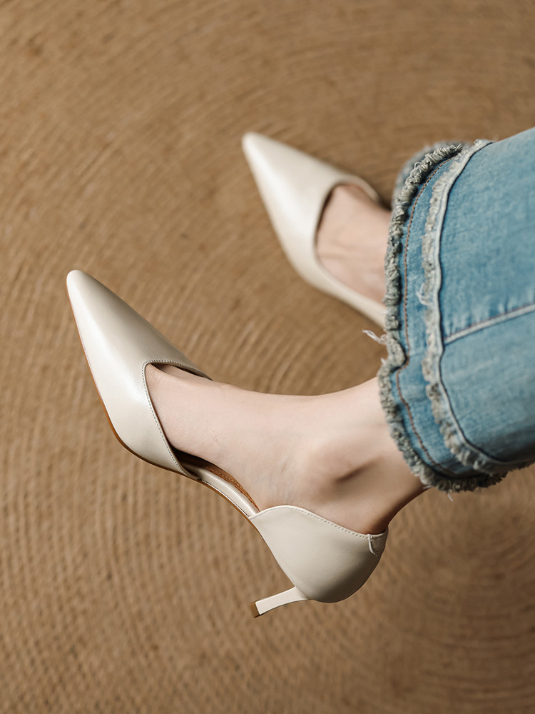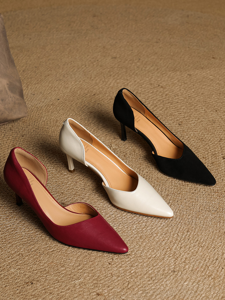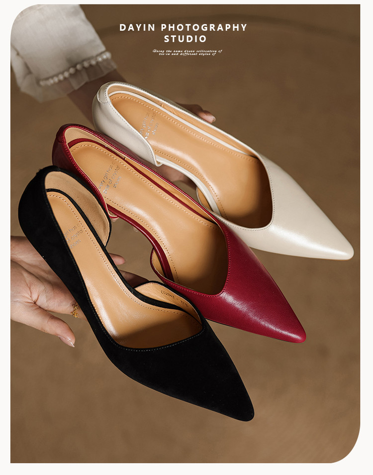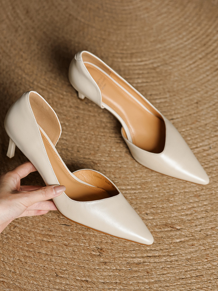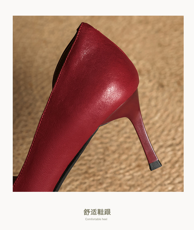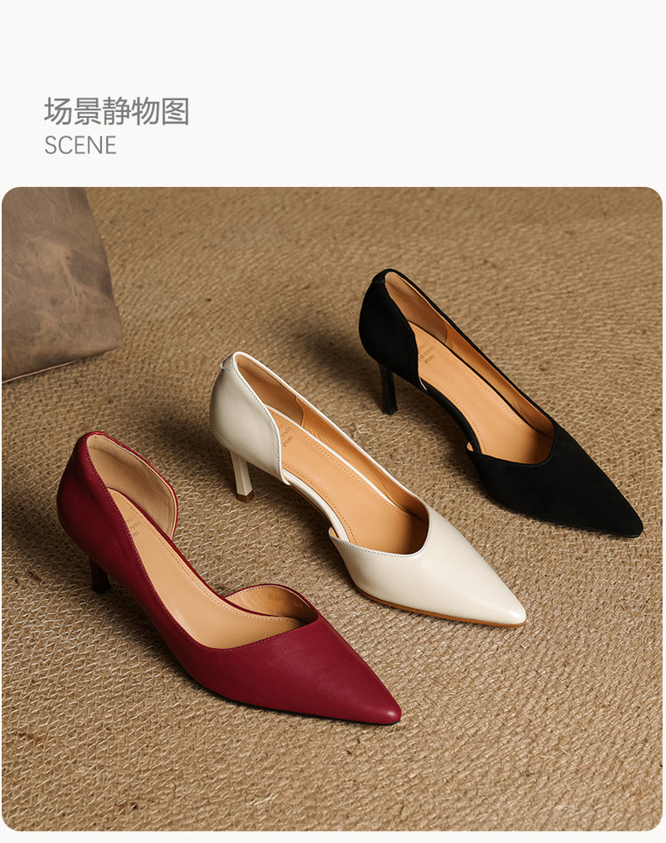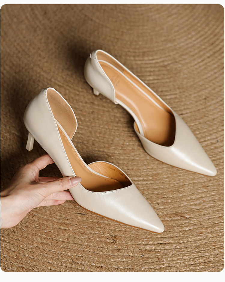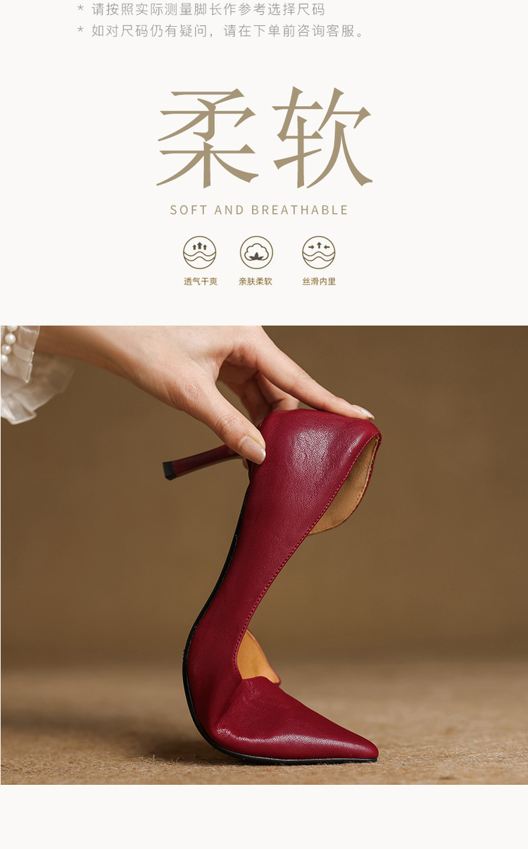 【预售5天】头层牛皮~极简柔软侧空细跟浅口单鞋女新款尖头高跟鞋真皮HB&2240