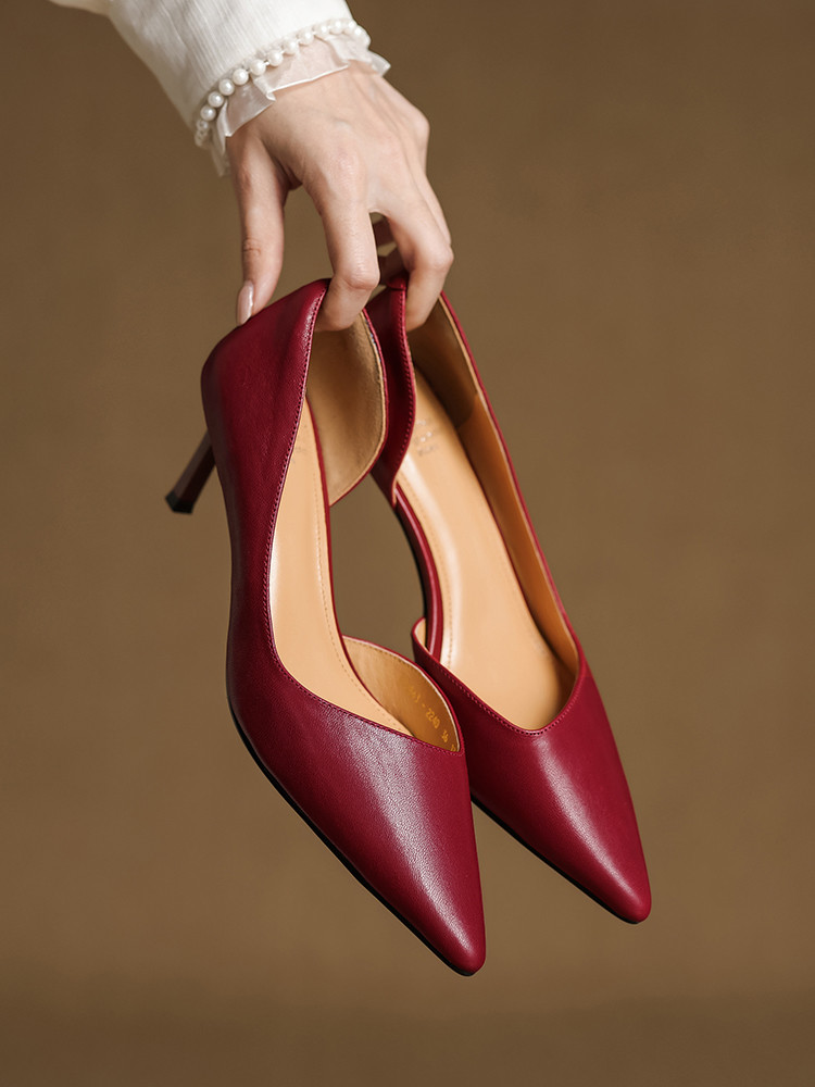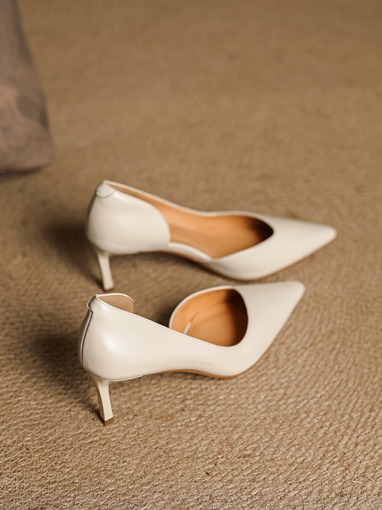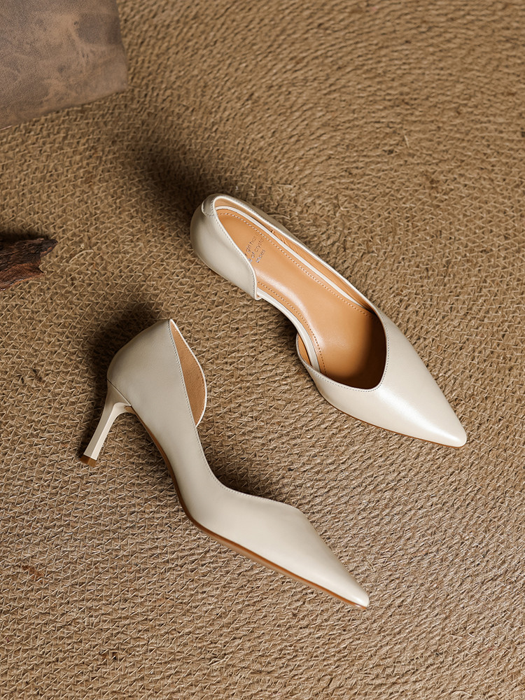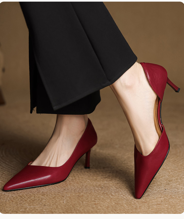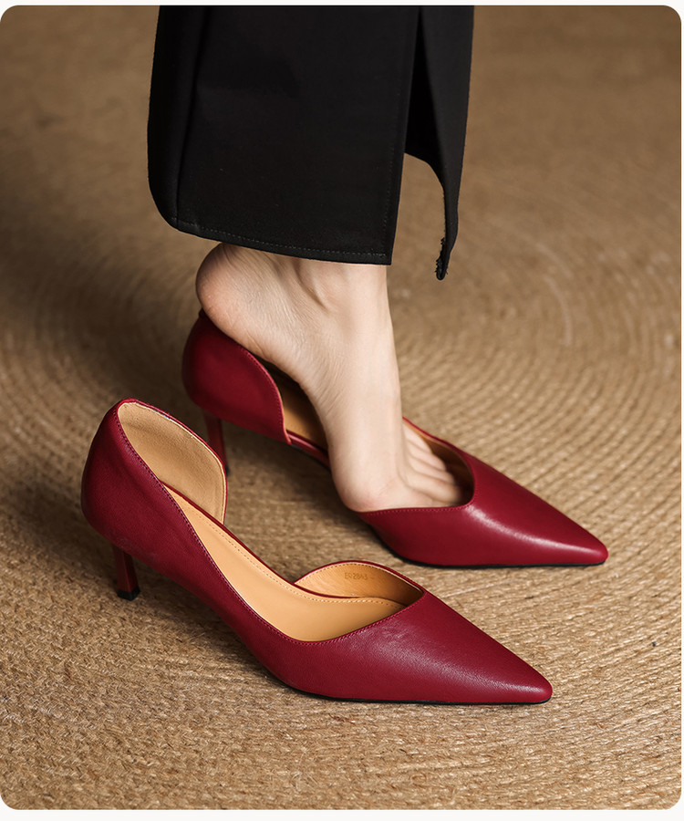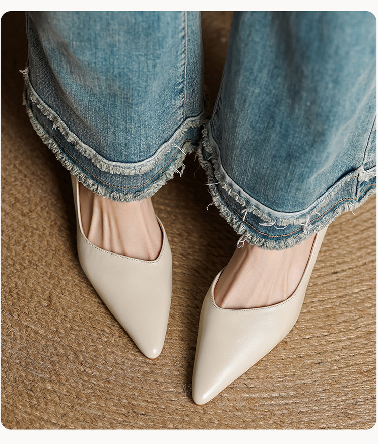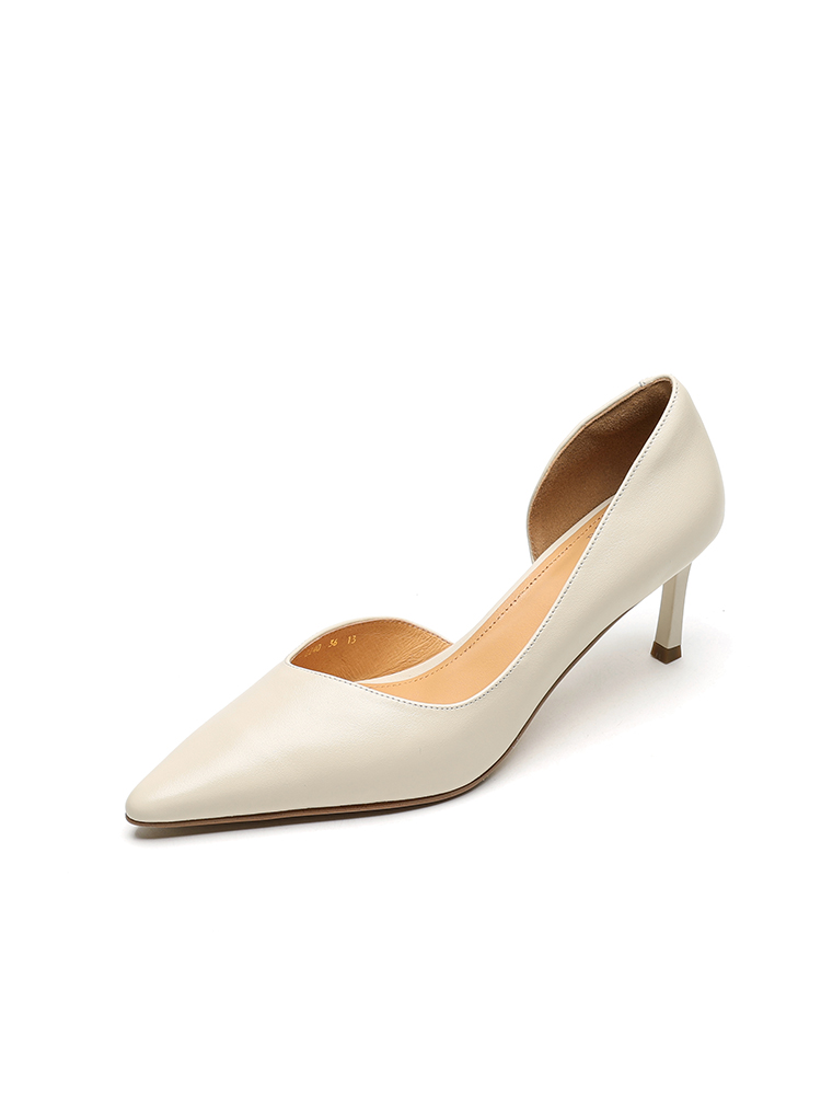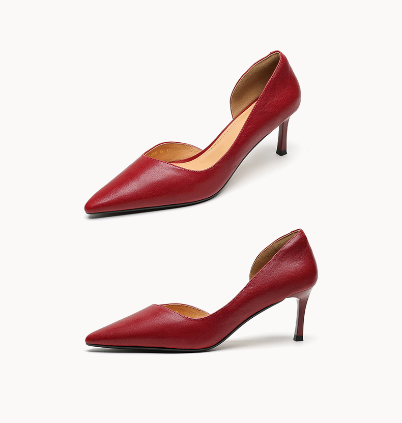【预售5天】头层牛皮~极简柔软侧空细跟浅口单鞋女新款尖头高跟鞋真皮HB&2240