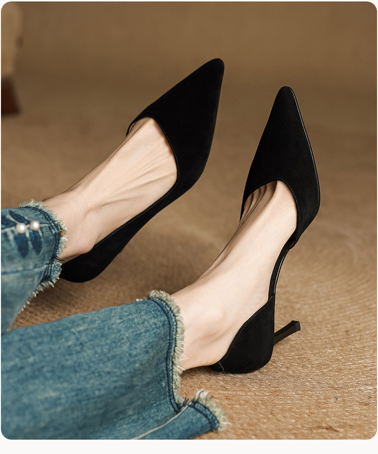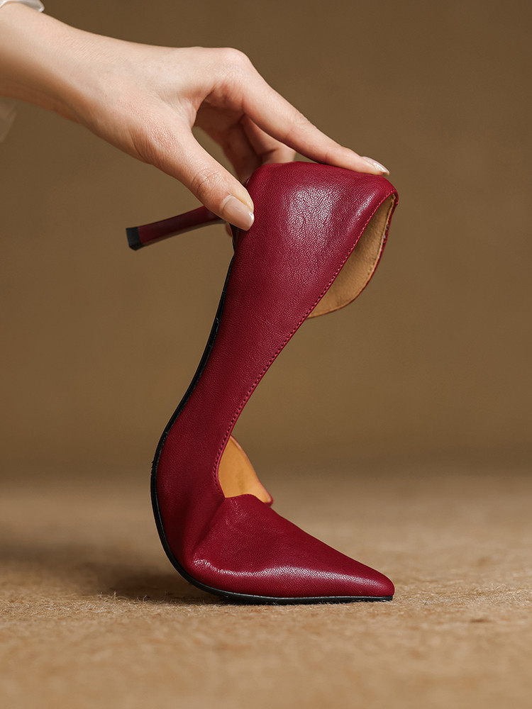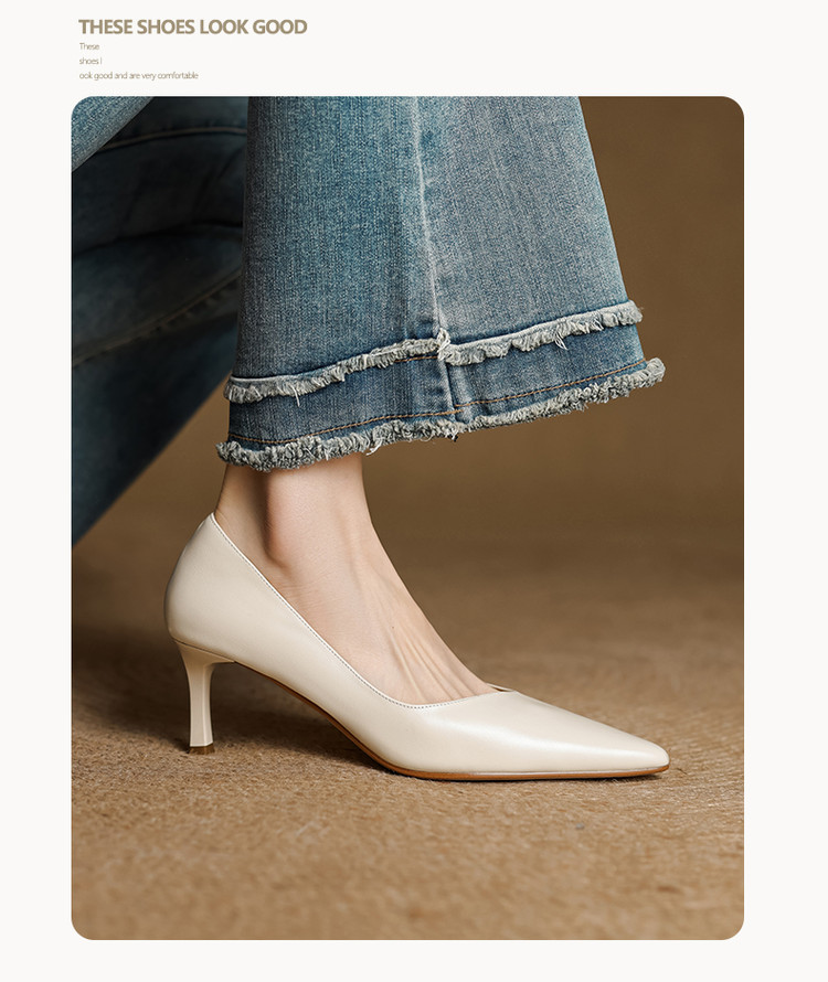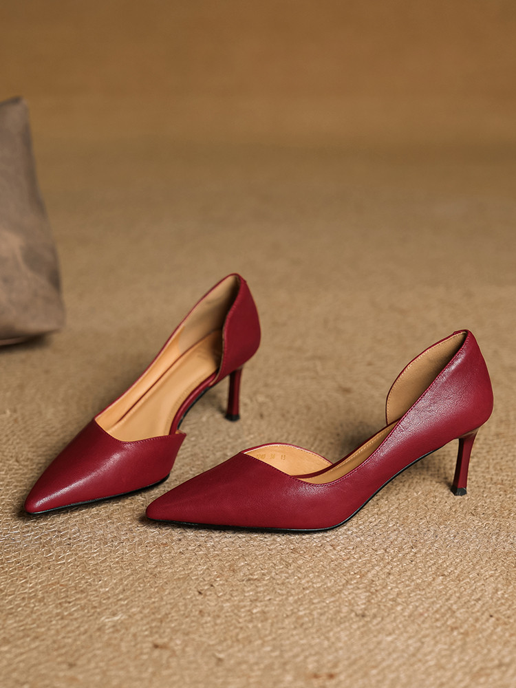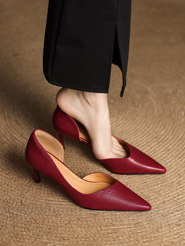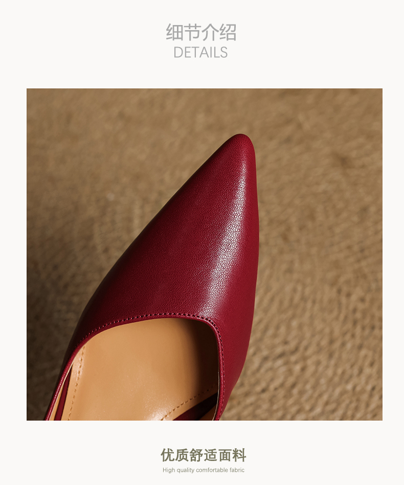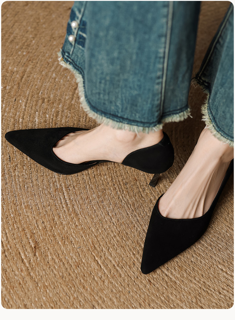 【预售5天】头层牛皮~极简柔软侧空细跟浅口单鞋女新款尖头高跟鞋真皮HB&2240