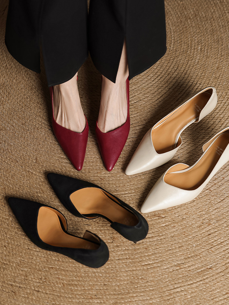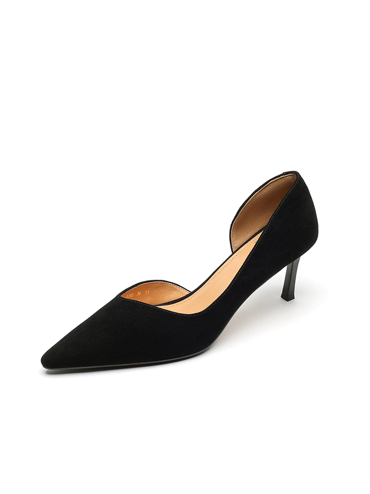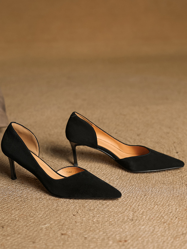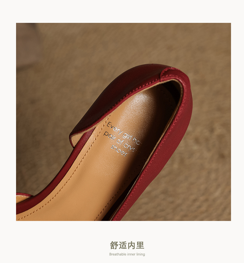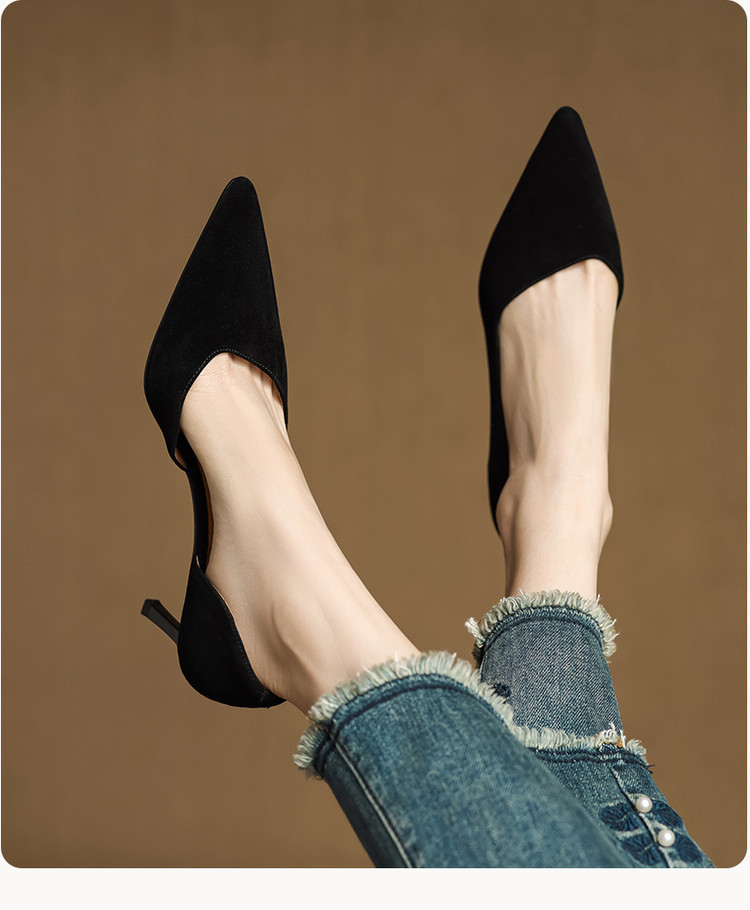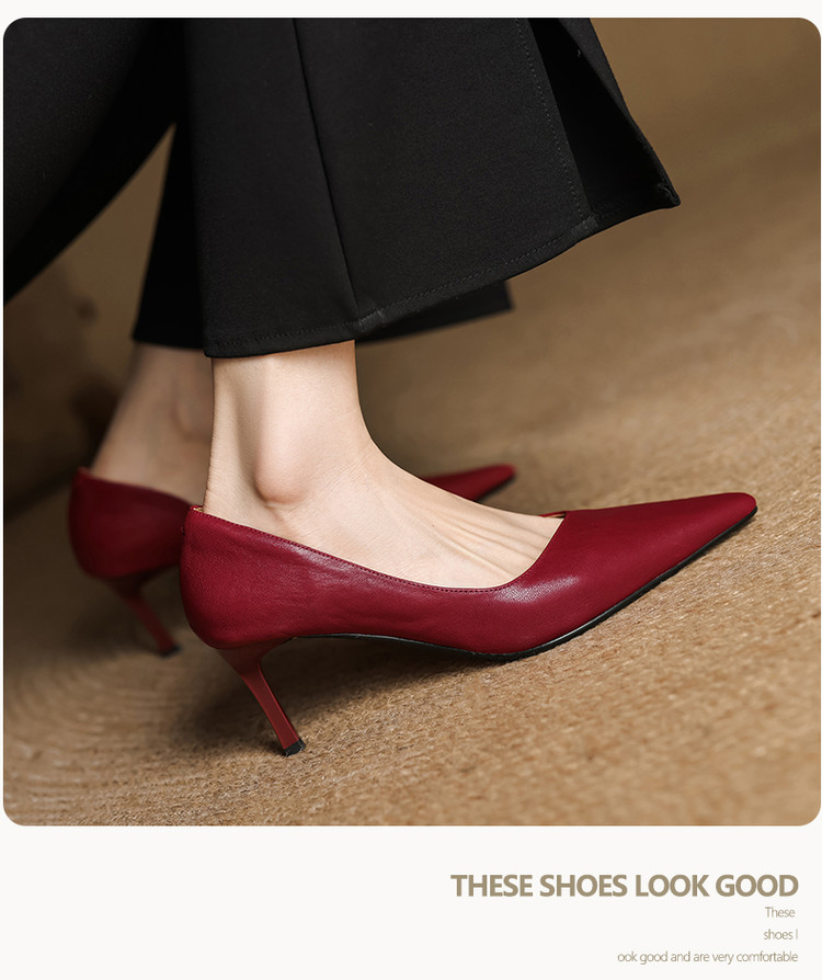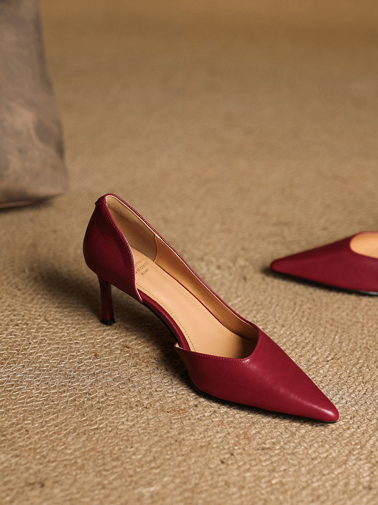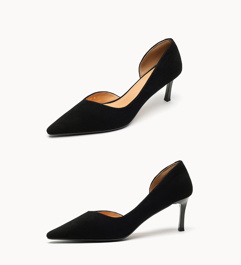 【预售5天】头层牛皮~极简柔软侧空细跟浅口单鞋女新款尖头高跟鞋真皮HB&2240