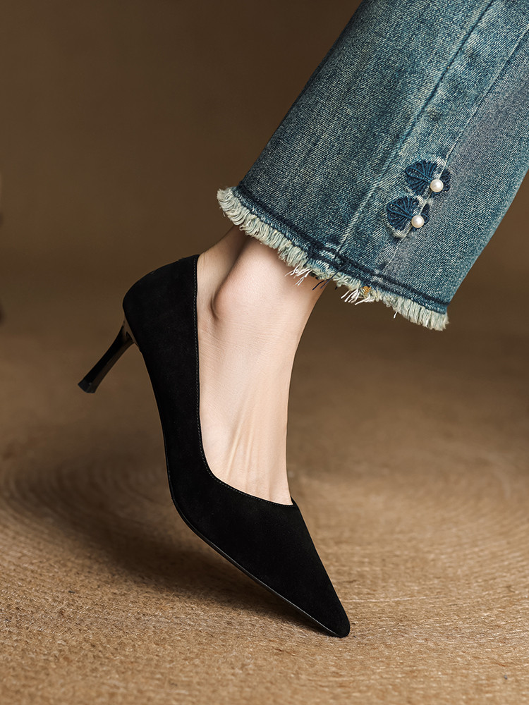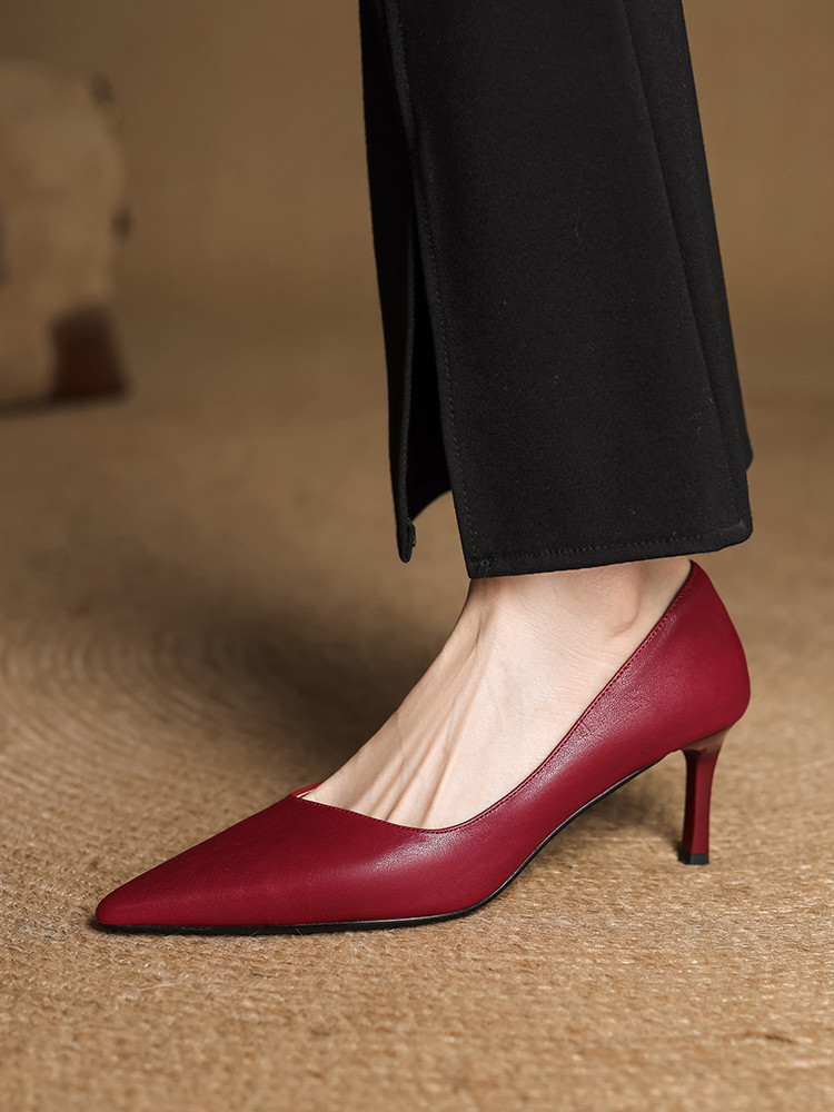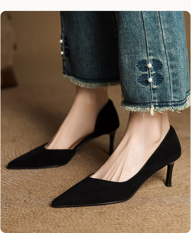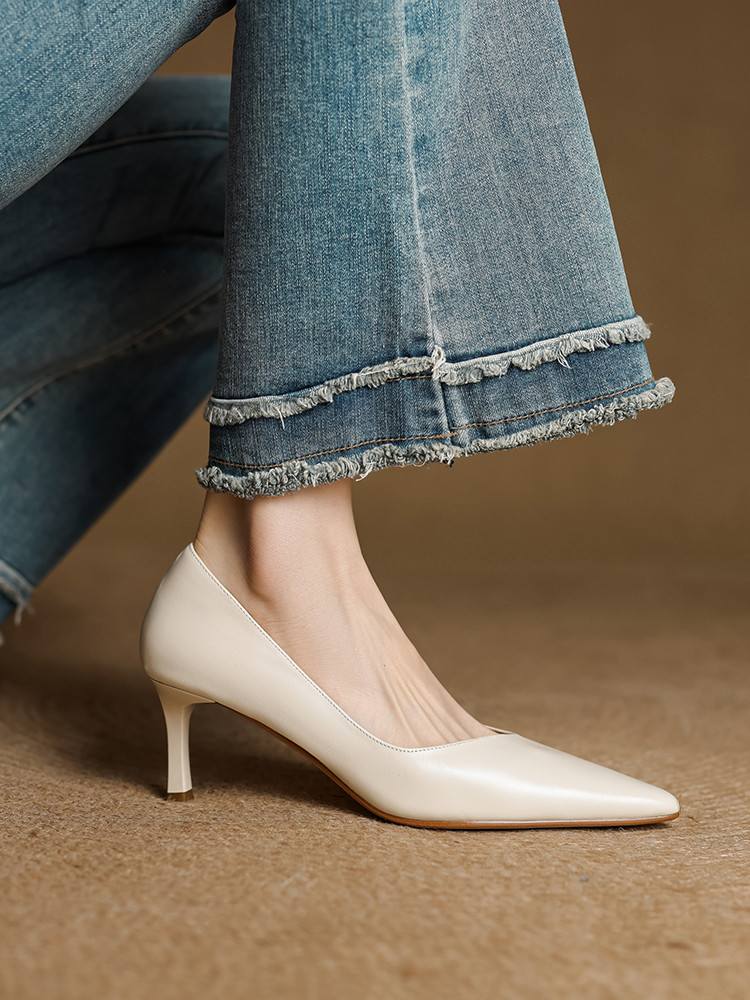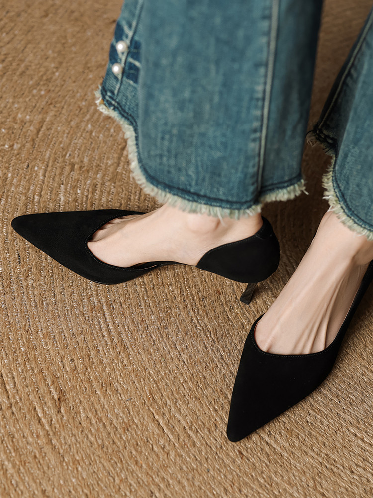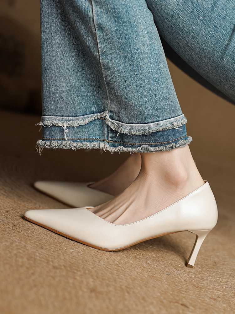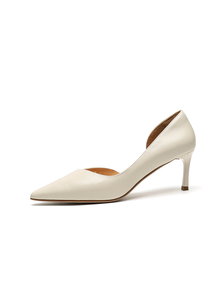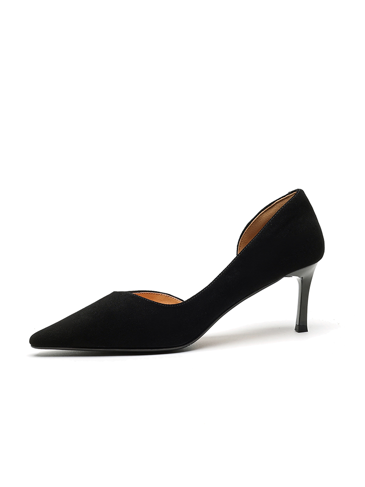 【预售5天】头层牛皮~极简柔软侧空细跟浅口单鞋女新款尖头高跟鞋真皮HB&2240