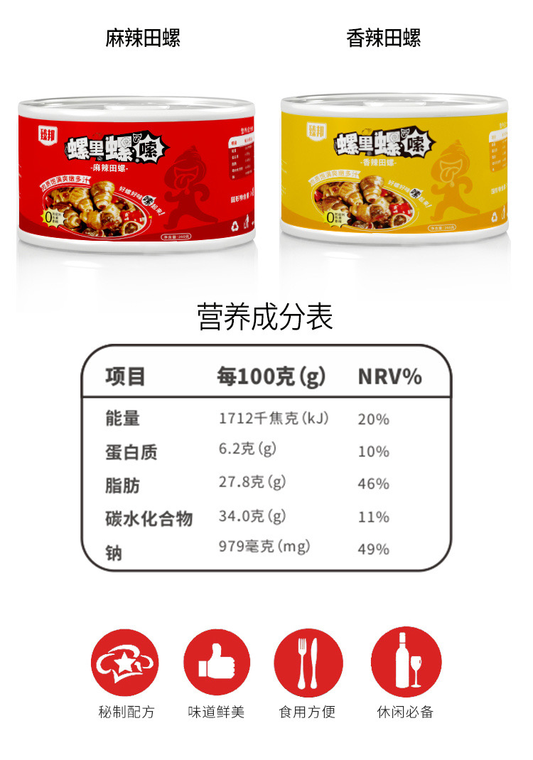 5.固形物含量80%,满满一罐田螺,真材实料看得到。