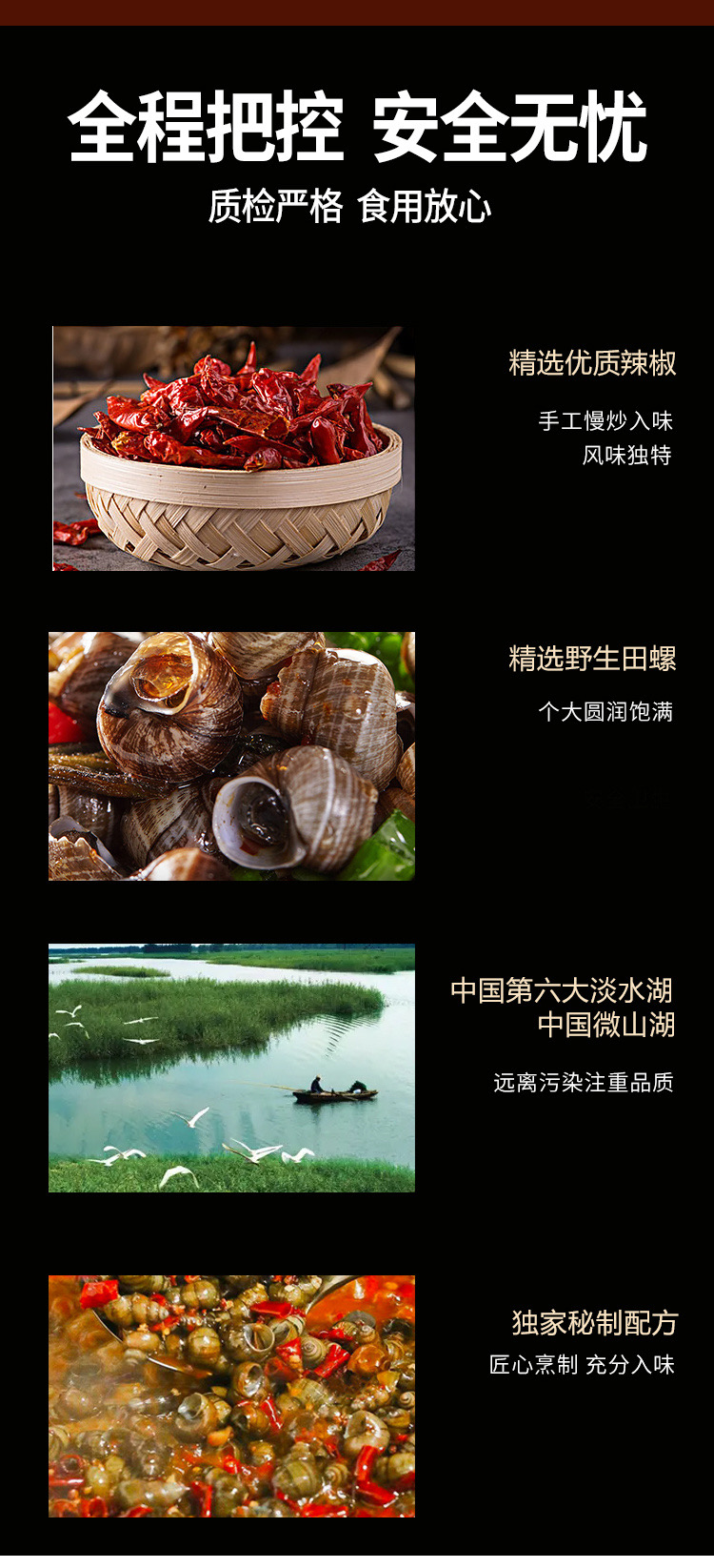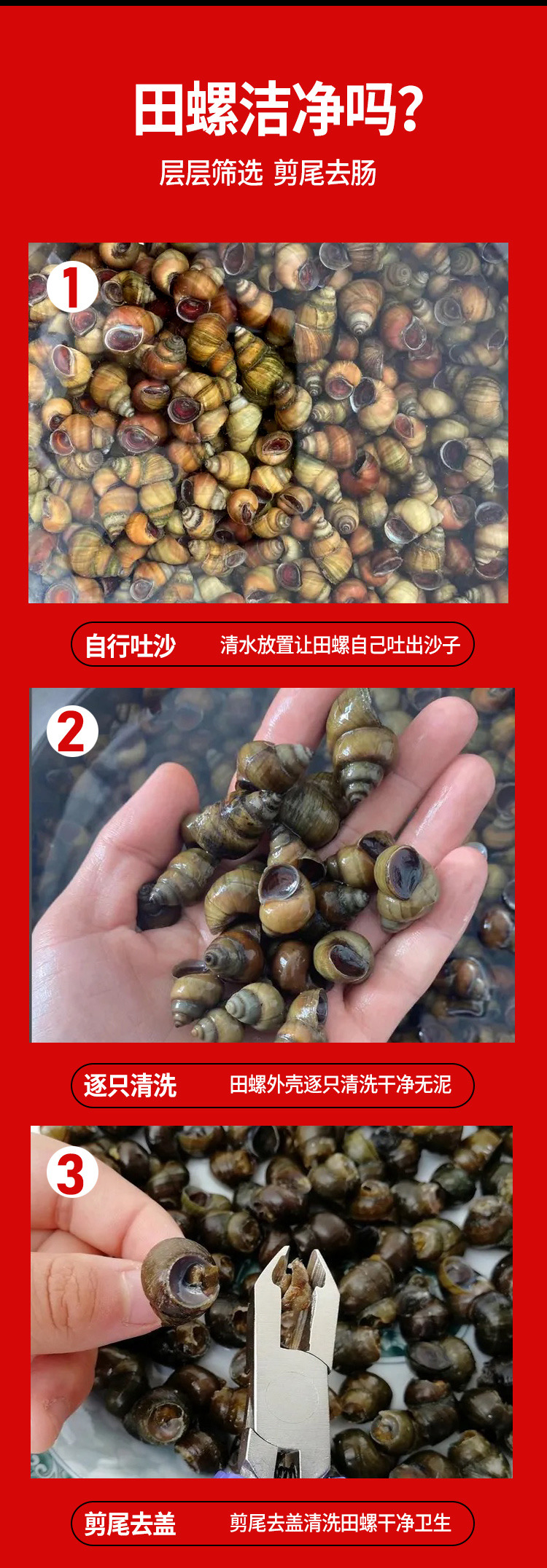 1.好产地产好螺,采用中国第六大淡水湖微山湖的田螺,多层精挑细选,个头均匀饱满,现捞现做。