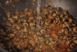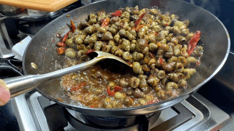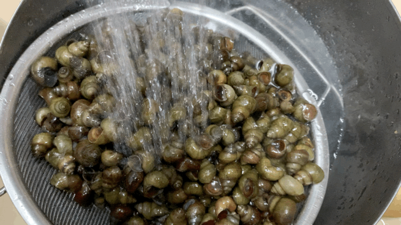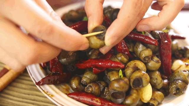 6.田螺清水放置,自然吐沙,剪尾去盖,清洗体内,干净卫生,精选十余种调料配置的独家秘方经小火精心烹制,充分入味,醇厚浓郁,口感暴爽,每一口都是享受。