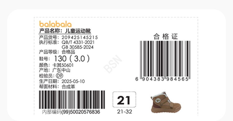 巴拉巴拉童鞋儿童学步鞋高帮雪地靴男宝加绒加厚运动靴2025秋冬鞋