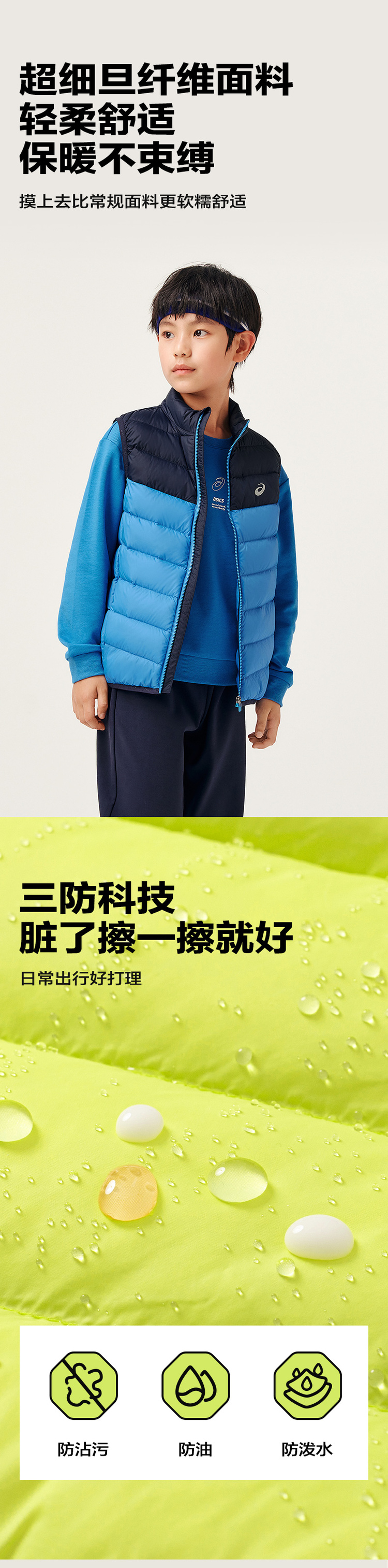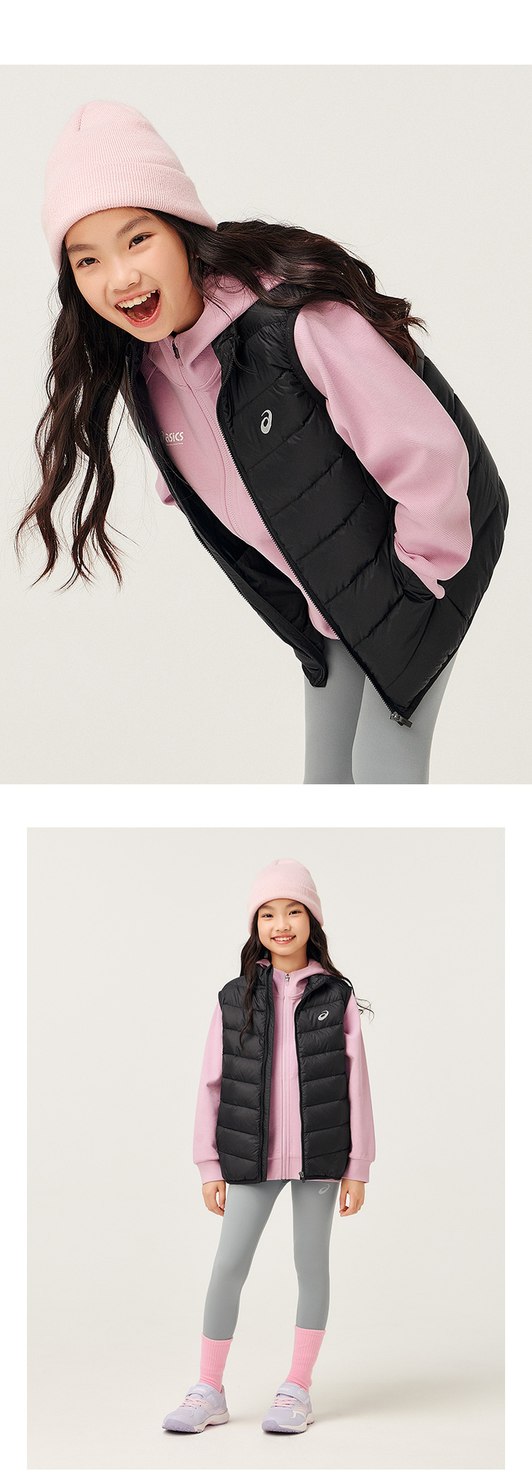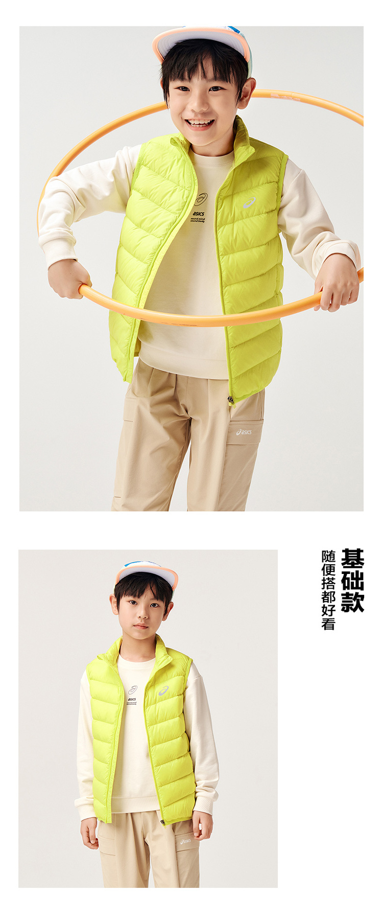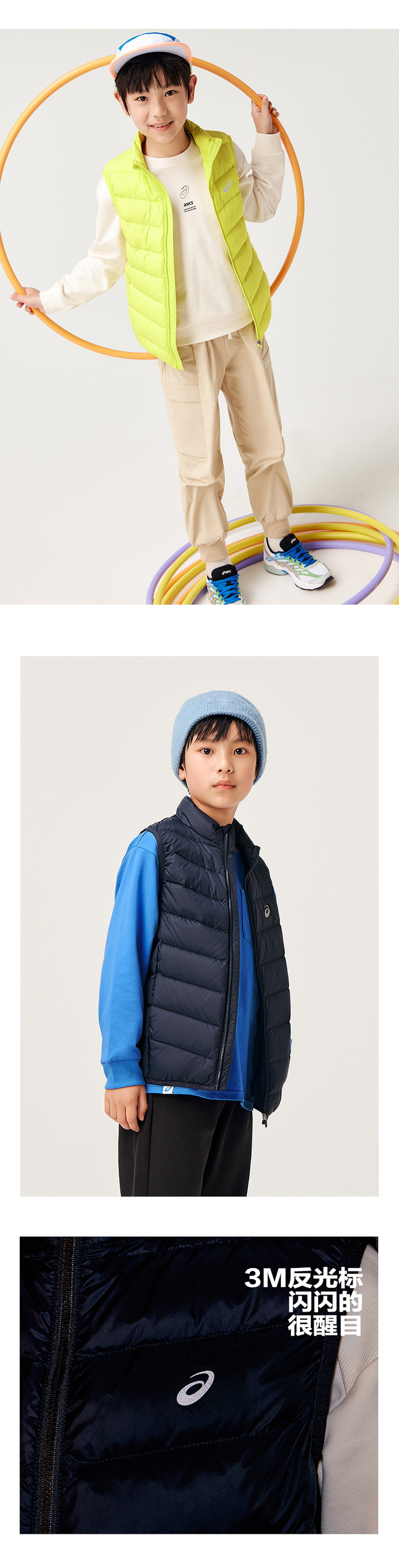 ASICS/亚瑟士童装中大童中性款百搭羽绒马甲2024时尚基础羽绒马甲