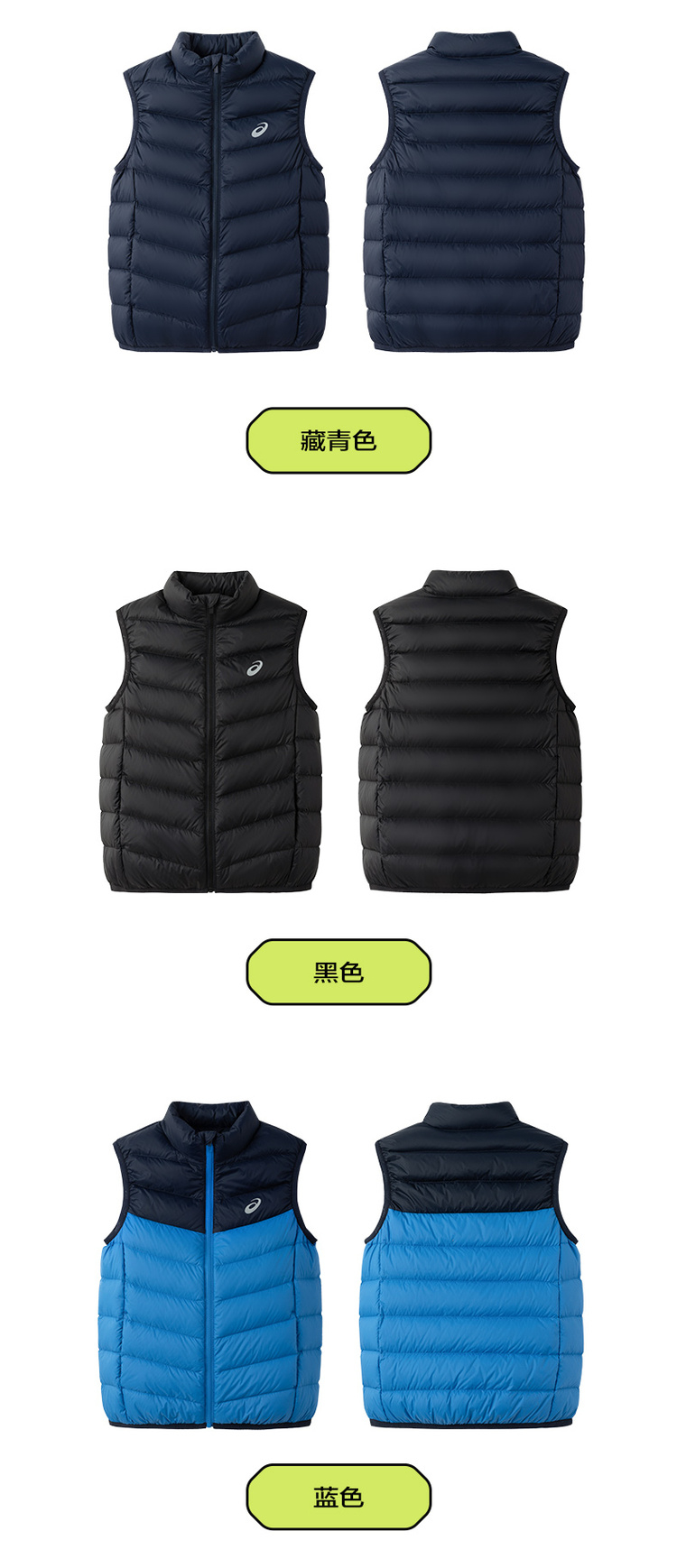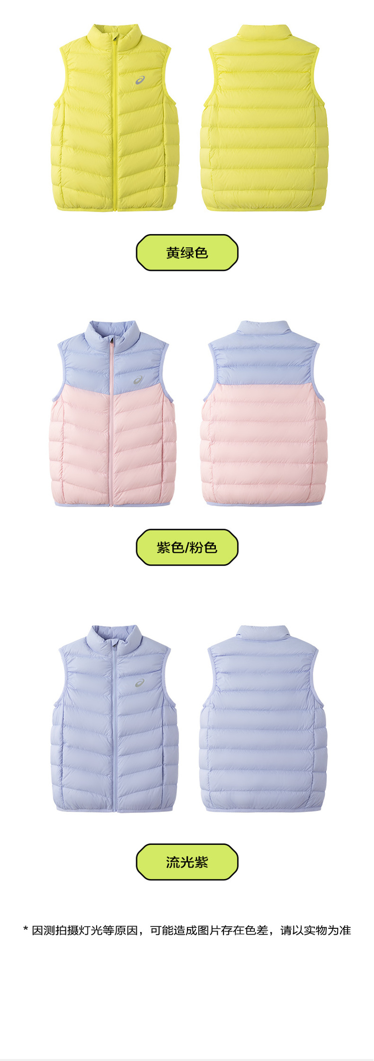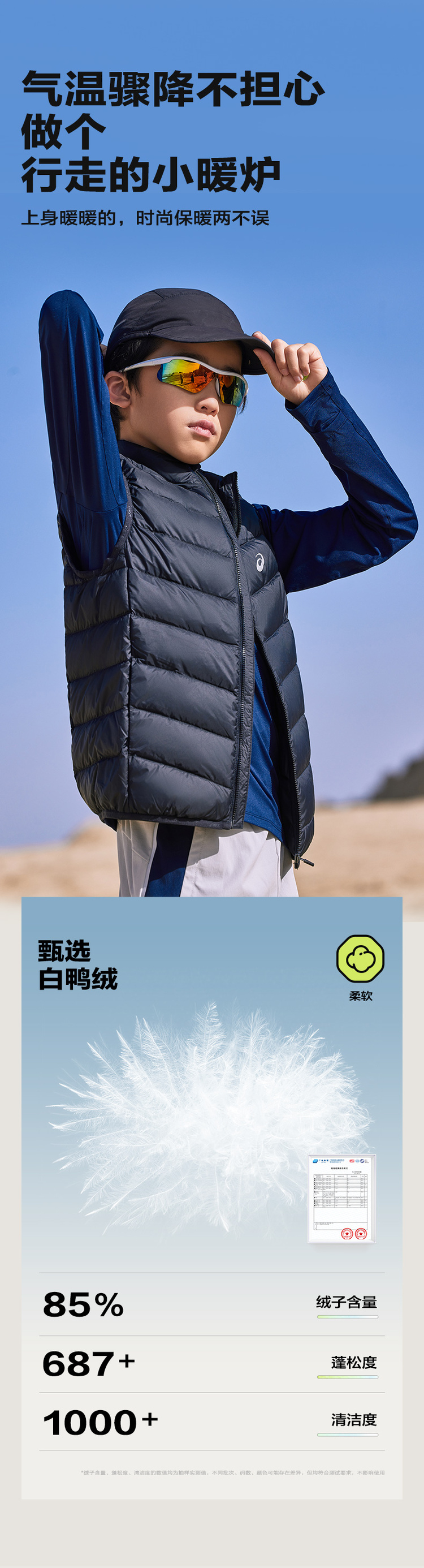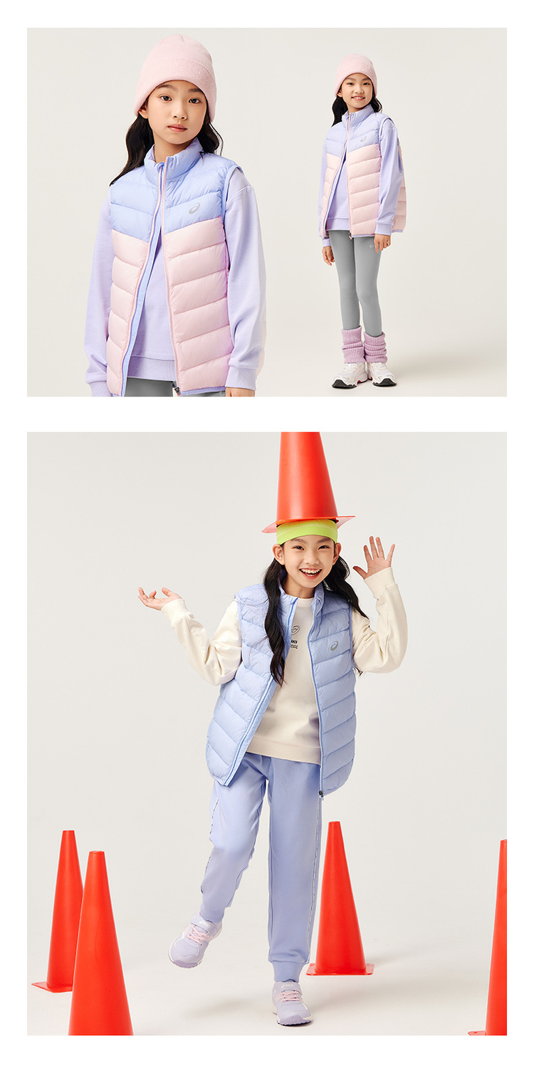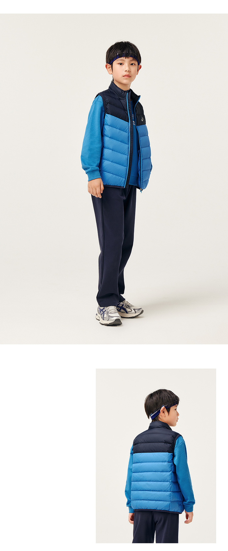 ASICS/亚瑟士童装中大童中性款百搭羽绒马甲2024时尚基础羽绒马甲