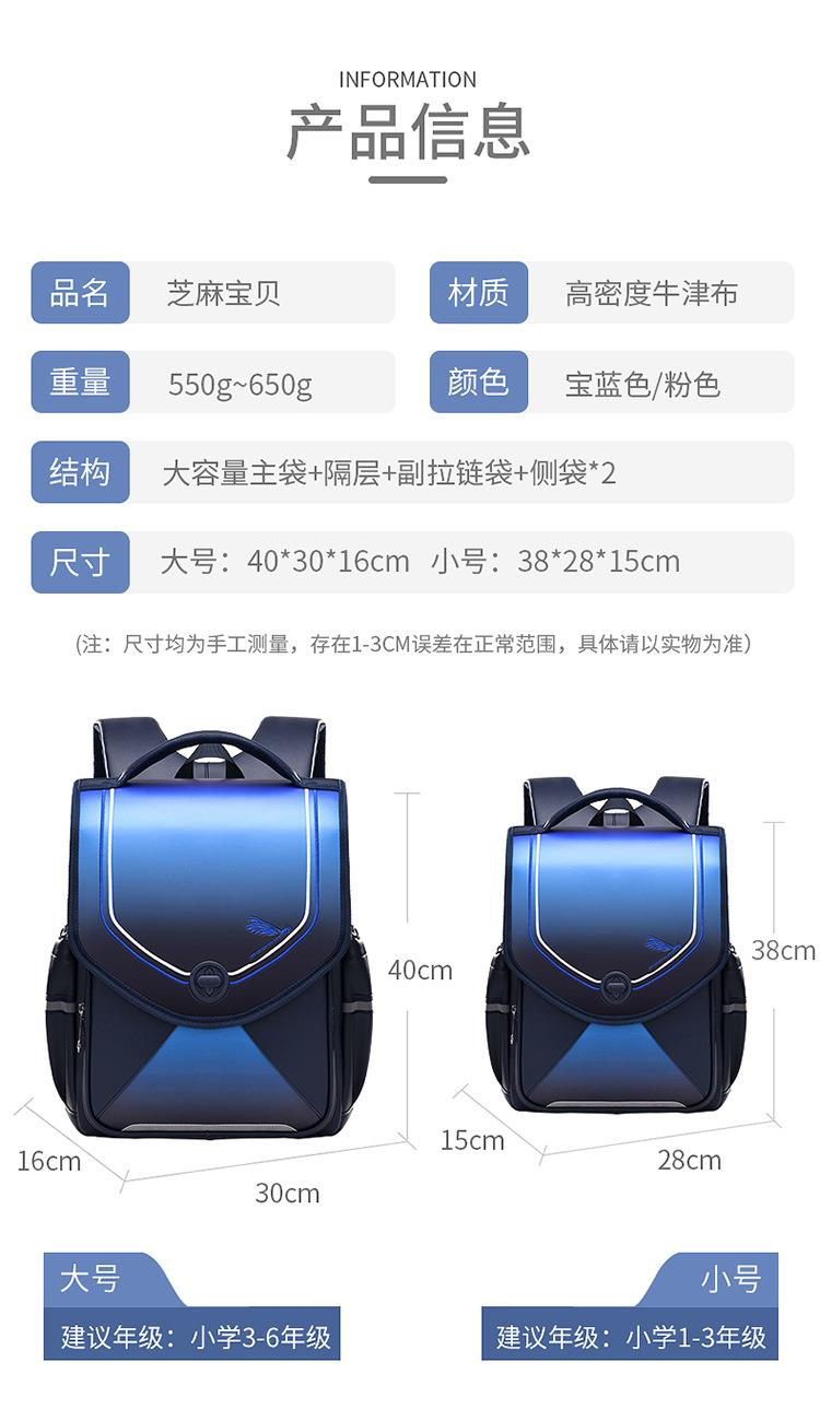 新款芝麻宝贝小学生翻盖书包大容量防泼水6-12岁太空包儿童双肩包