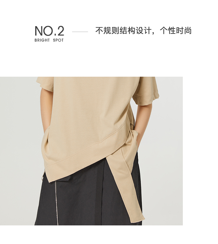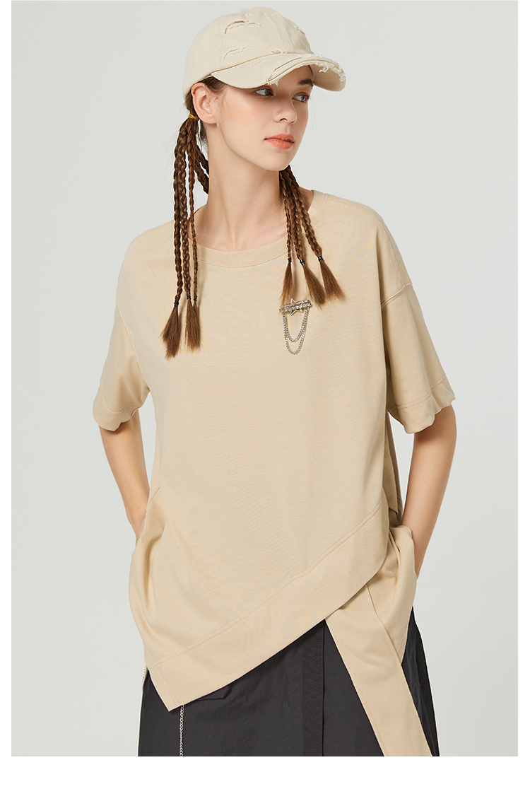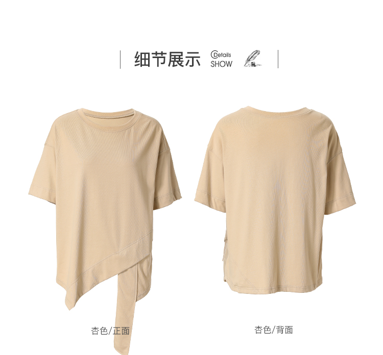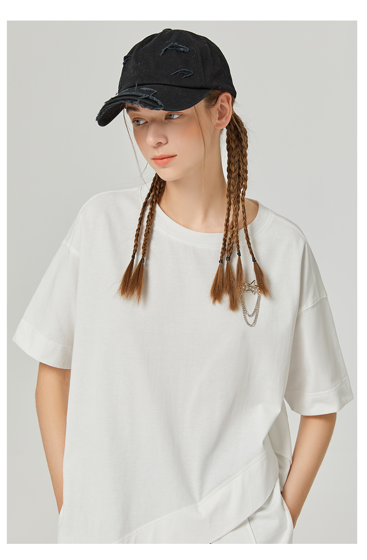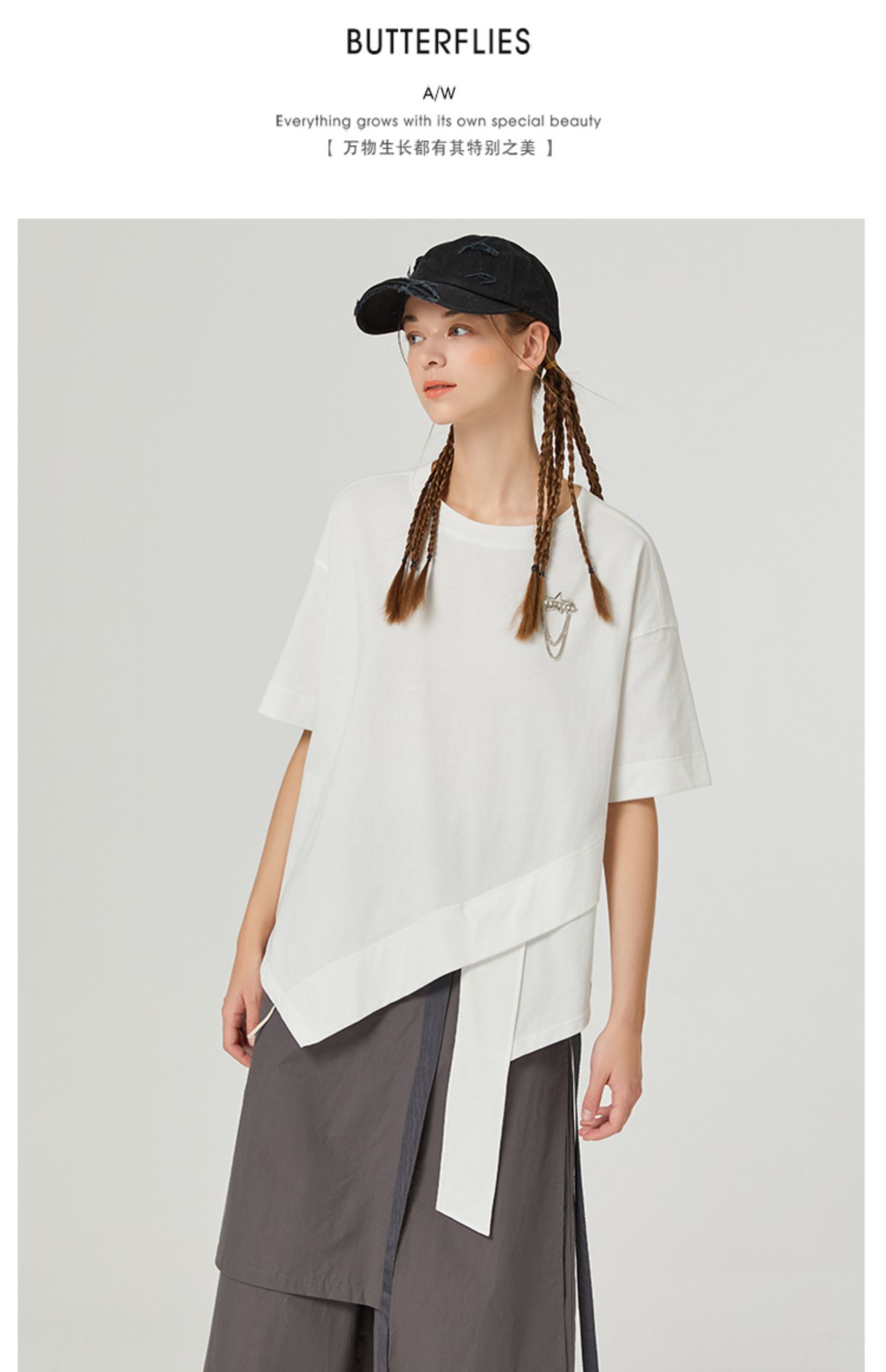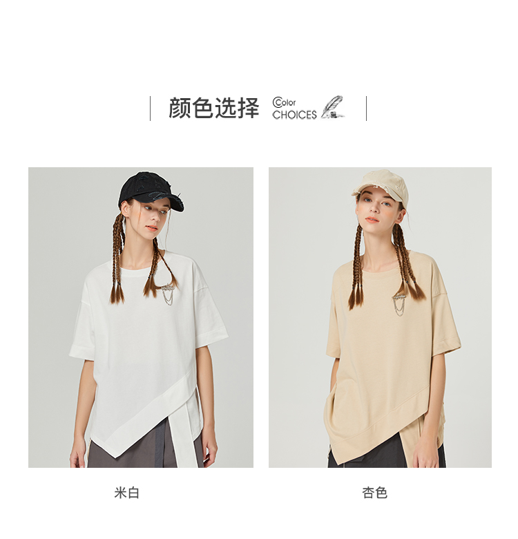 famecoco范可儿短袖女新款T恤夏季设计感不规则纯棉宽松上衣F223BB011