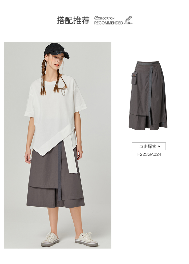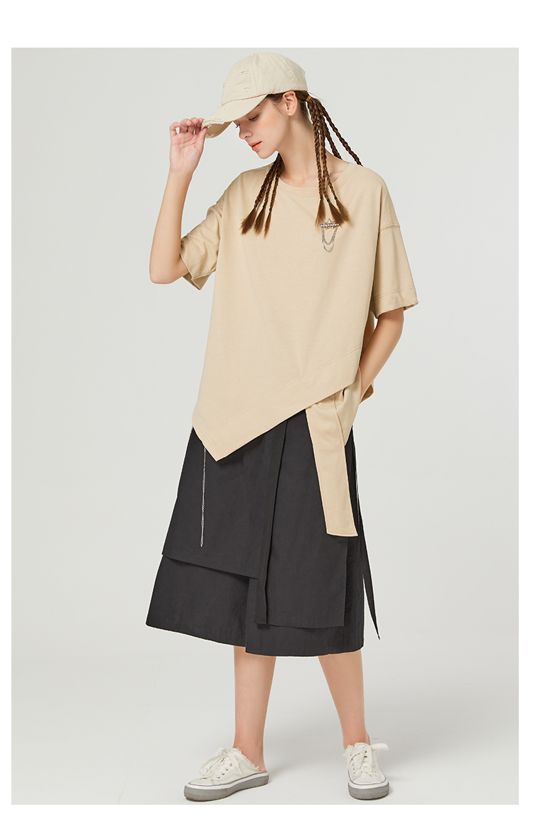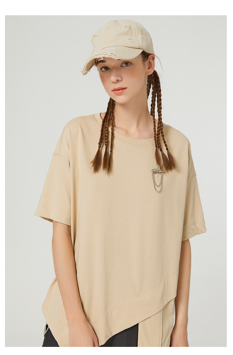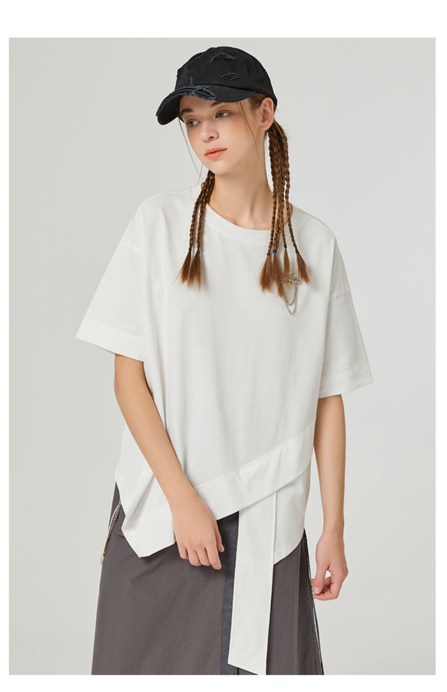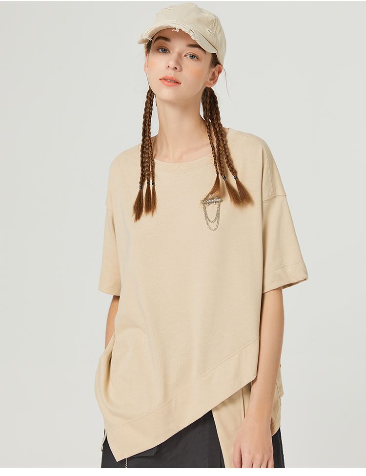 famecoco范可儿短袖女新款T恤夏季设计感不规则纯棉宽松上衣F223BB011