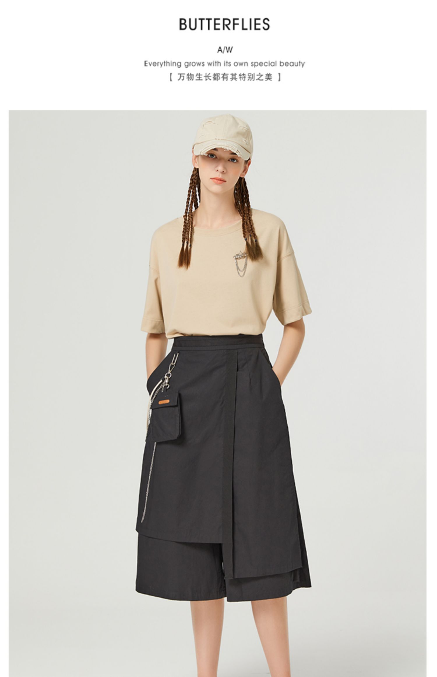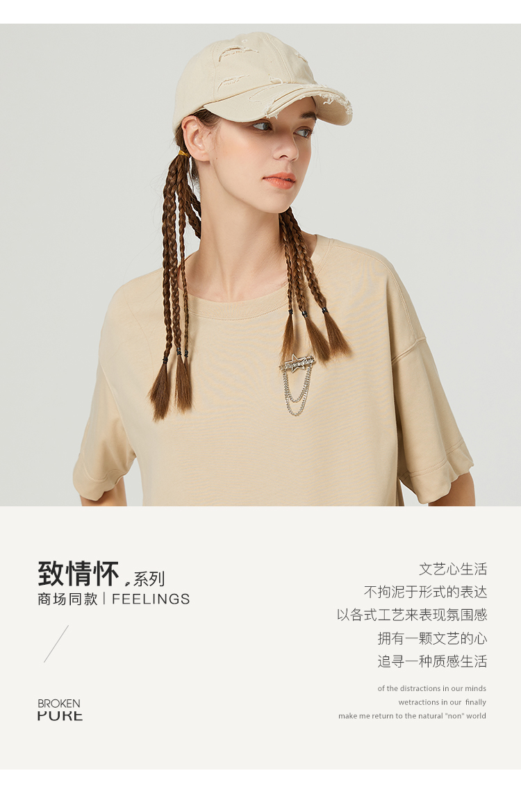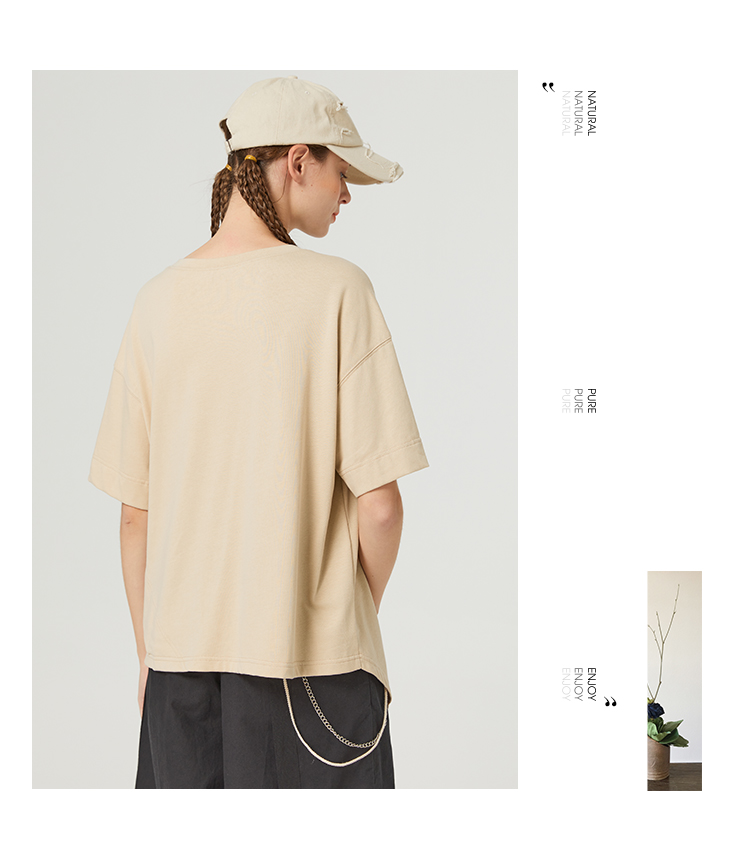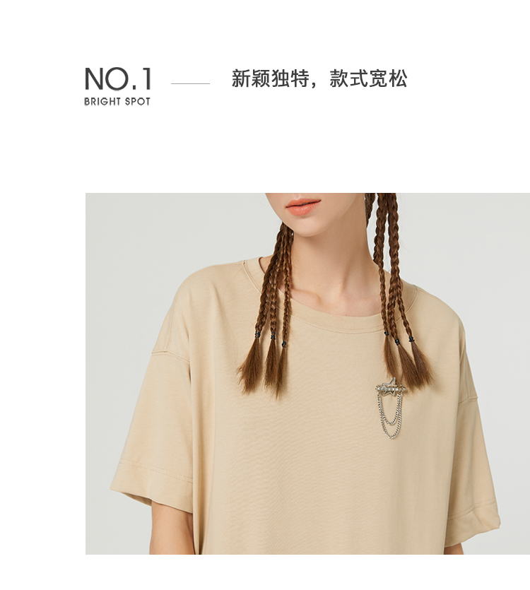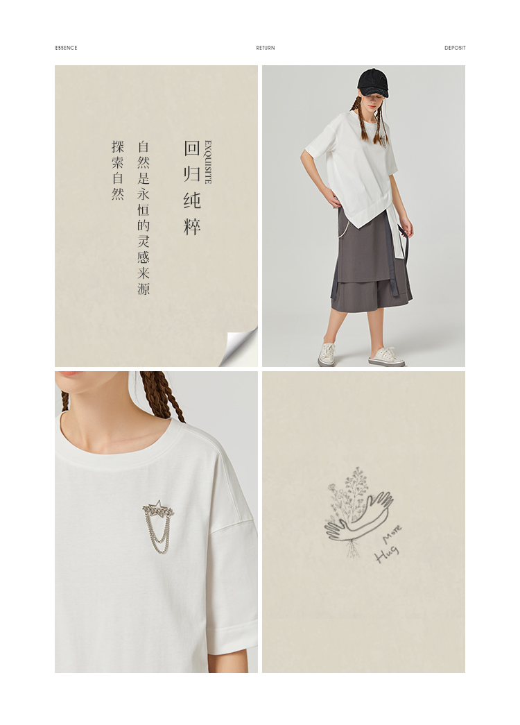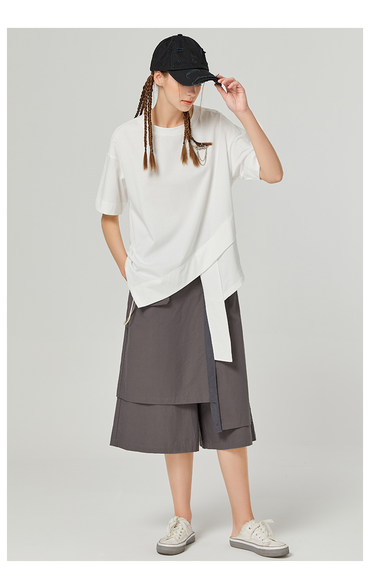 famecoco范可儿短袖女新款T恤夏季设计感不规则纯棉宽松上衣F223BB011