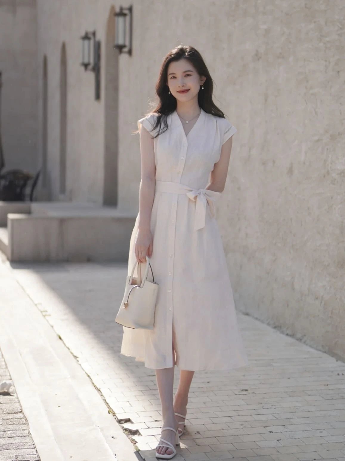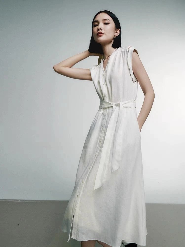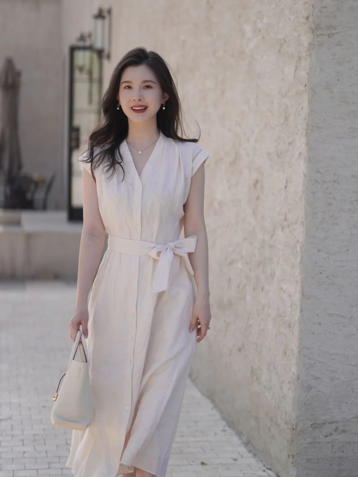 高端系全线定制⚠️Loro*Piana同源代工厂订单⚠️大自然的馈赠!进口亚麻棉连衣裙❗️老钱气质松弛感!
