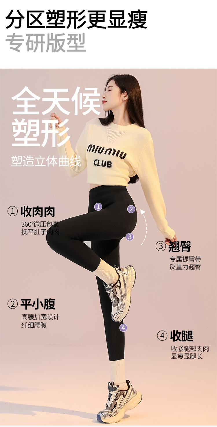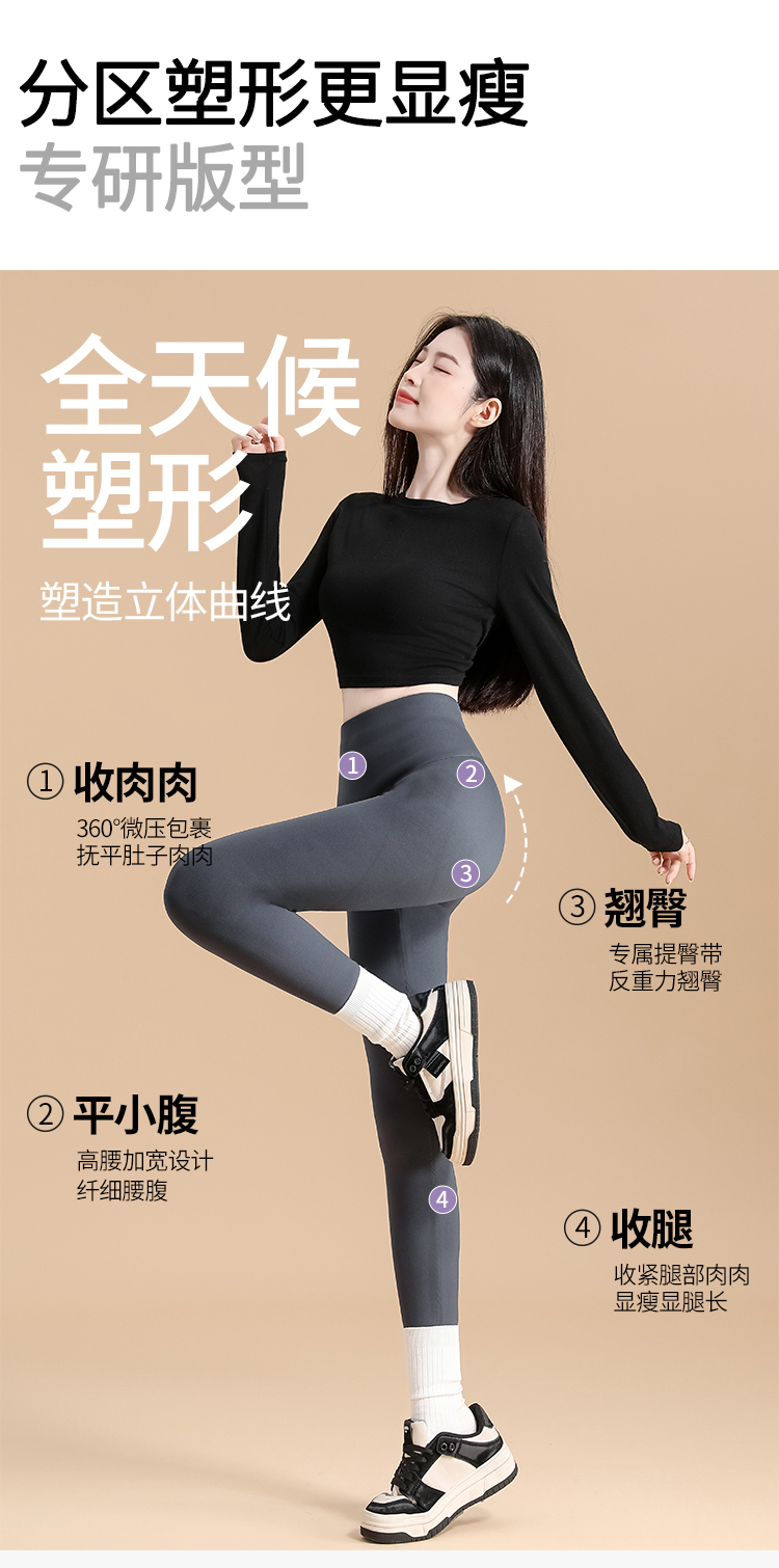 【锦意丝--加绒收胯提臀轻塑裤】创新收胯带提臀带设计 360°微压包裹藏肉 超高腰加宽设计平腹 反重力翘臀 无尴尬线抗起球 收紧腿部显瘦显腿长