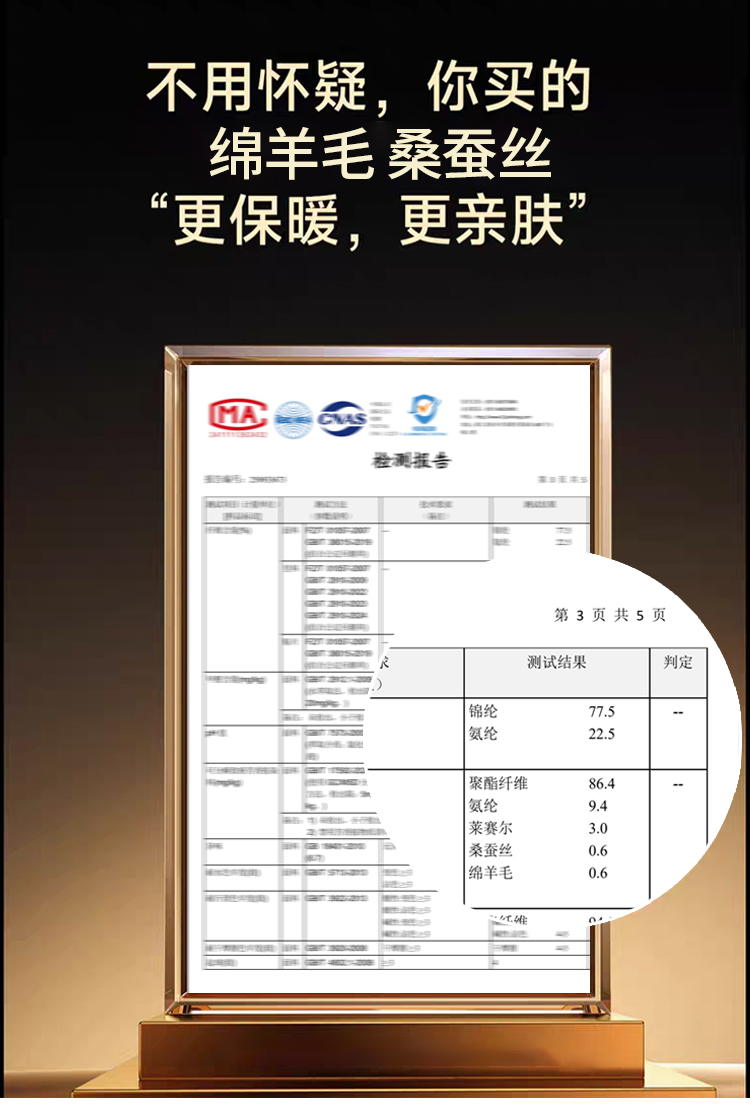 【66268款400g】面料:锦纶78%, 氨纶22%、里层:聚酯纤维85.6%,氨纶9%,莱赛尔4%,桑蚕丝0.7%,绵羊毛0.7%、贴片:聚酯纤维94%,氨纶6%