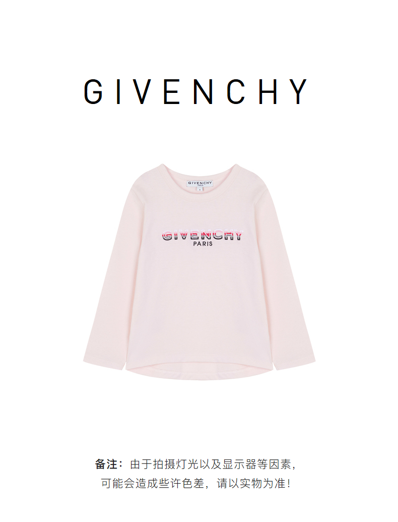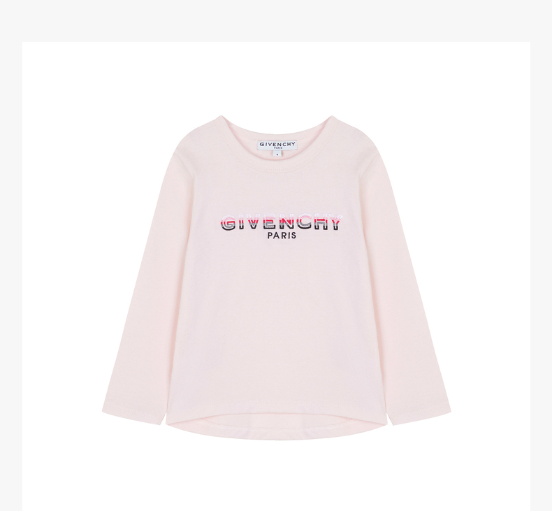 GIVENCHY 纪梵希 奢侈品童装 女童粉色棉质LOGO印花长袖T恤 H15215