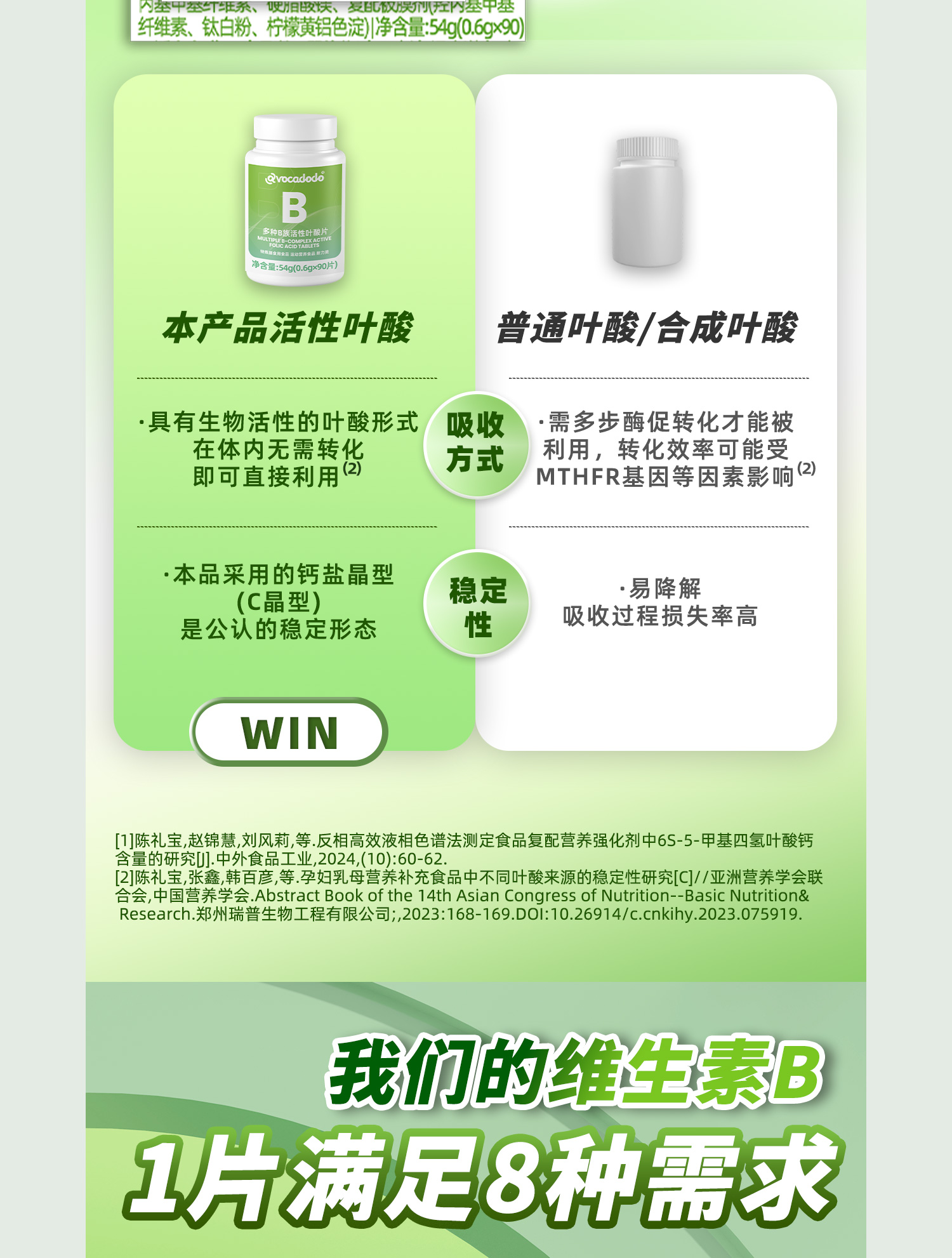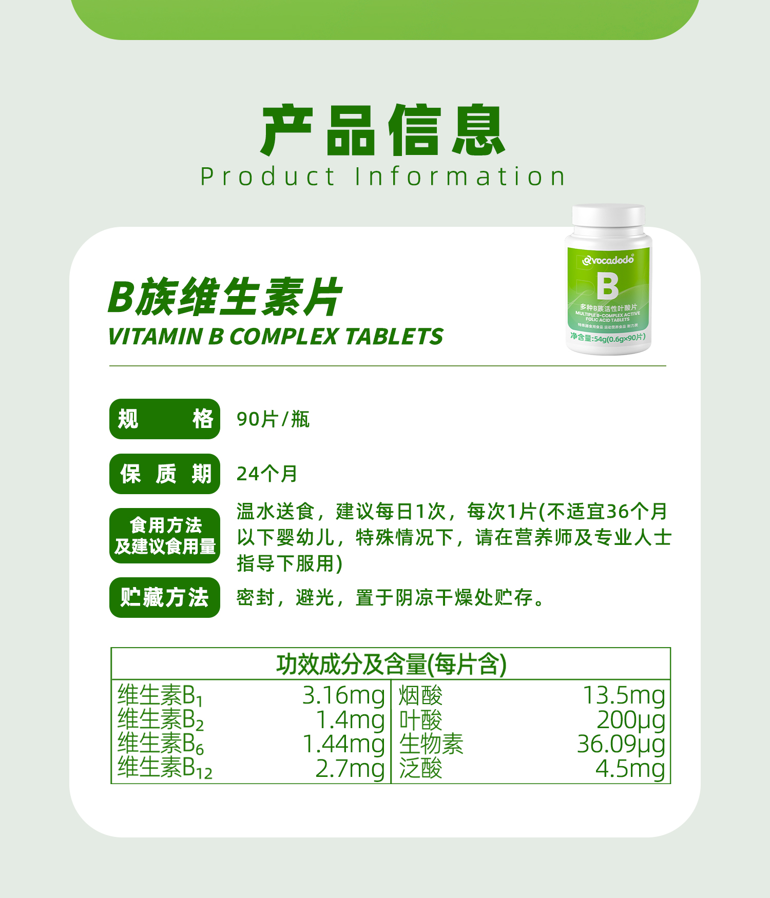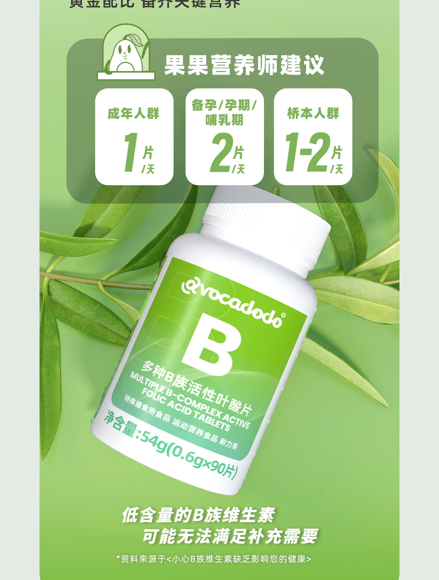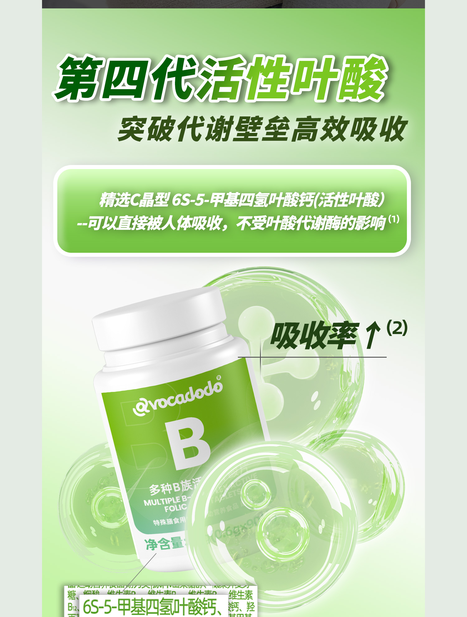 复合维生素B族孕活性叶酸B1b2b6b12备妇牛油果果桥本甲Avocadodo