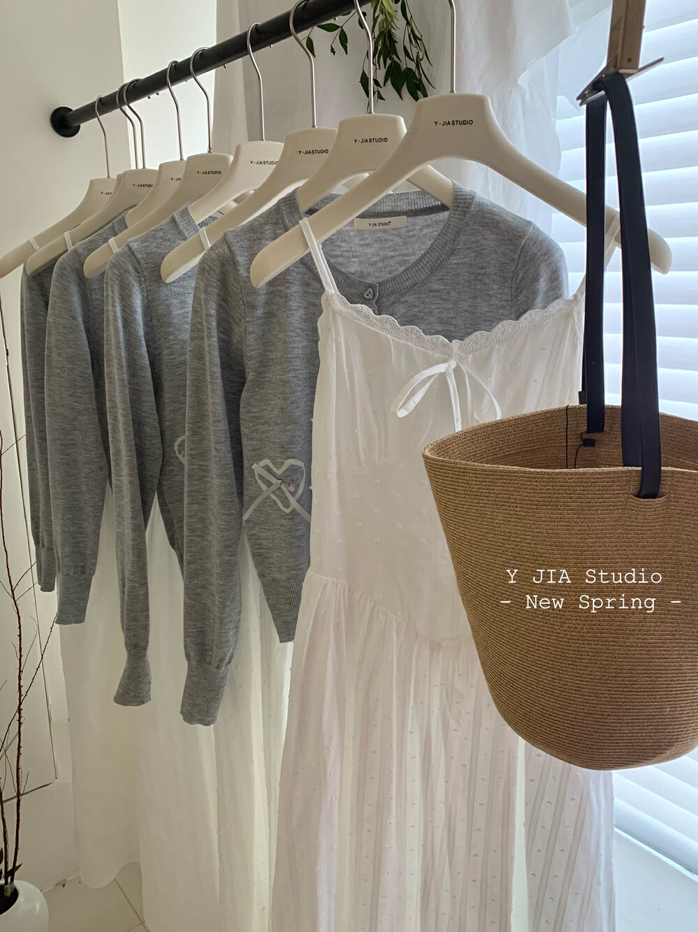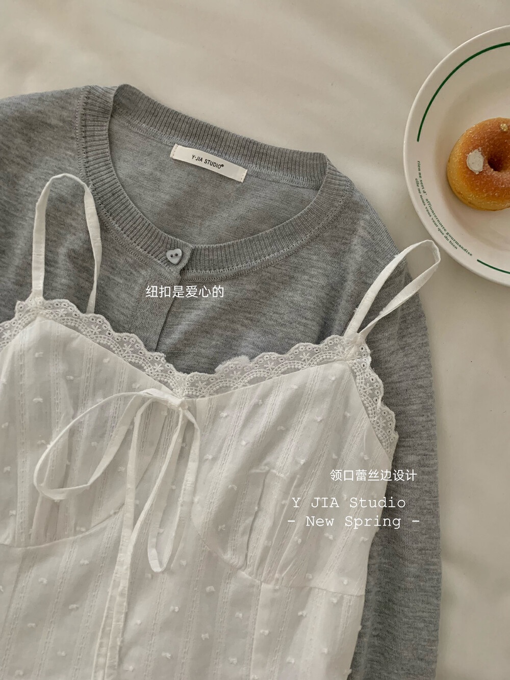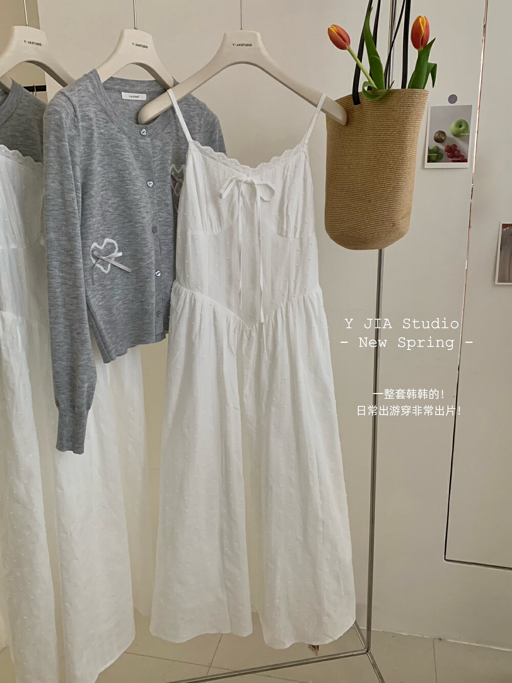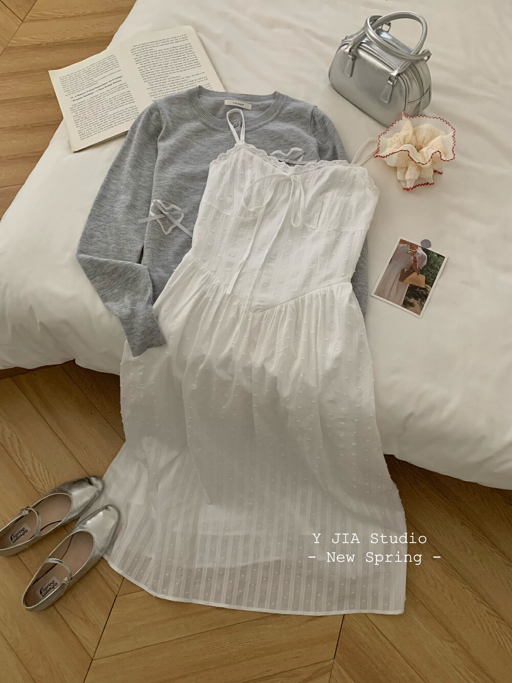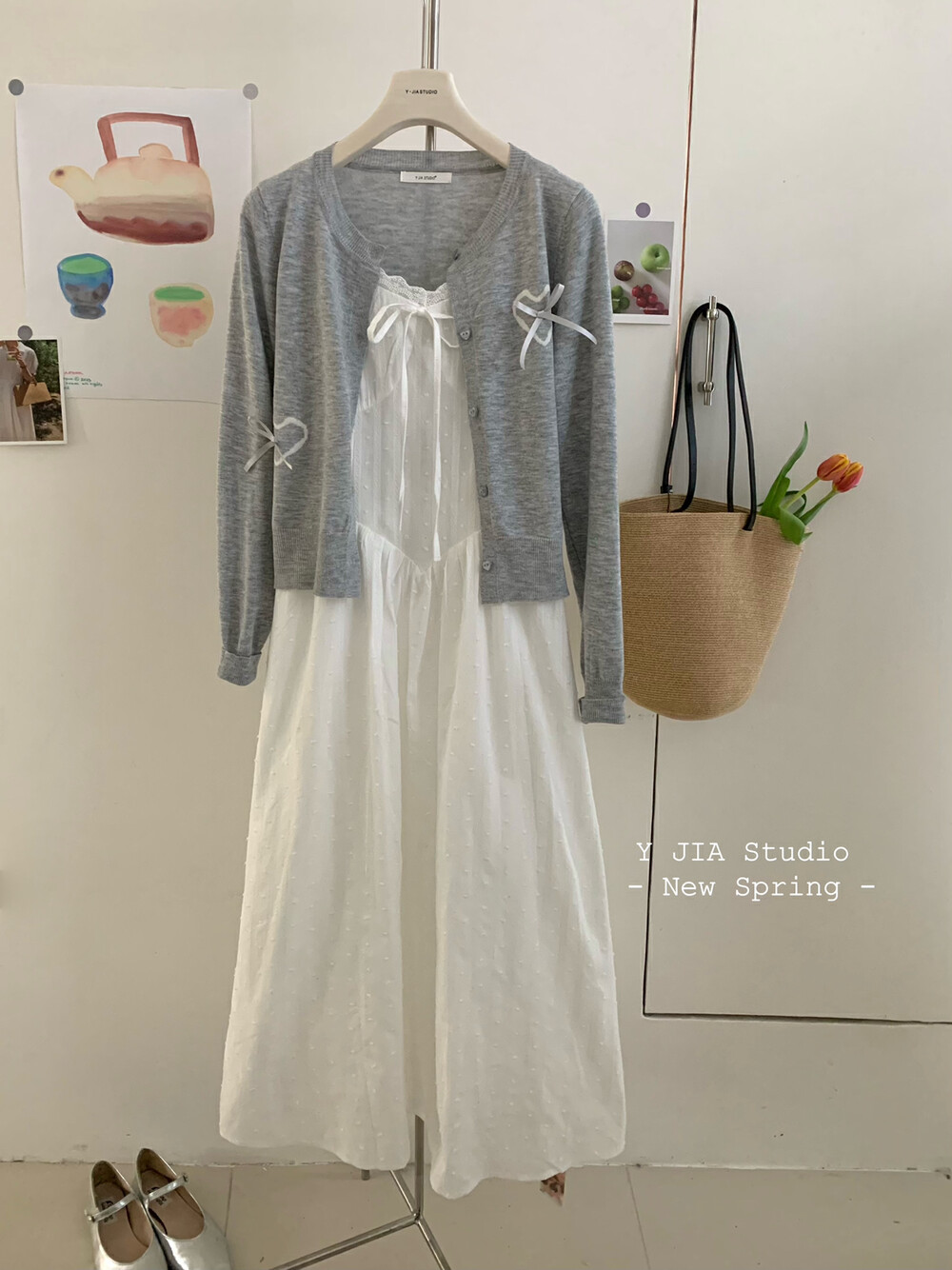 【GZ】无忧购白月光气质淑女吊带连衣裙+爱心蝴蝶结针织开衫套装3303-5(截单后7天发货)