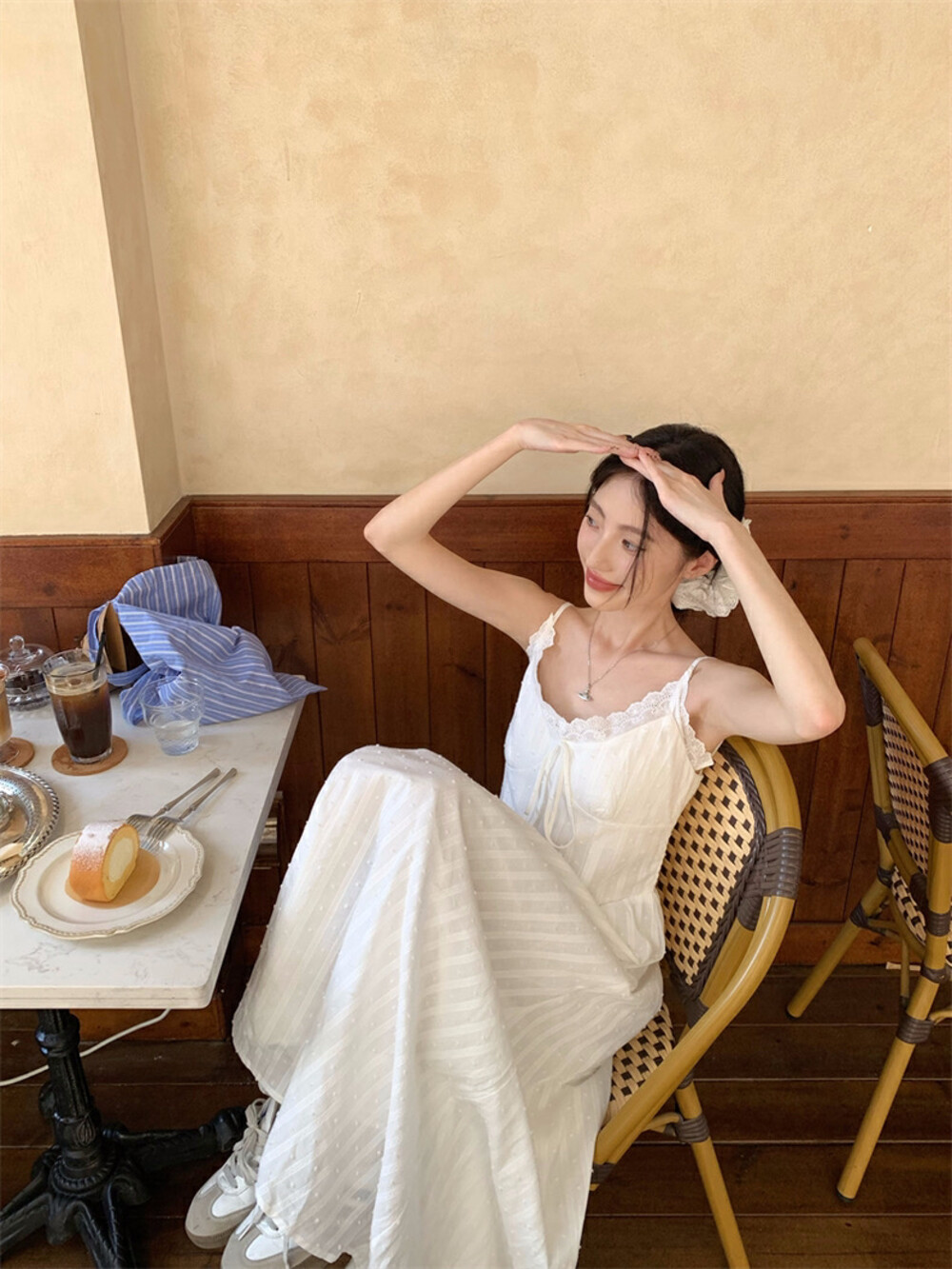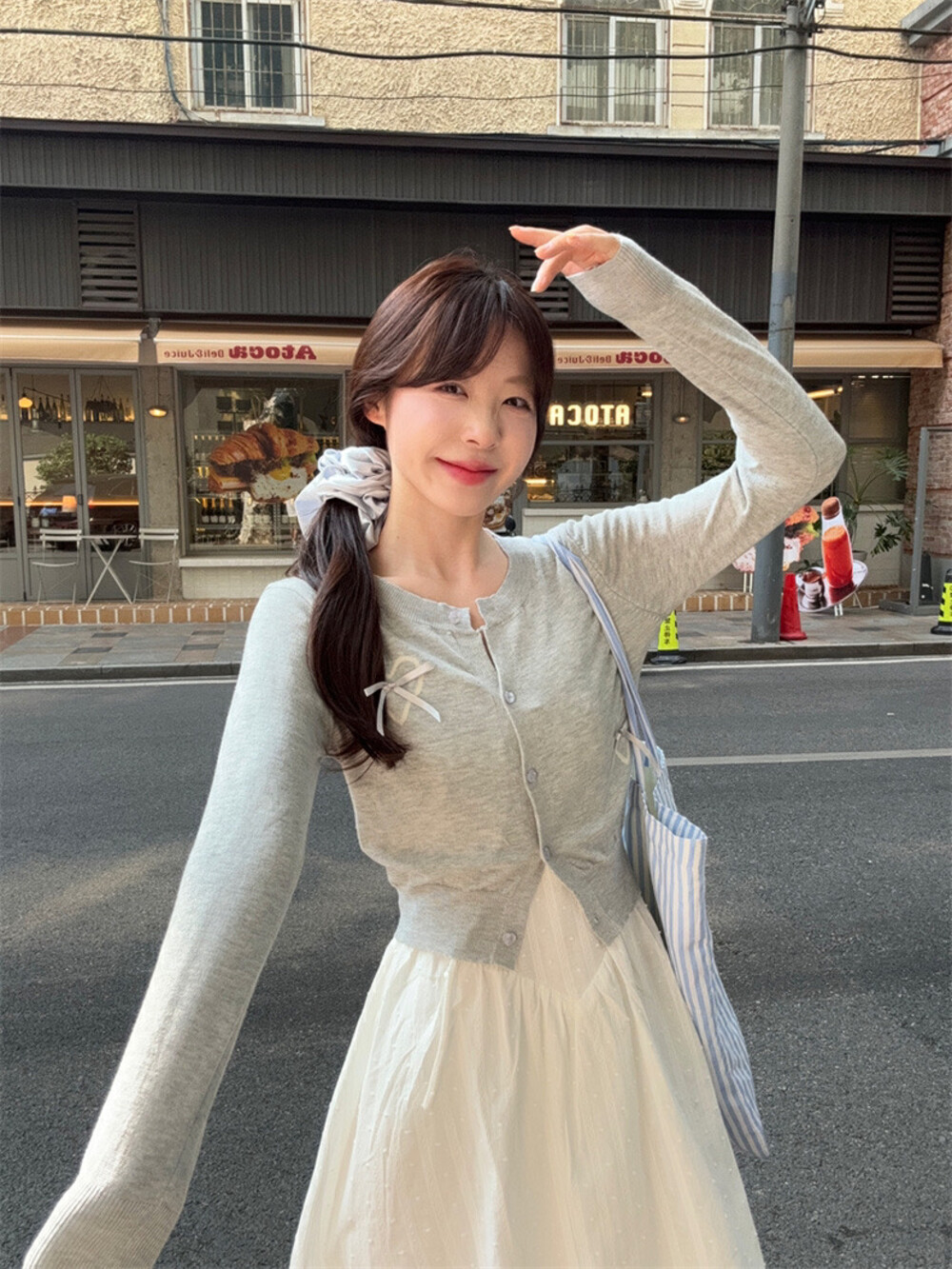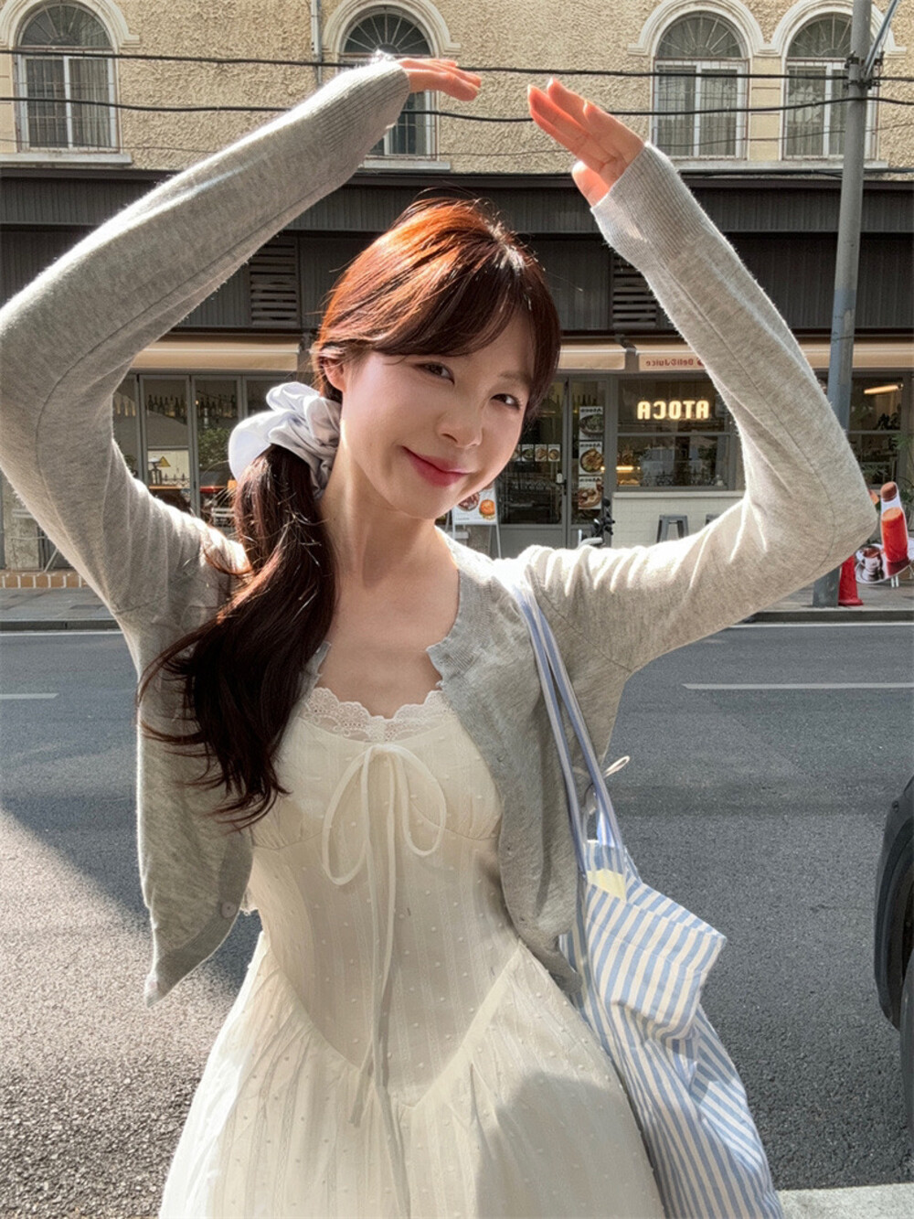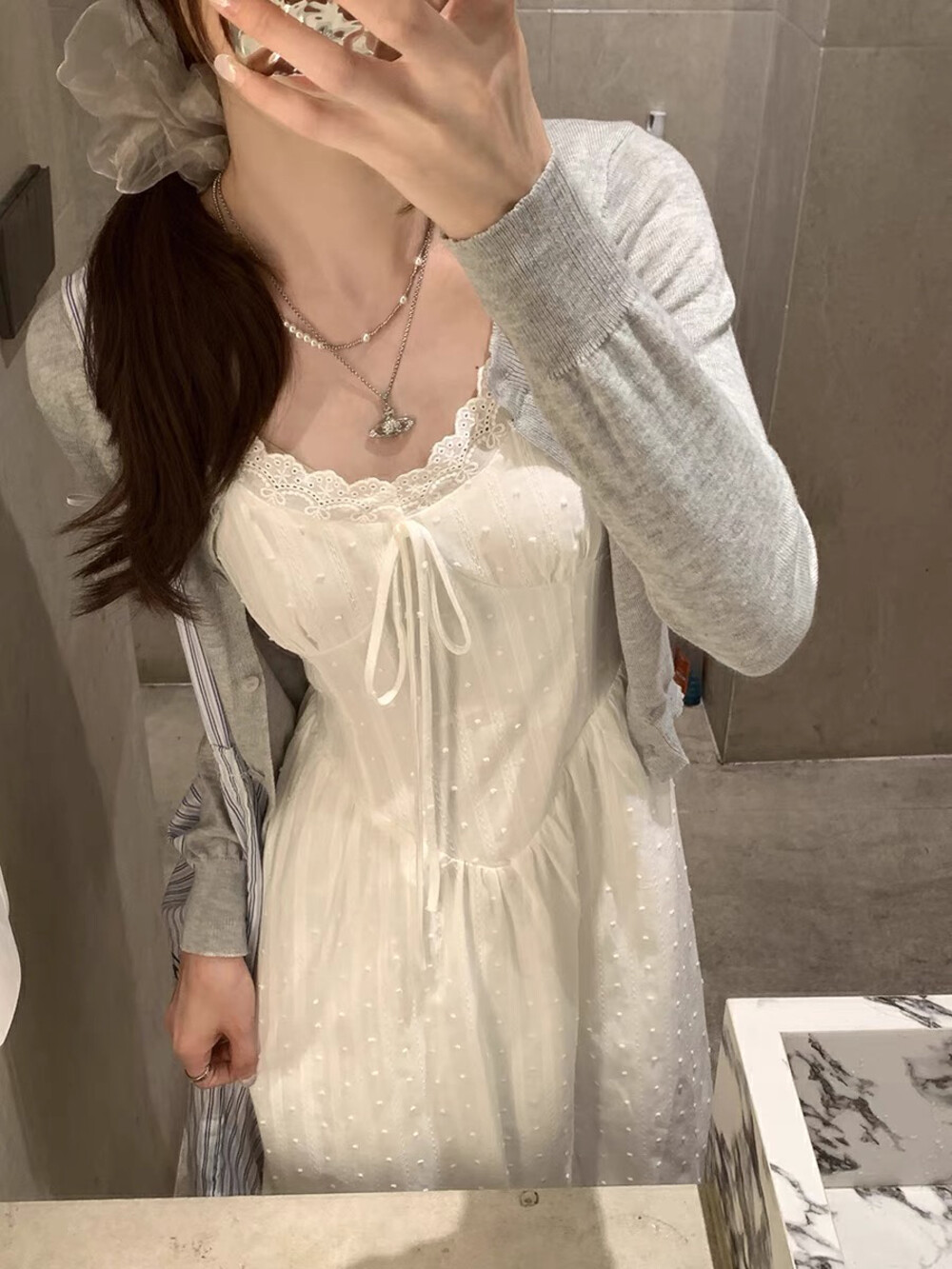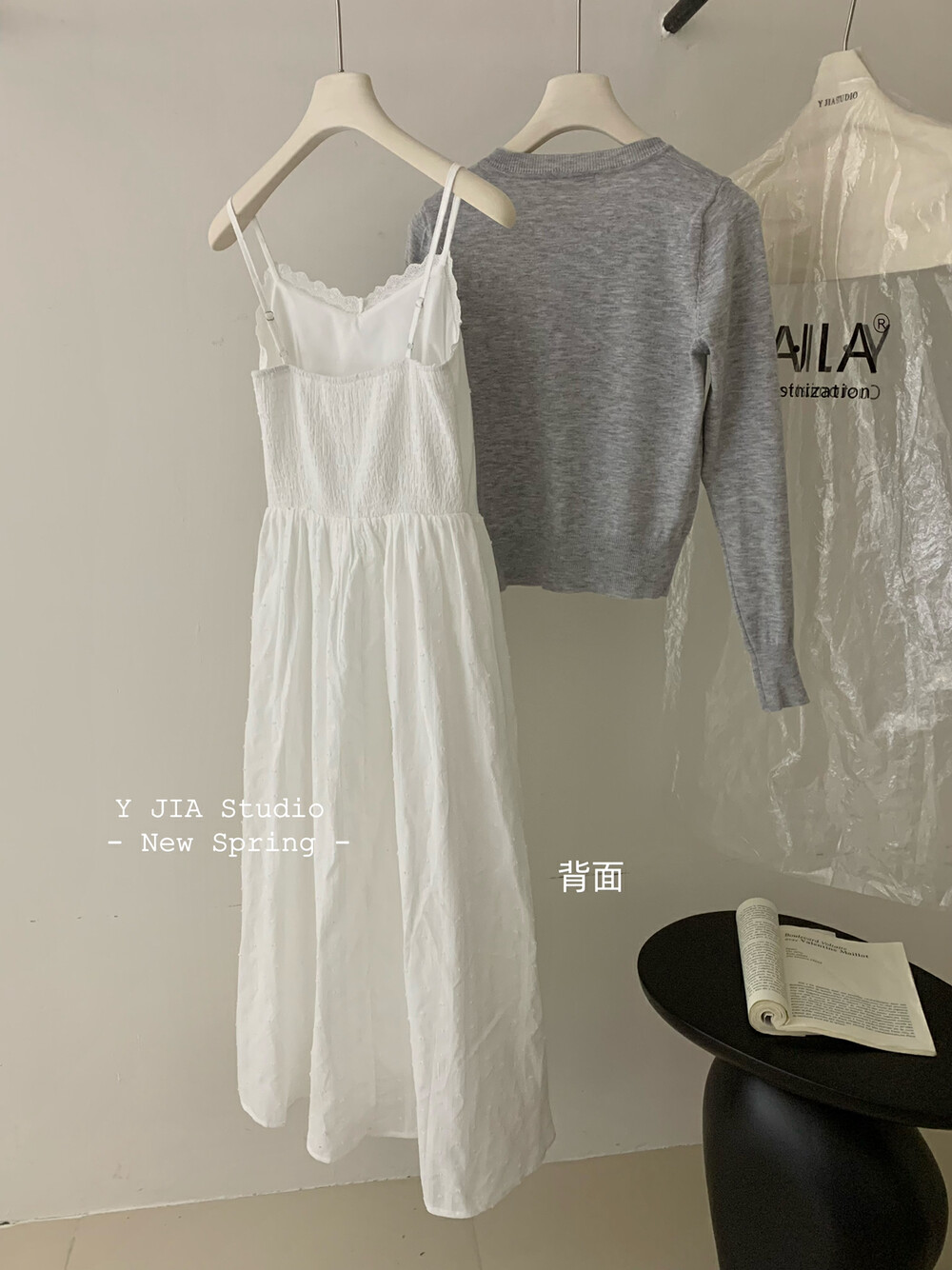 【GZ】无忧购白月光气质淑女吊带连衣裙+爱心蝴蝶结针织开衫套装3303-5(截单后7天发货)