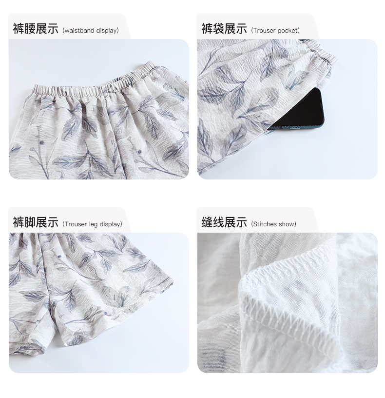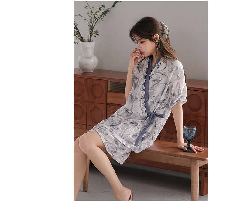 可人儿夏季泡泡绵睡衣女夏天日系和服短袖短裤可外穿家居服三件套