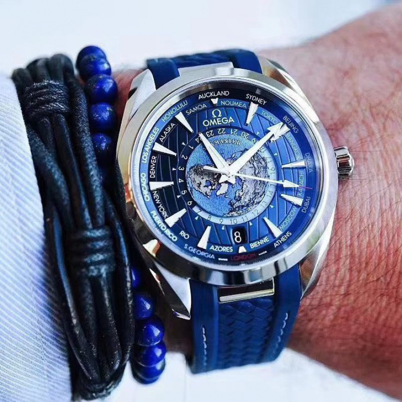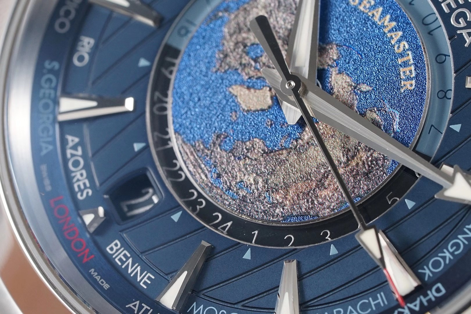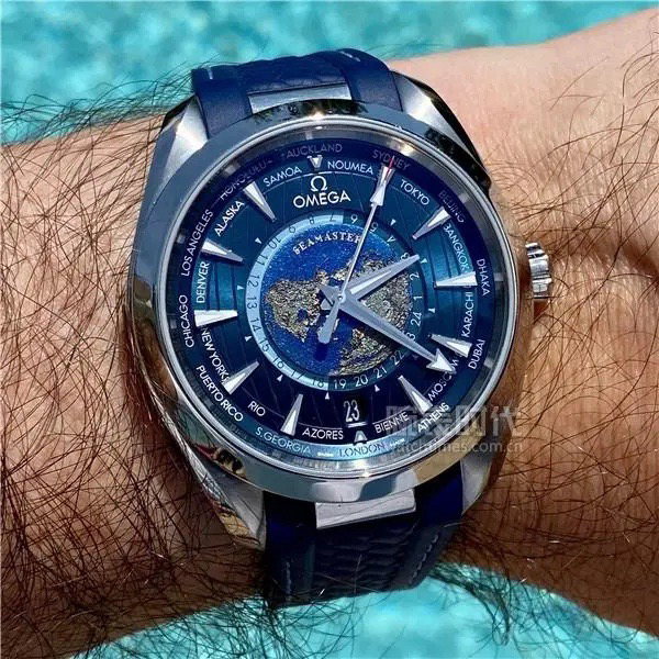 VS新品火热预售中!海马43MM Aqua Terra 世界时腕表。一款可以戴着环游世界的世界时腕表,激光烧蚀蓝色海洋,陆地浮雕勾勒,24小时hesalite水晶环。辽阔世界尽在掌握