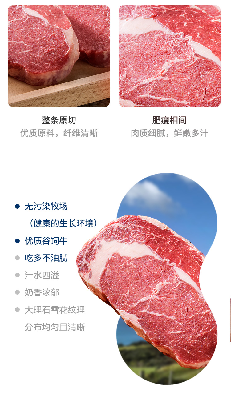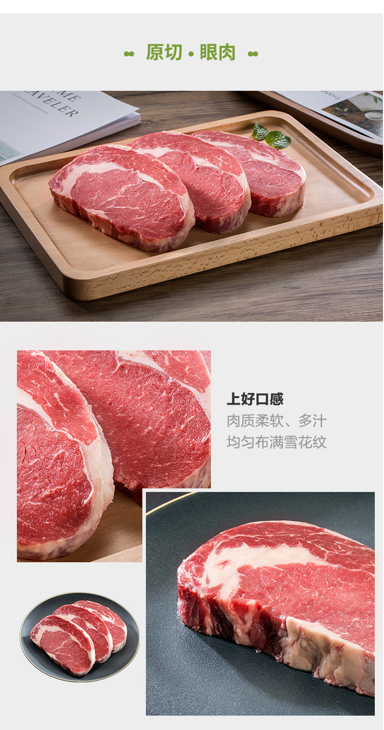 菲力牛排牛眼肉金钱腱阿根廷进口安格斯谷饲牛肉饼原切牛排