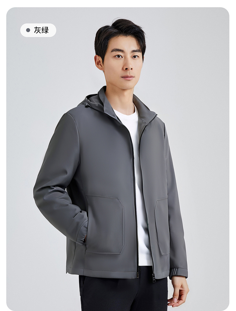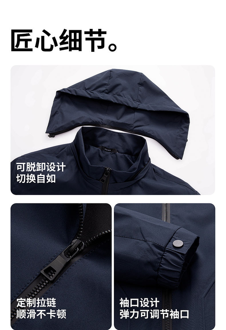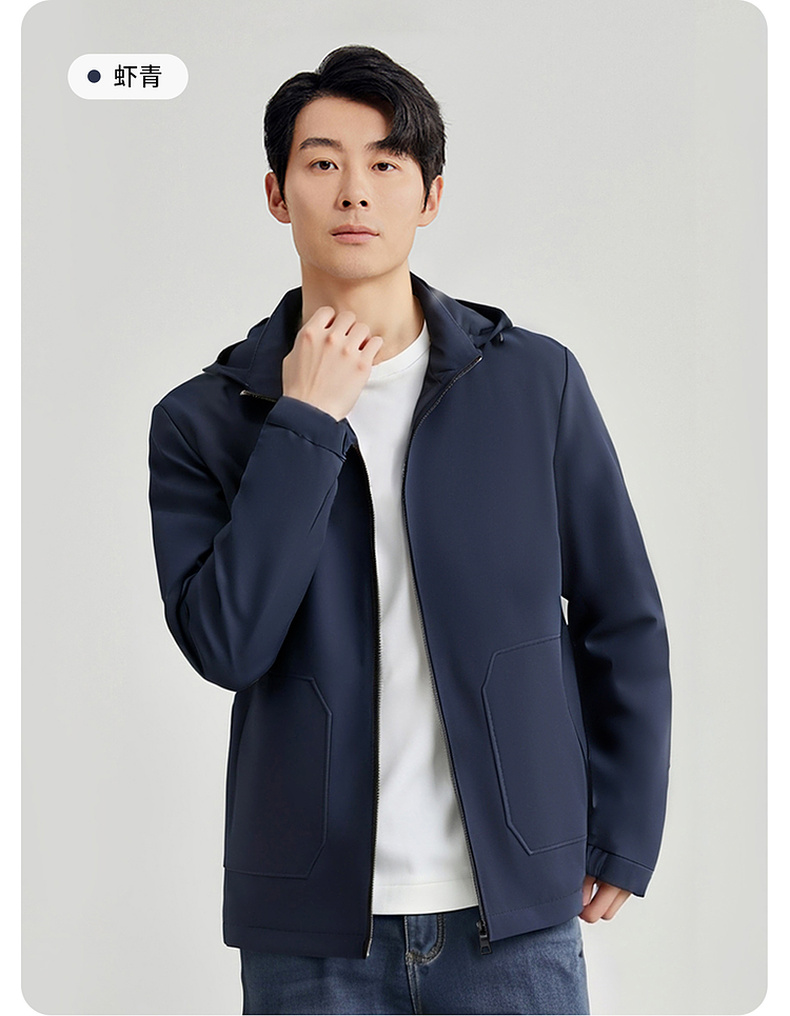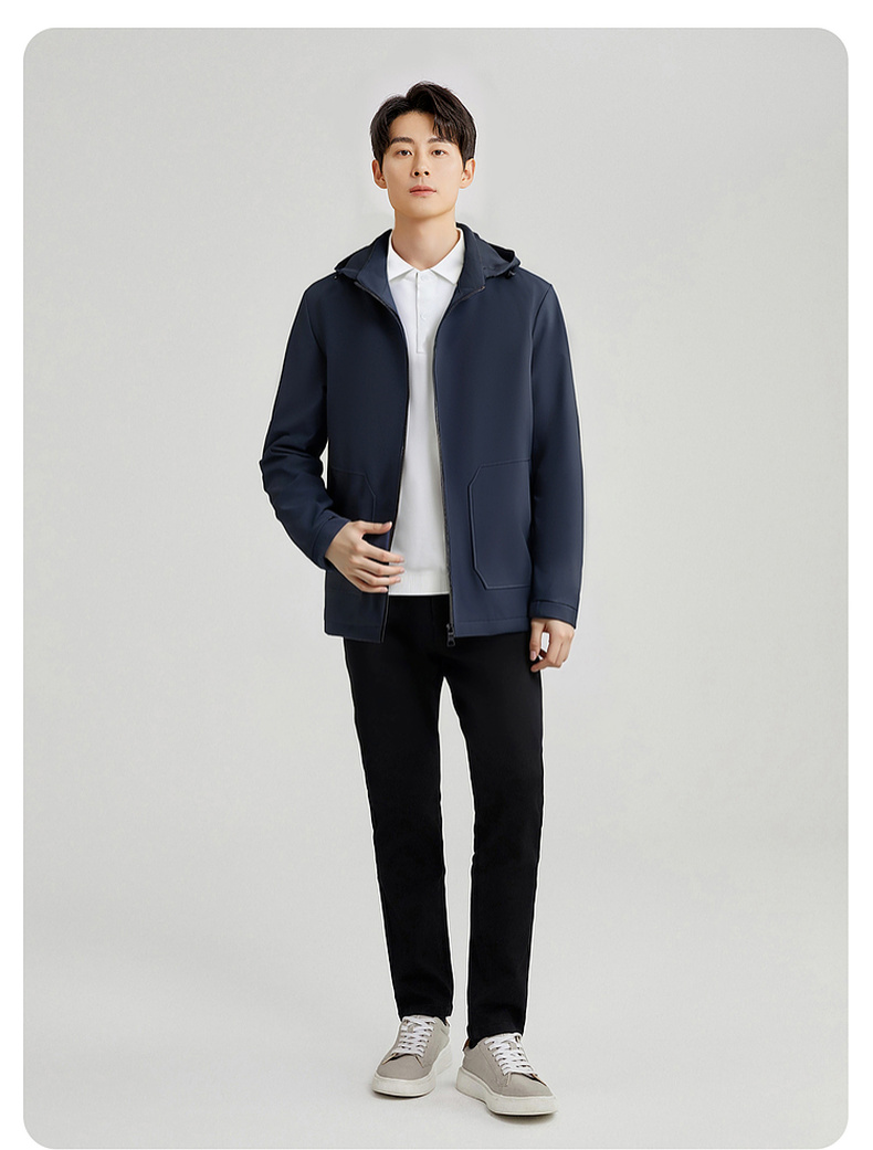 圣得西男士可拆卸帽短款风衣式外套2025春新款中青年商务休闲夹克