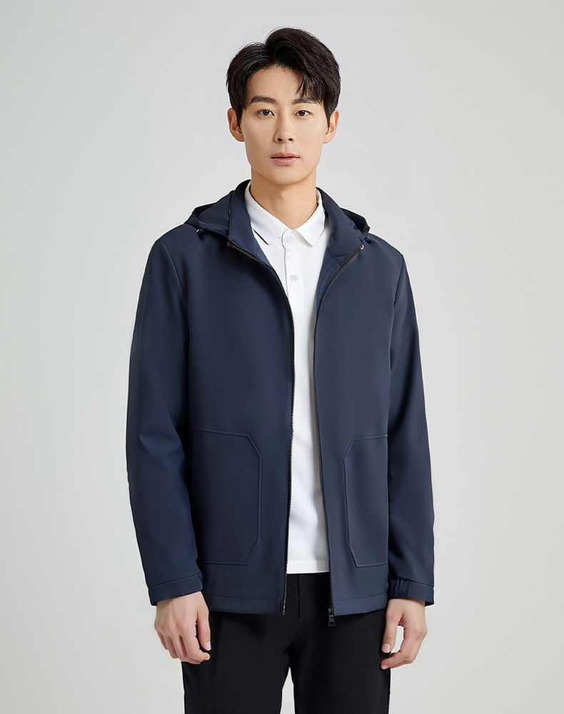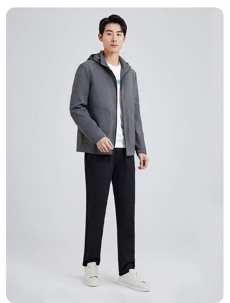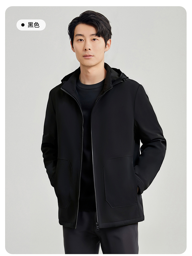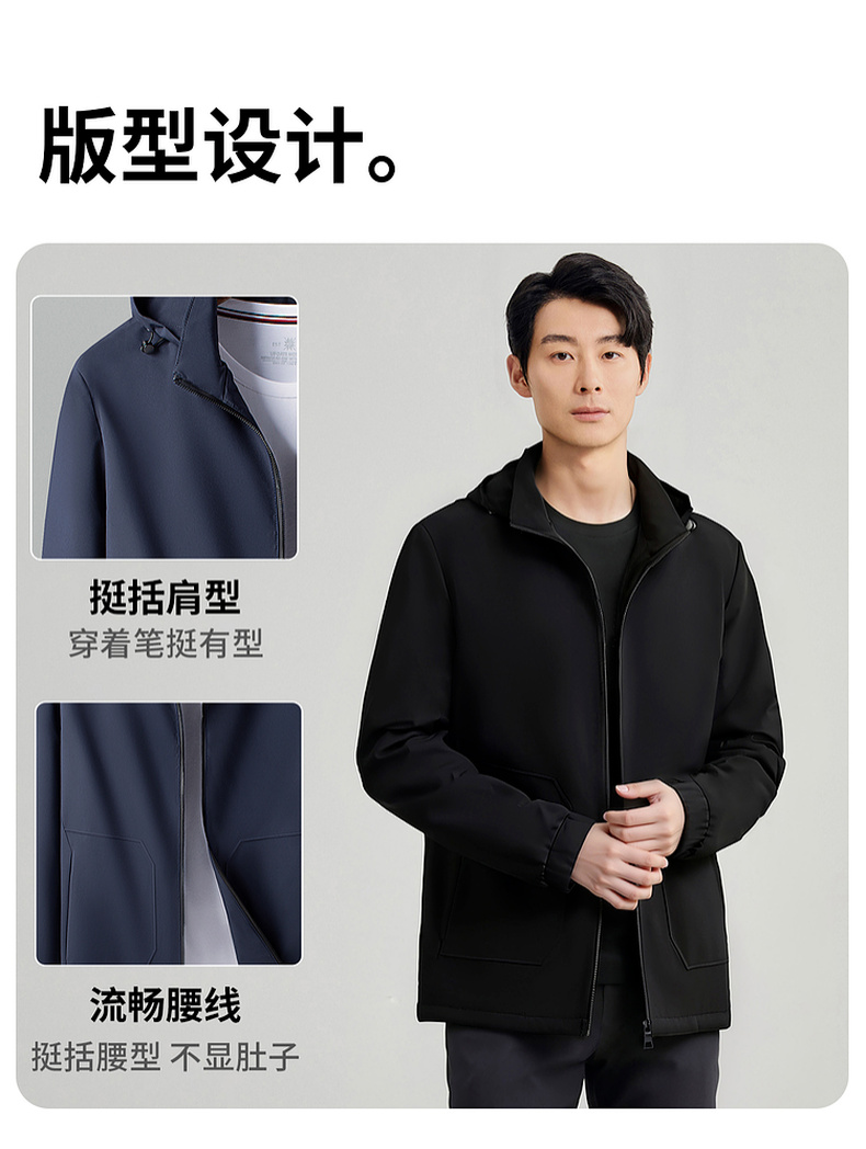 圣得西男士可拆卸帽短款风衣式外套2025春新款中青年商务休闲夹克