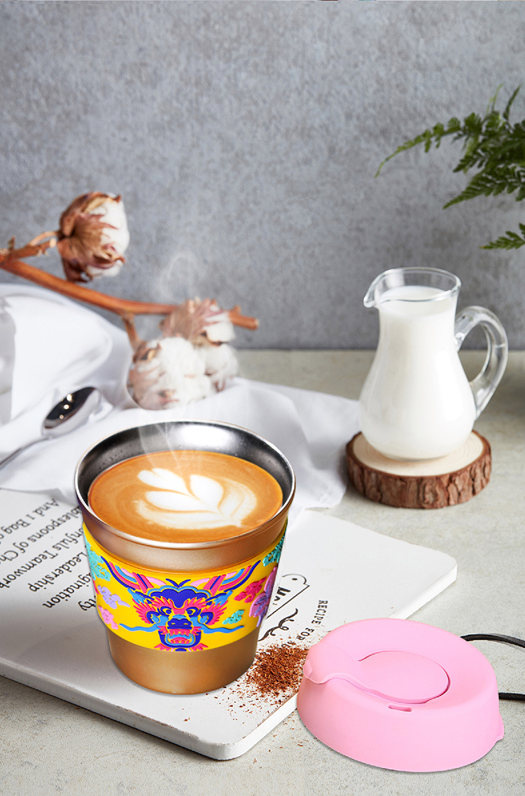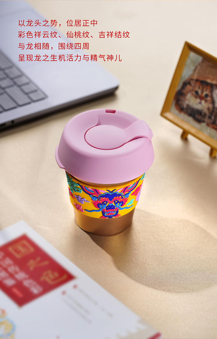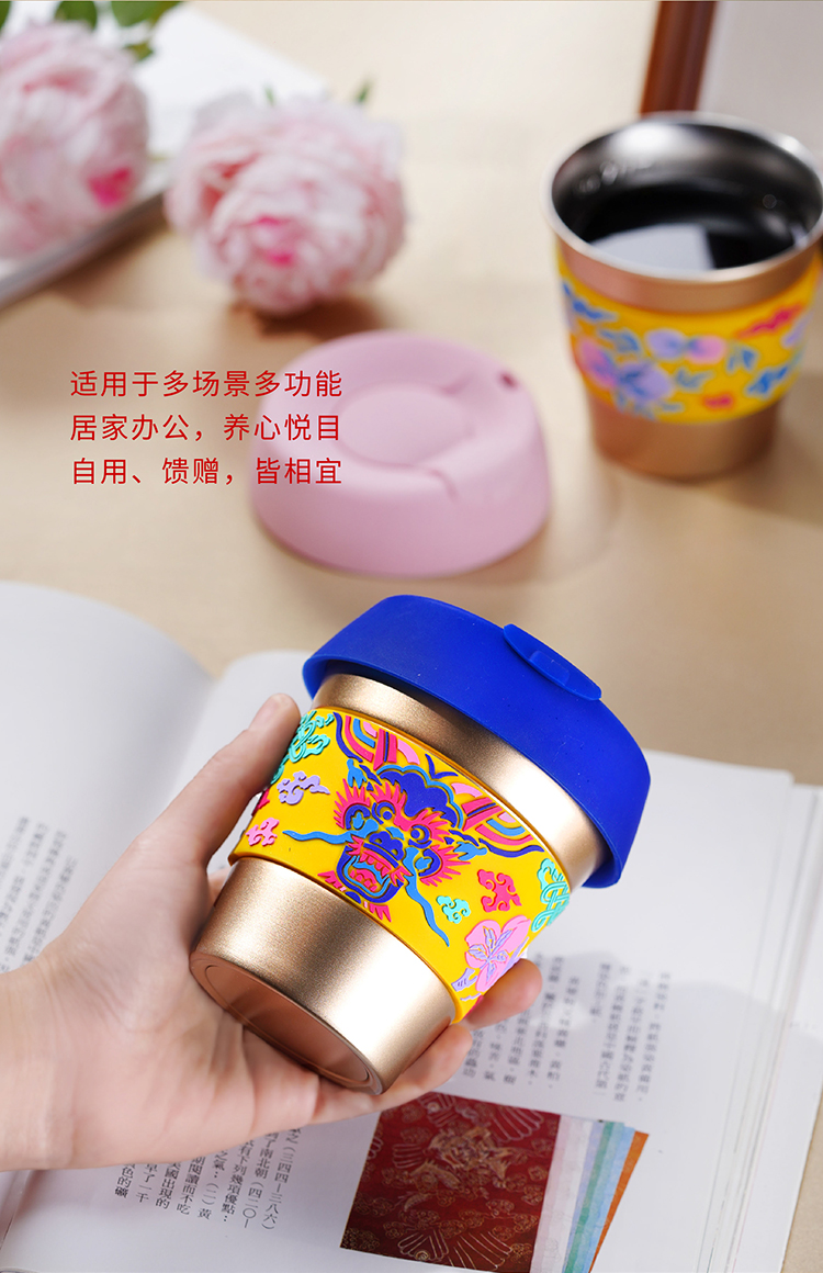 宫廷随行杯-黄缎牡丹凤蝶随行杯