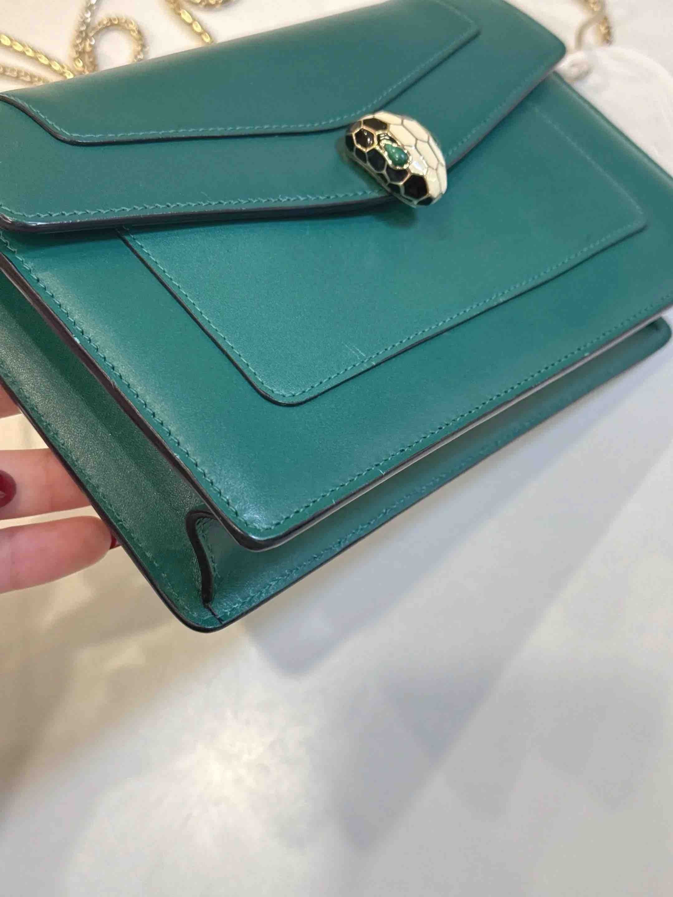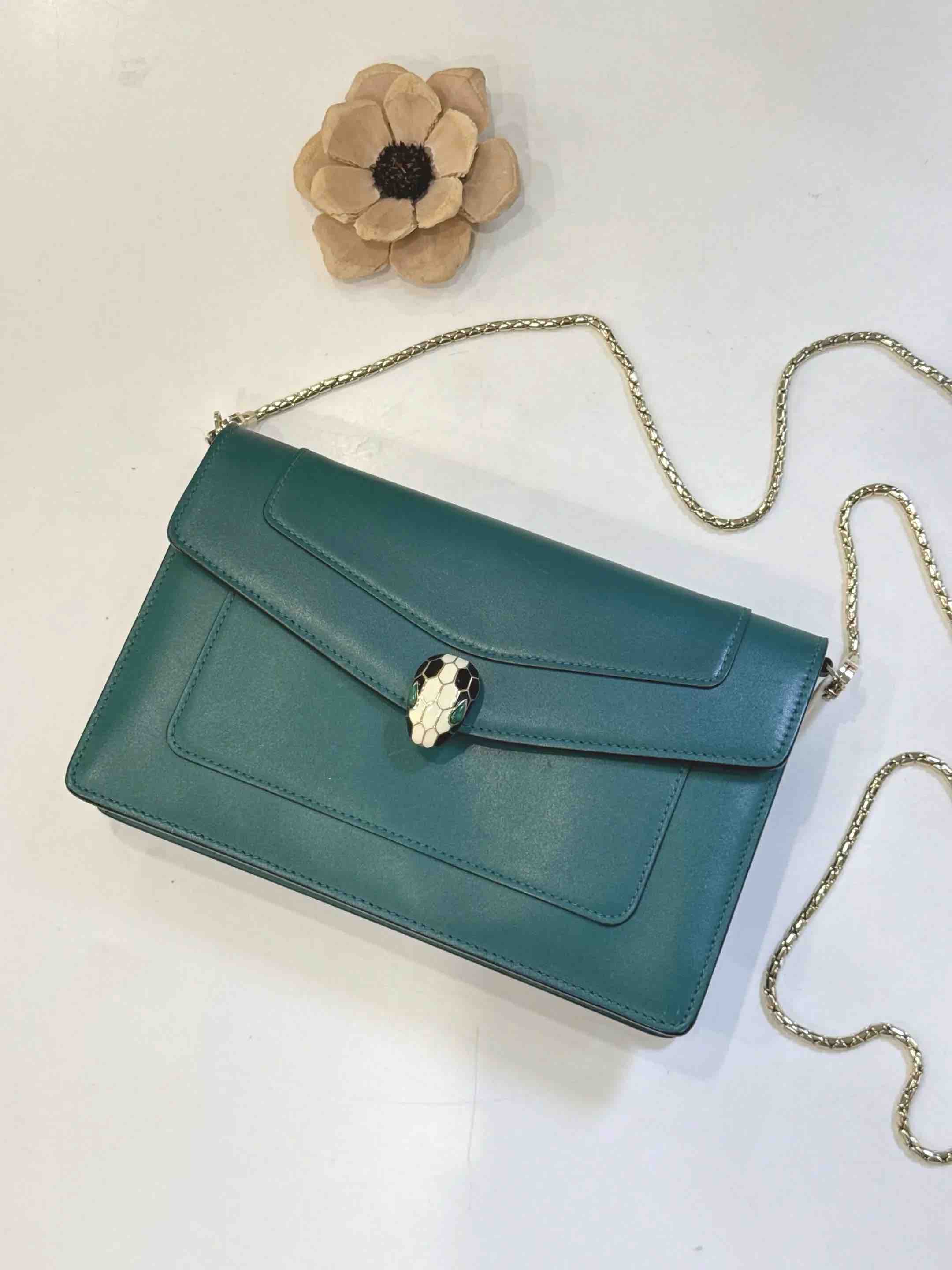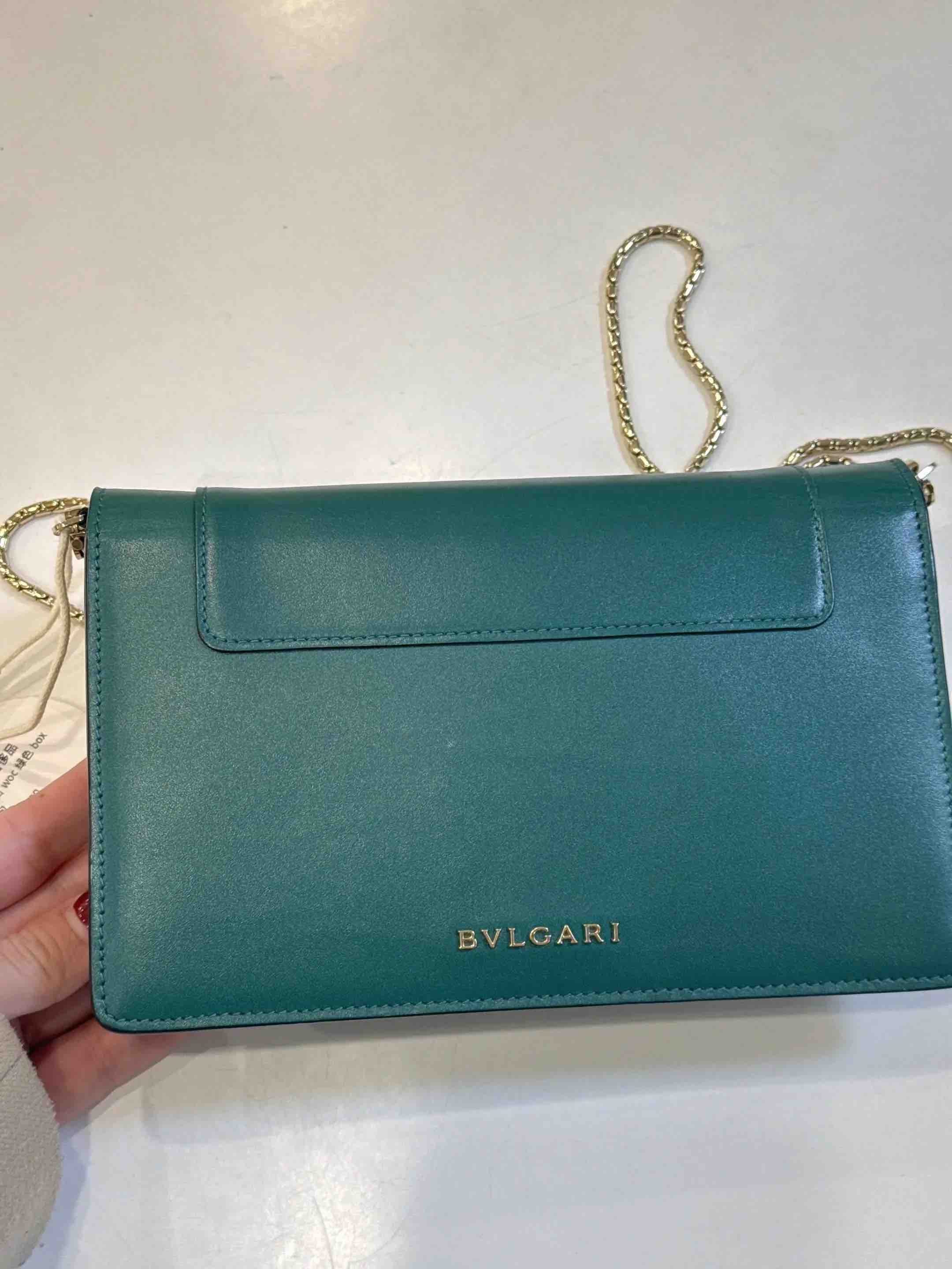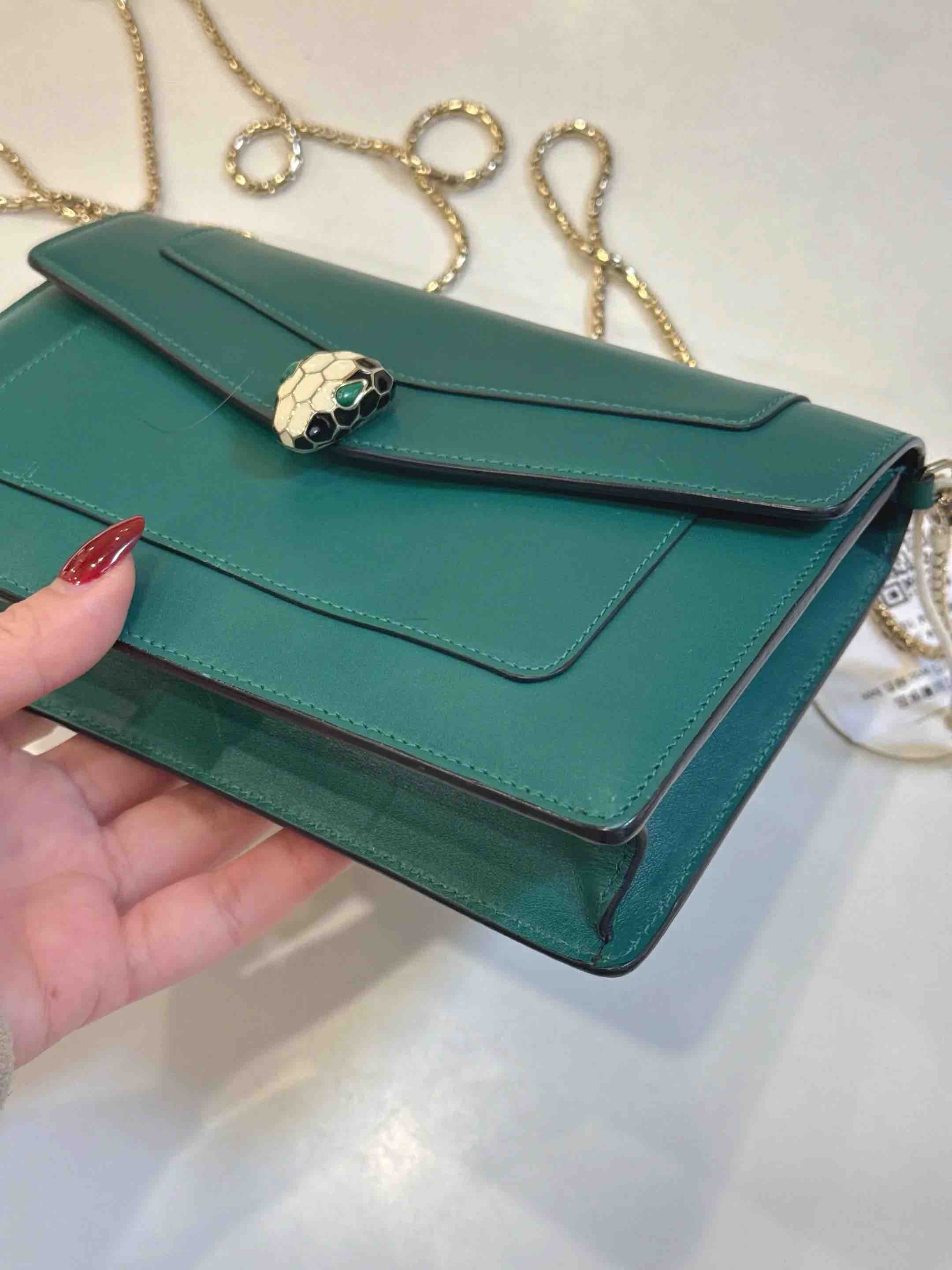 【商品详情】正品二手 宝格丽 墨绿色 Woc 牛皮 蛇头包🥰95新 19*13。清凉的感觉🌞