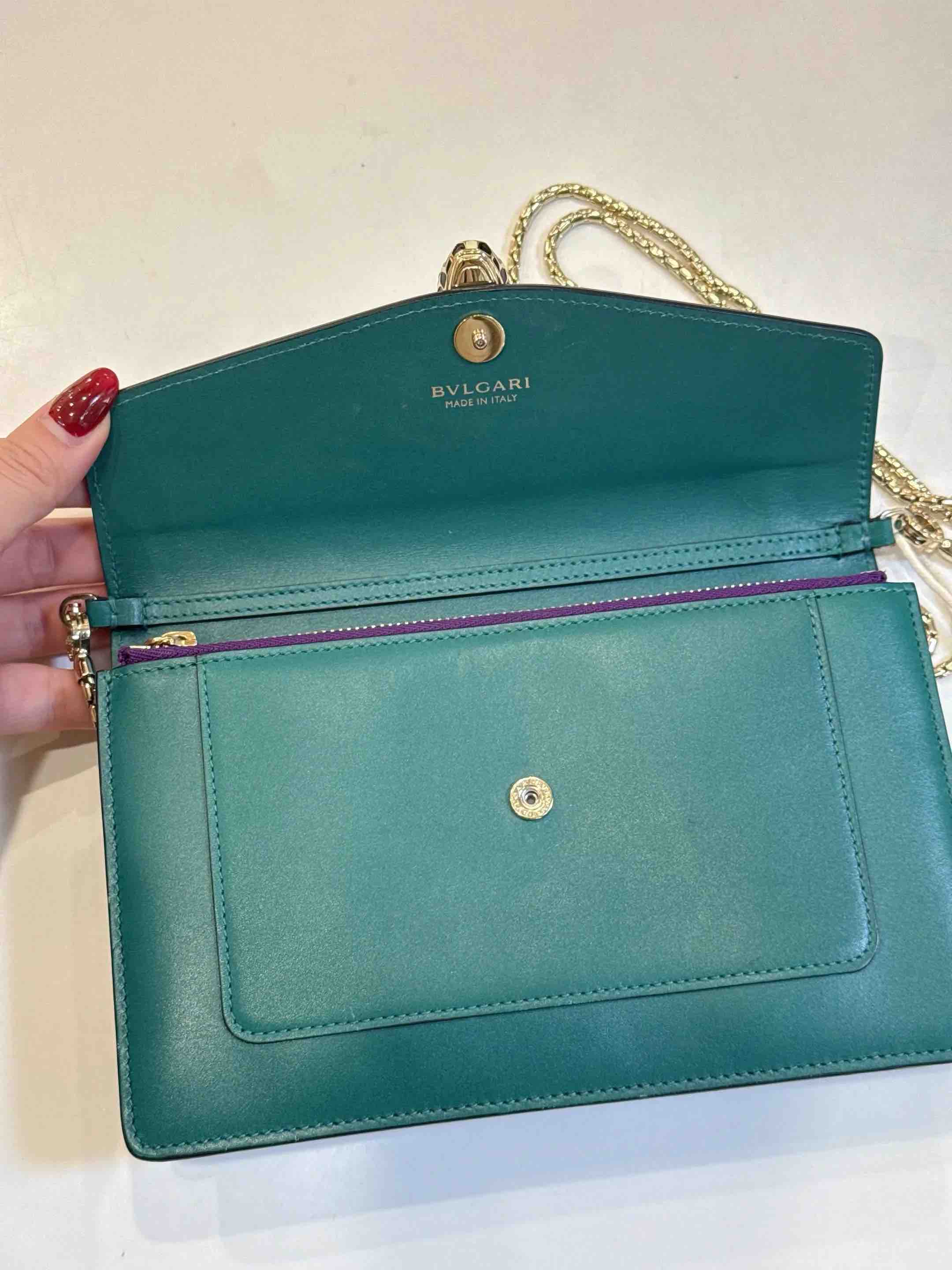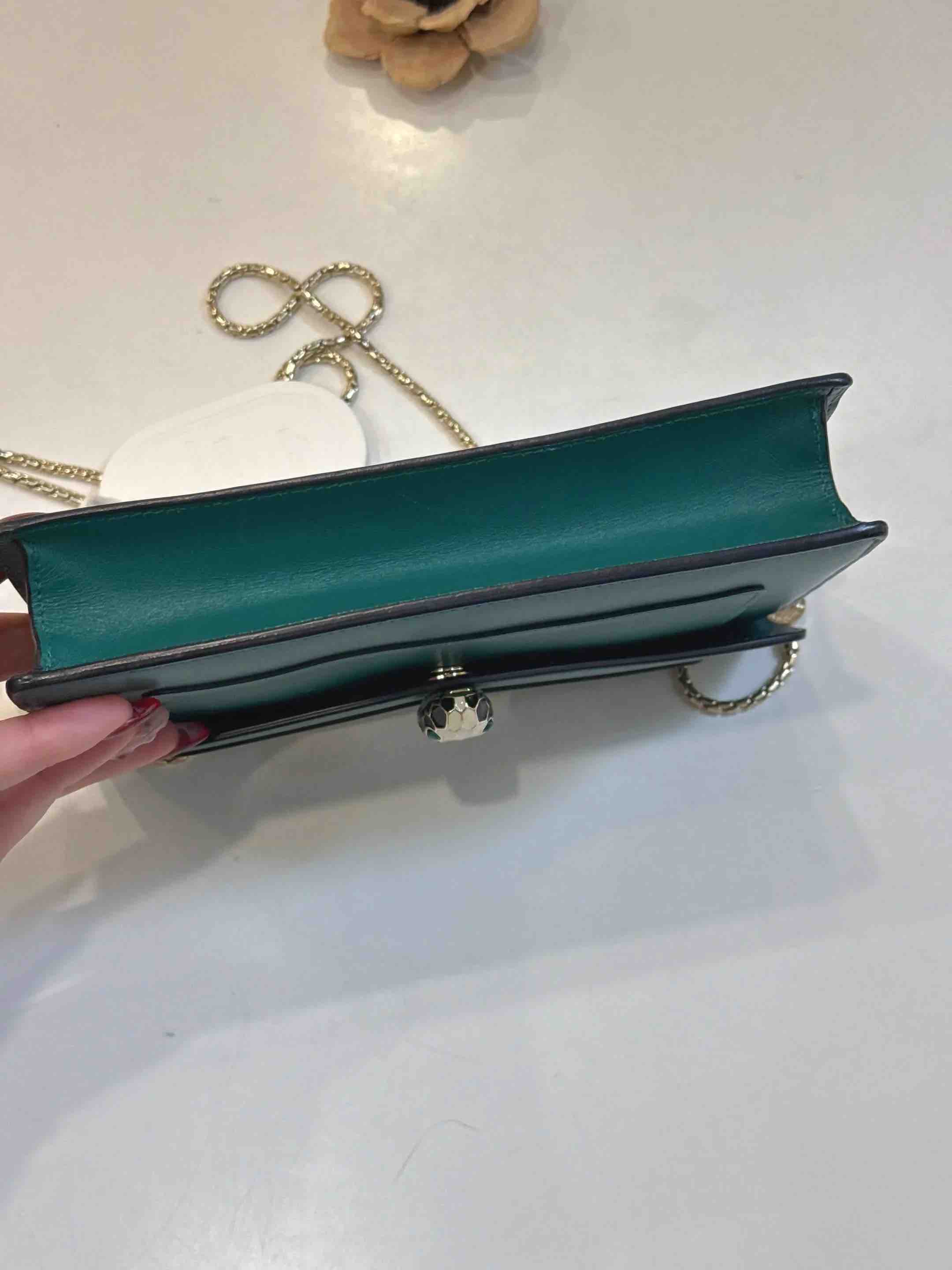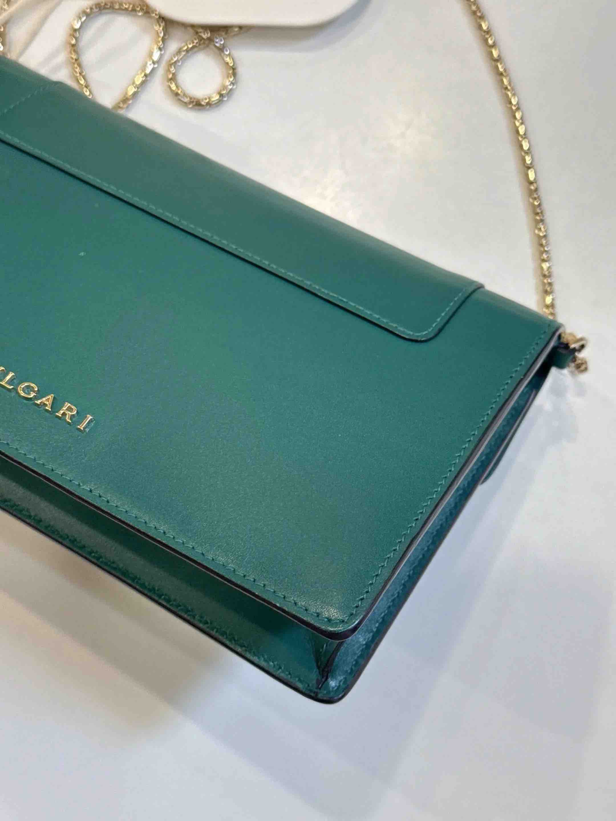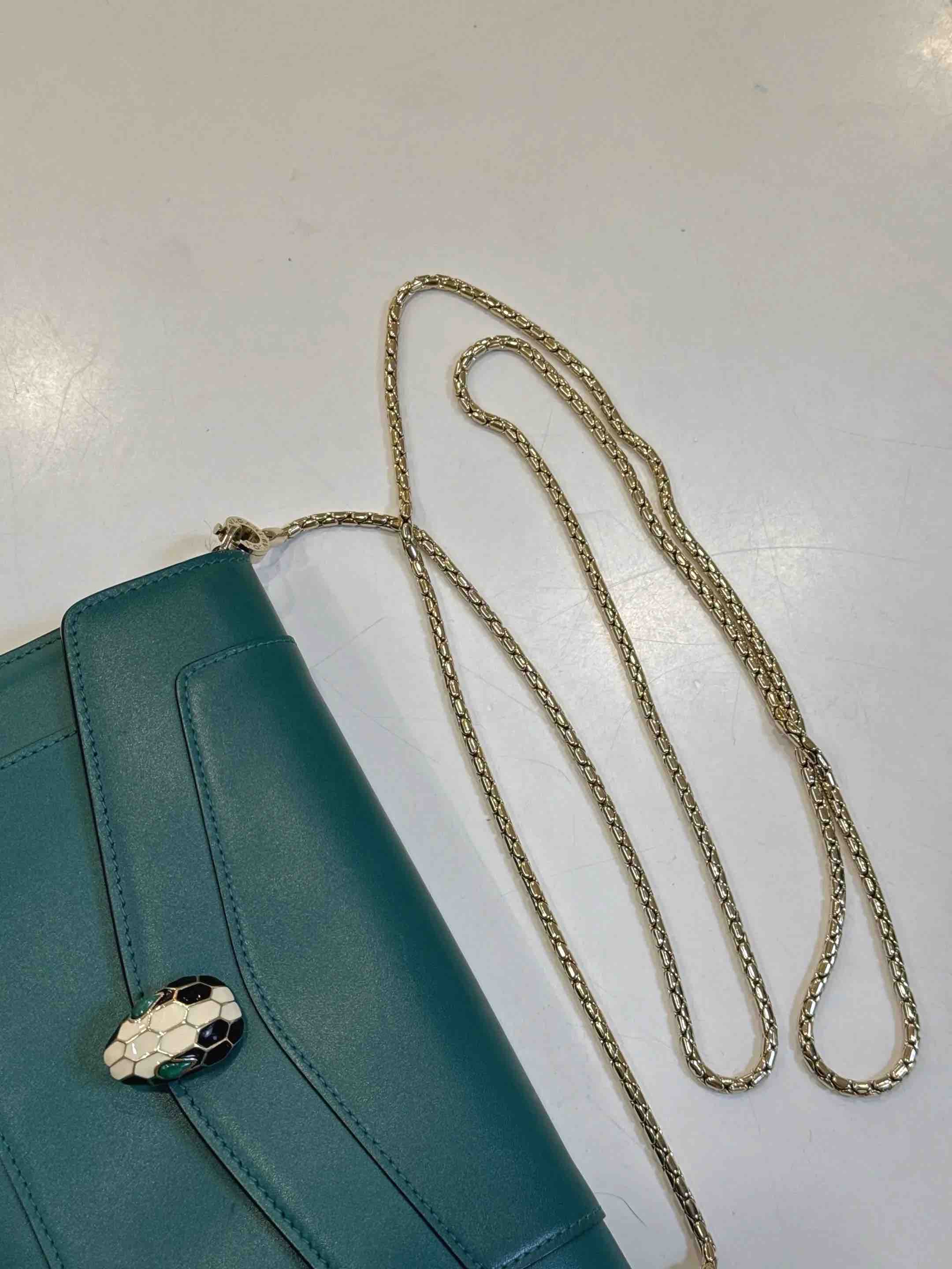 【商品详情】正品二手 宝格丽 墨绿色 Woc 牛皮 蛇头包🥰95新 19*13。清凉的感觉🌞