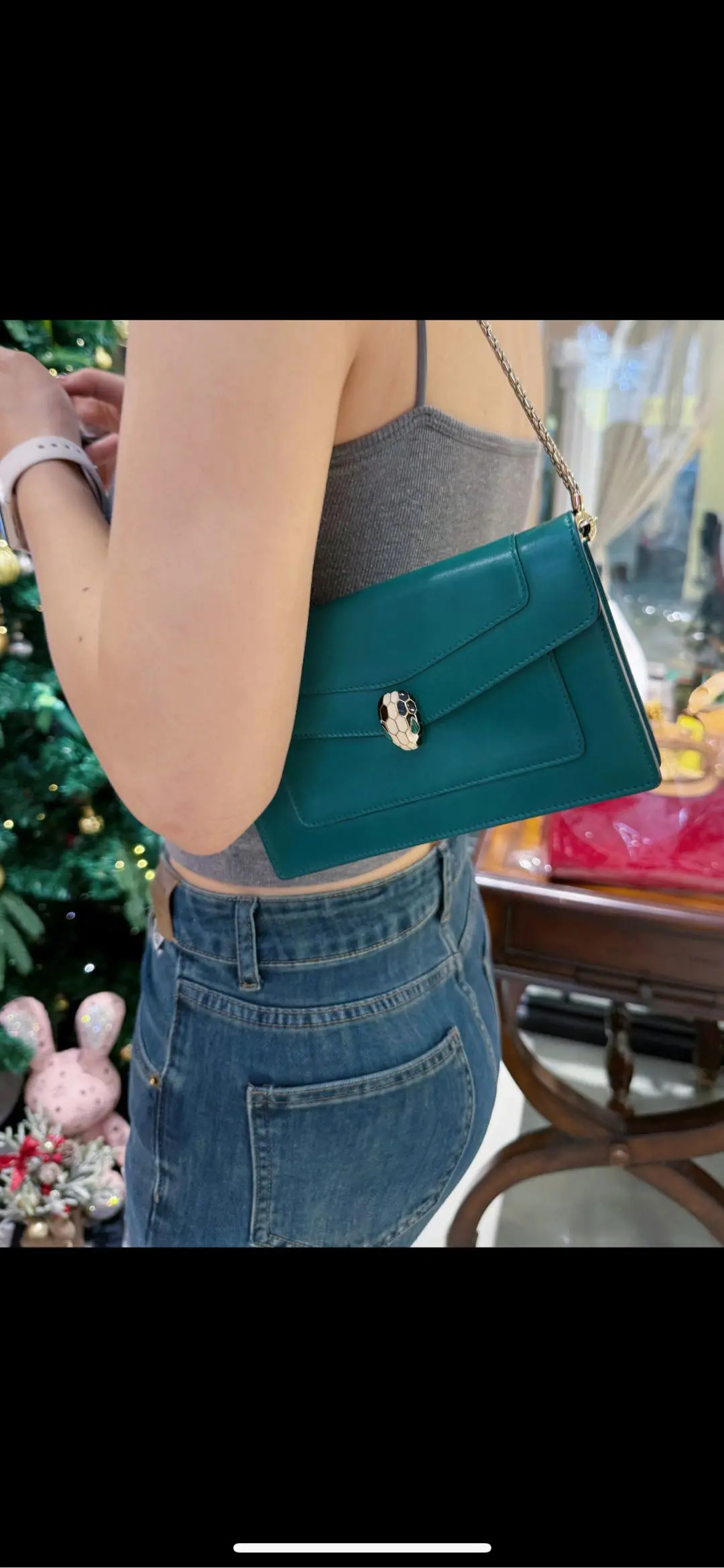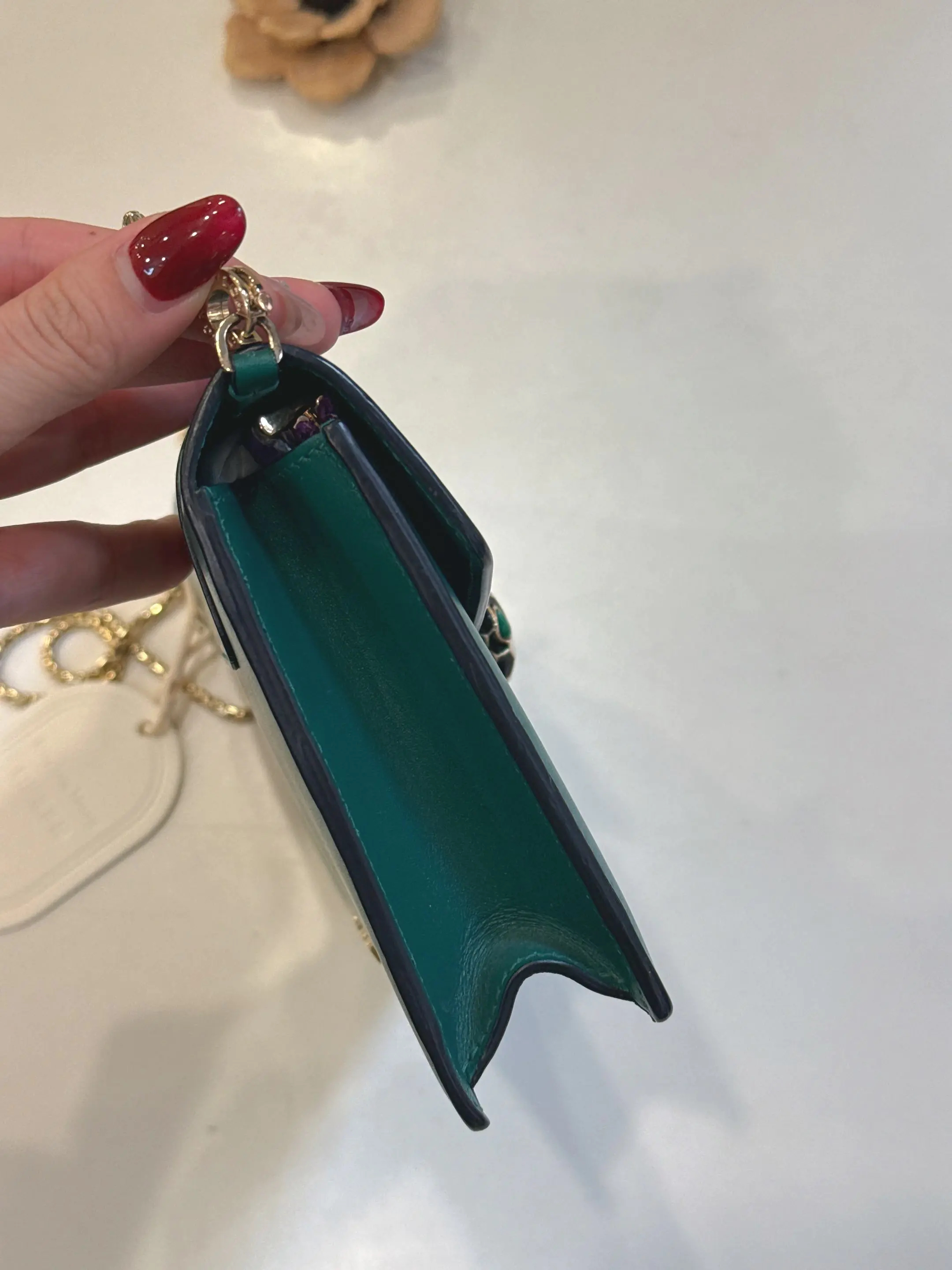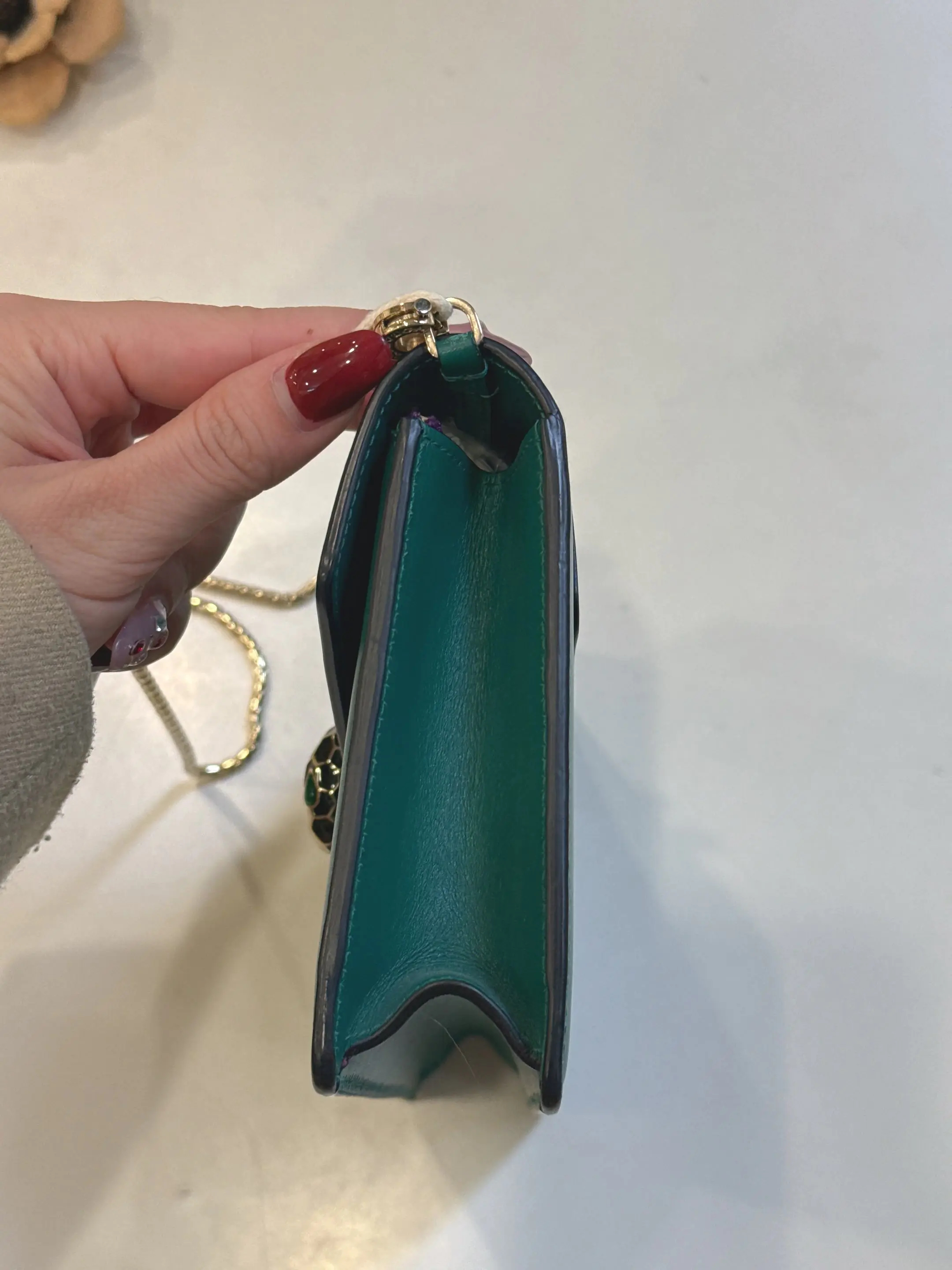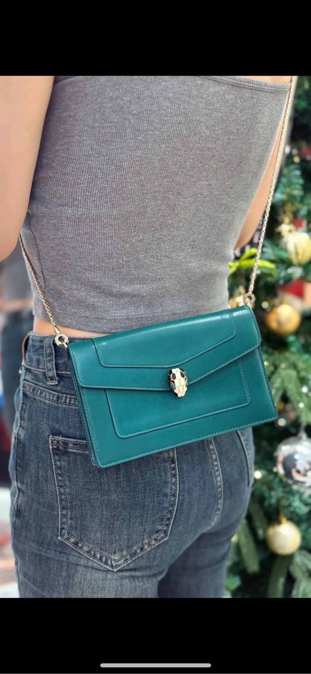 【商品详情】正品二手 宝格丽 墨绿色 Woc 牛皮 蛇头包🥰95新 19*13。清凉的感觉🌞