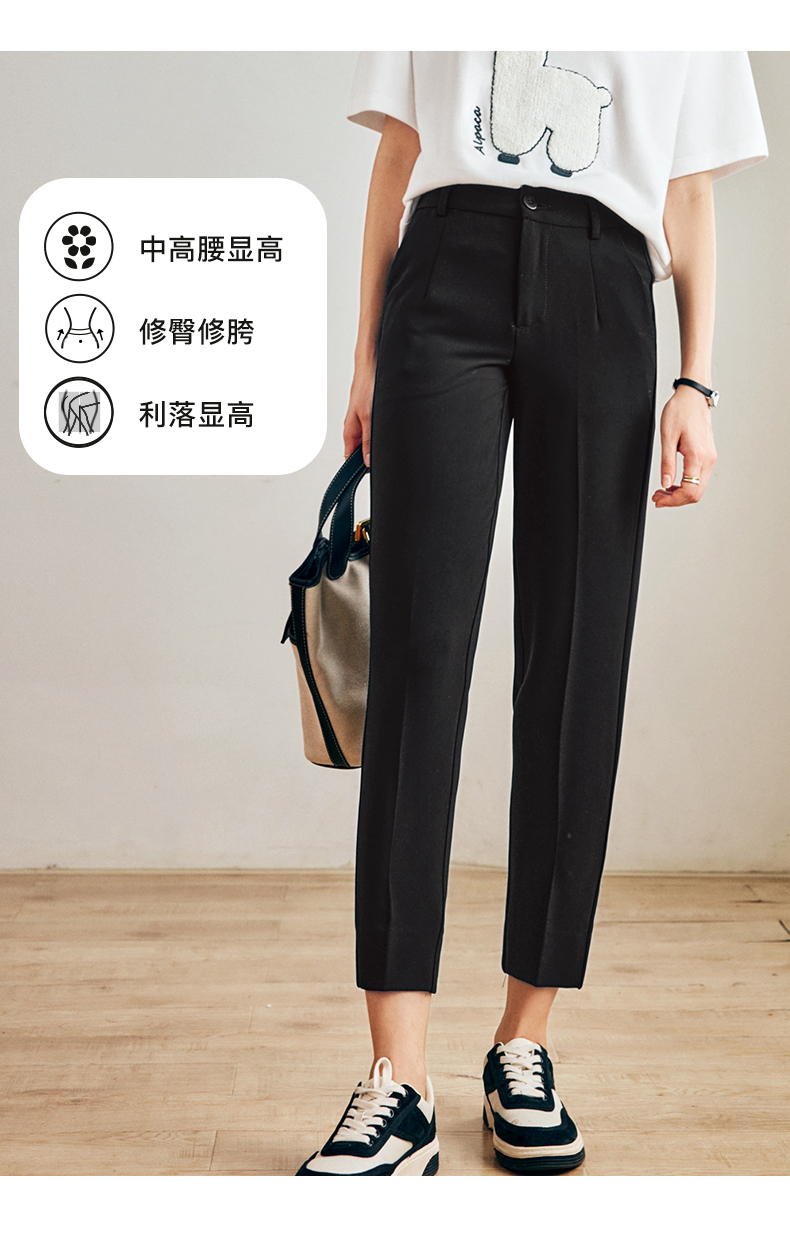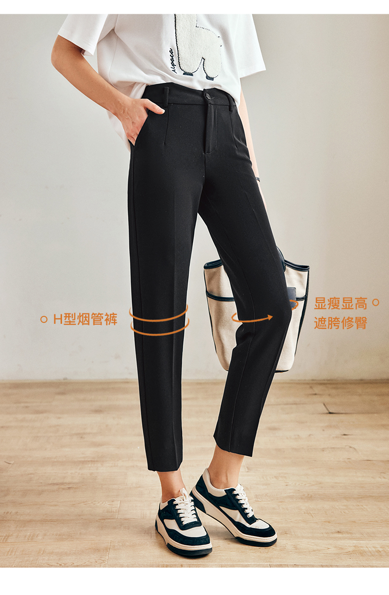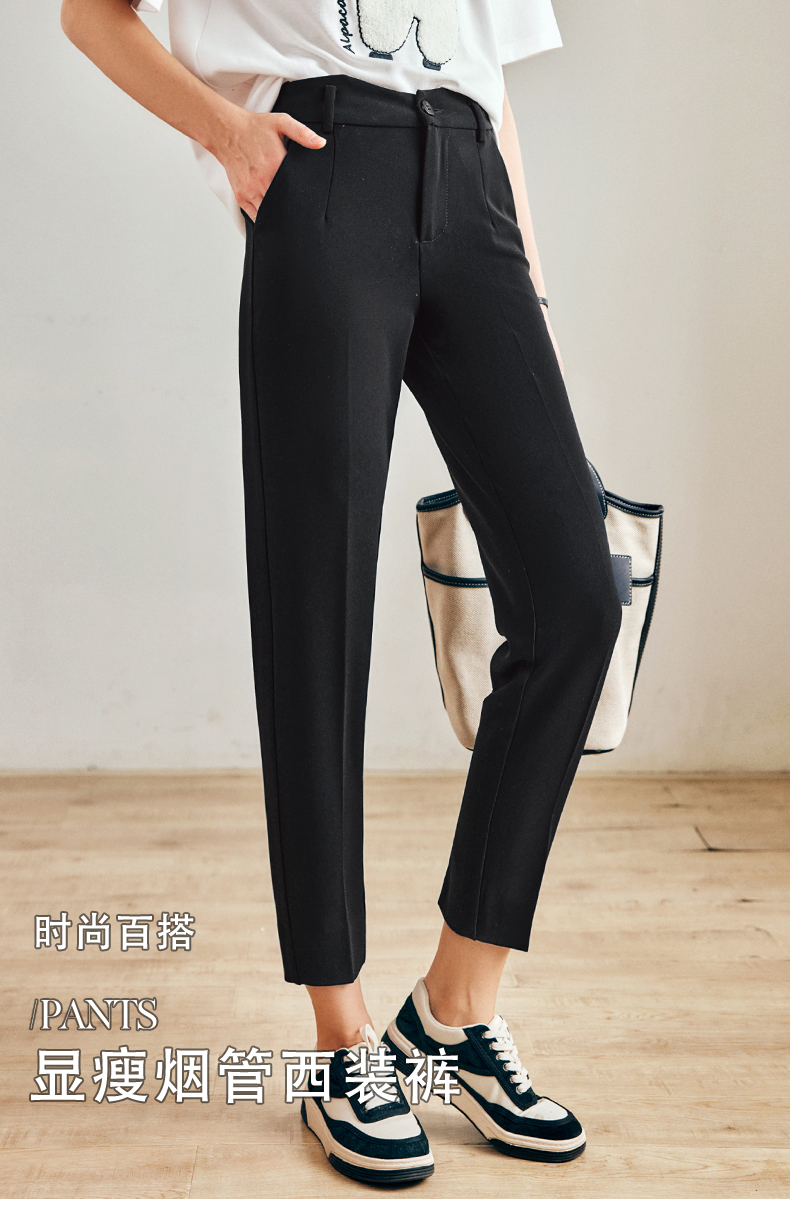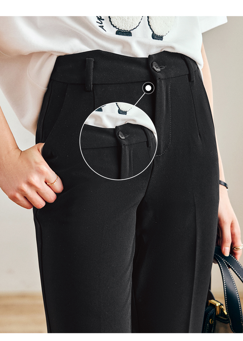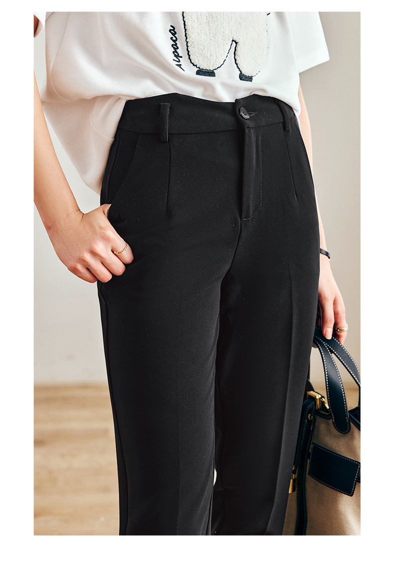 OLrain法式黑色休闲裤女早秋2022年新款通勤时尚高腰显瘦西装裤
