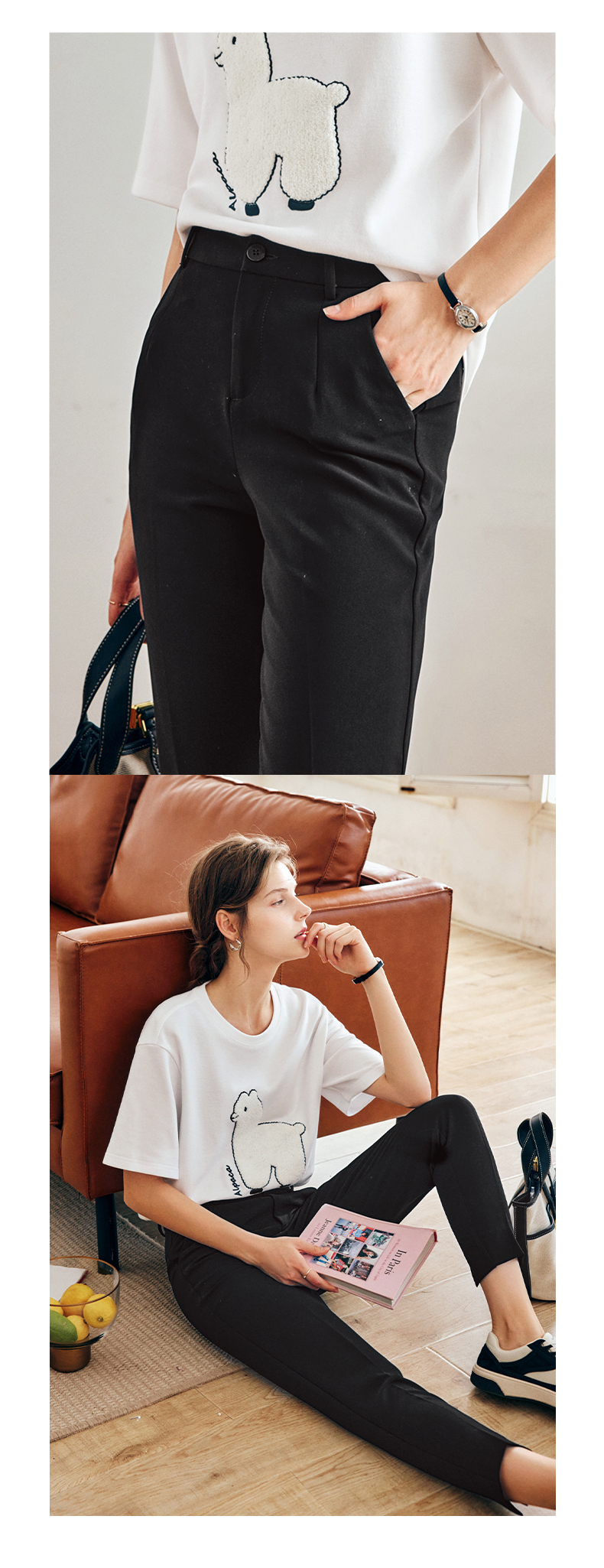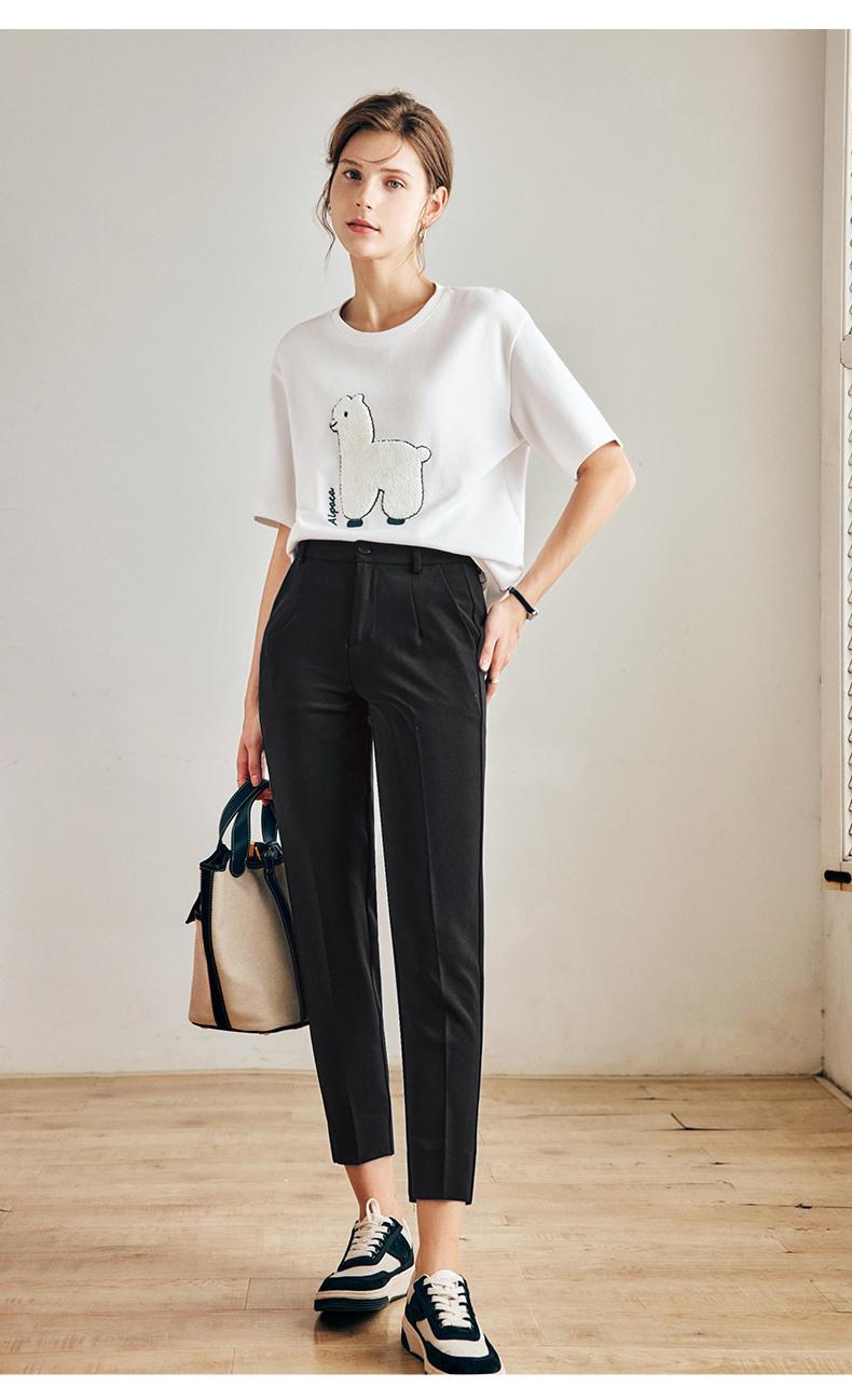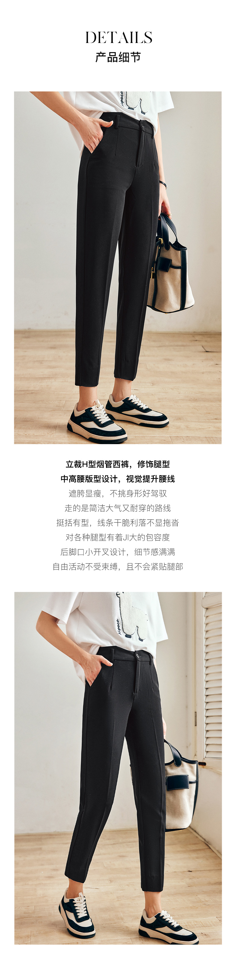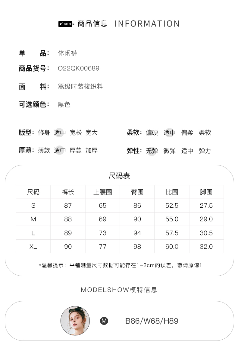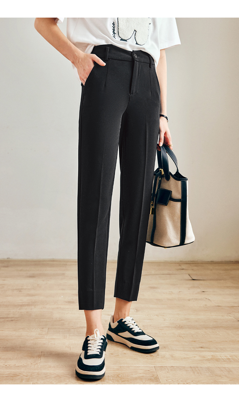 OLrain法式黑色休闲裤女早秋2022年新款通勤时尚高腰显瘦西装裤