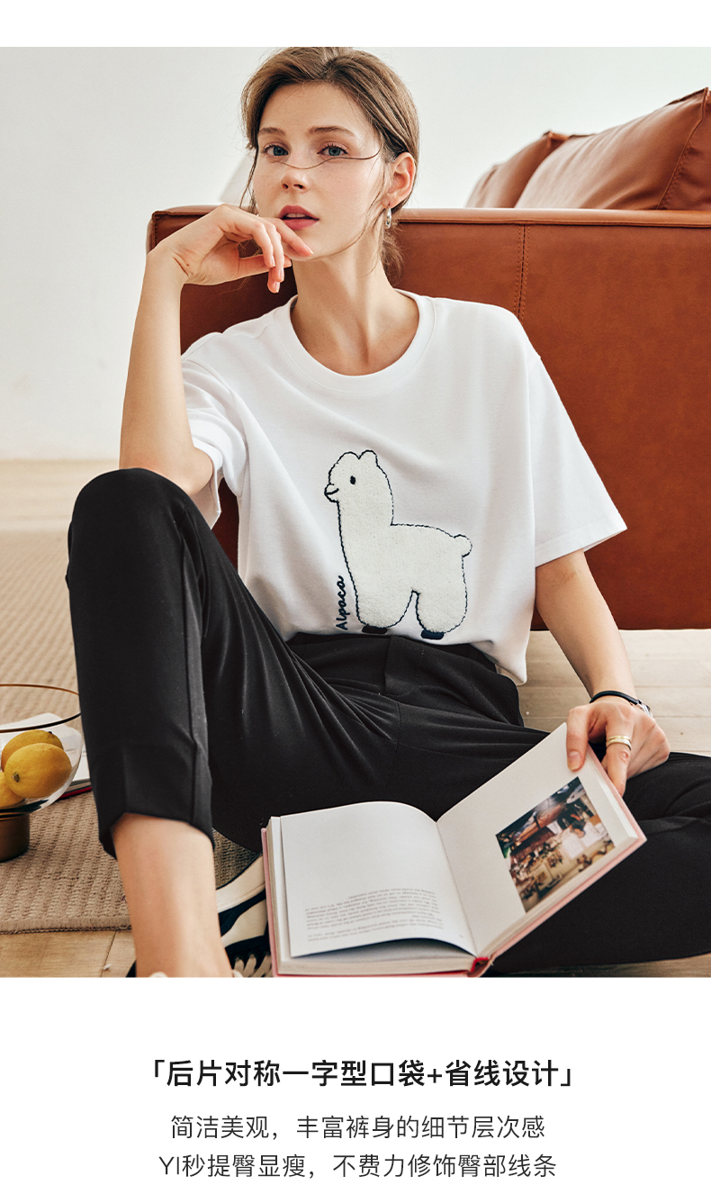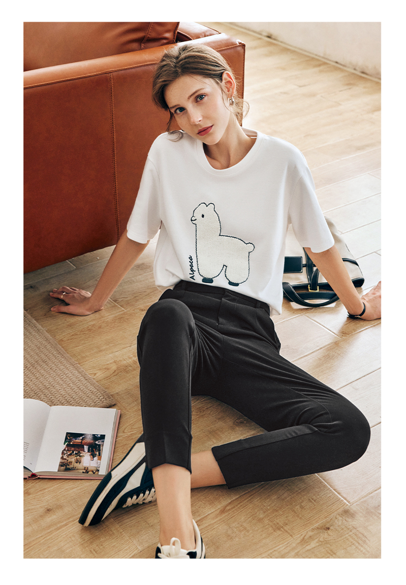 OLrain欧芮儿浅灰色针织衫女春夏2024年新款趣味熊猫短袖套头衫