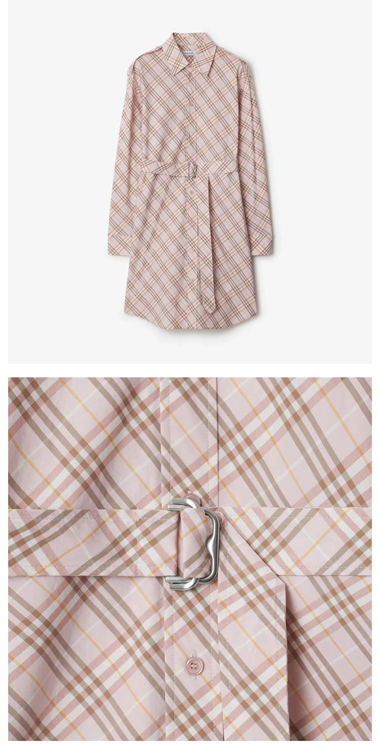 BURBERRY 巴宝莉 女士束腰格纹长袖衬衫裙 格子 8104976 C2143