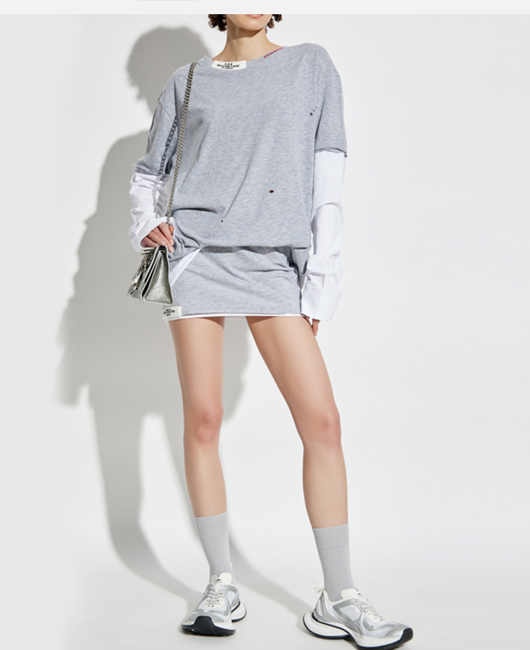 DSQUARED2 女士徽标贴片棉质短裙 灰色 S72MA1005 DTJ005 962